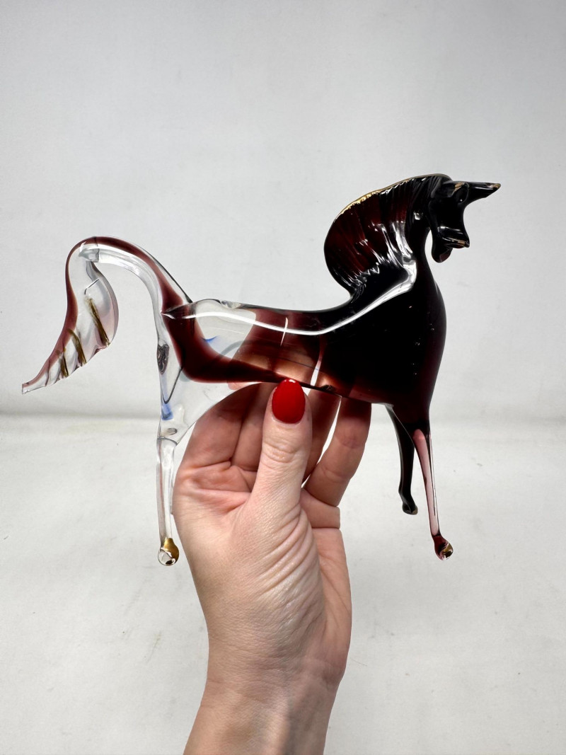 Italian Murano Style Hand-Blown Glass Horse Figurine.