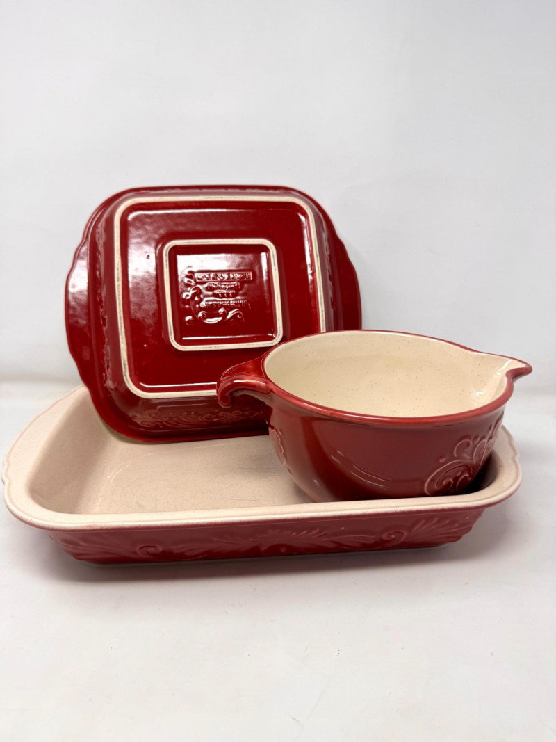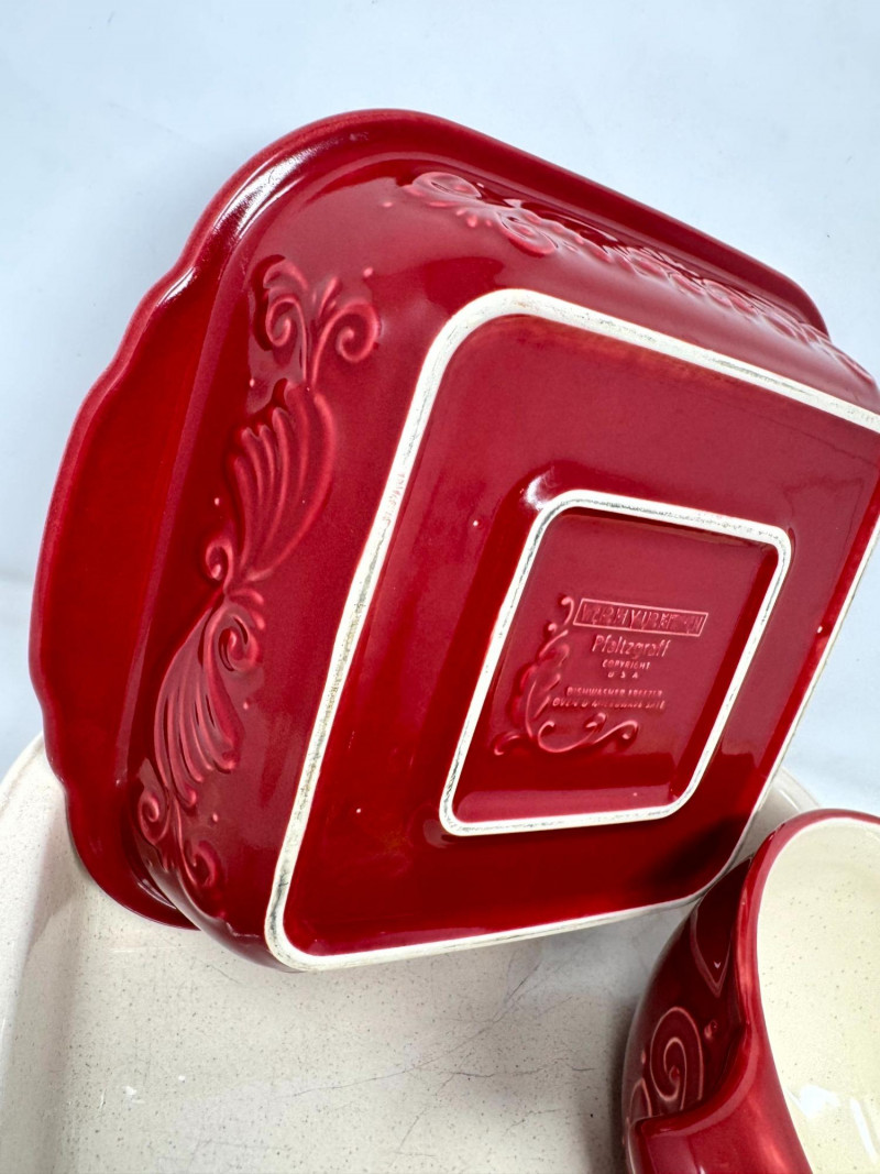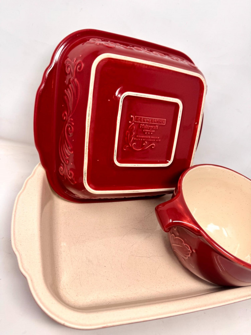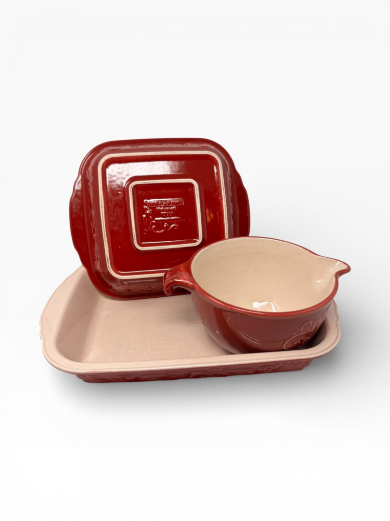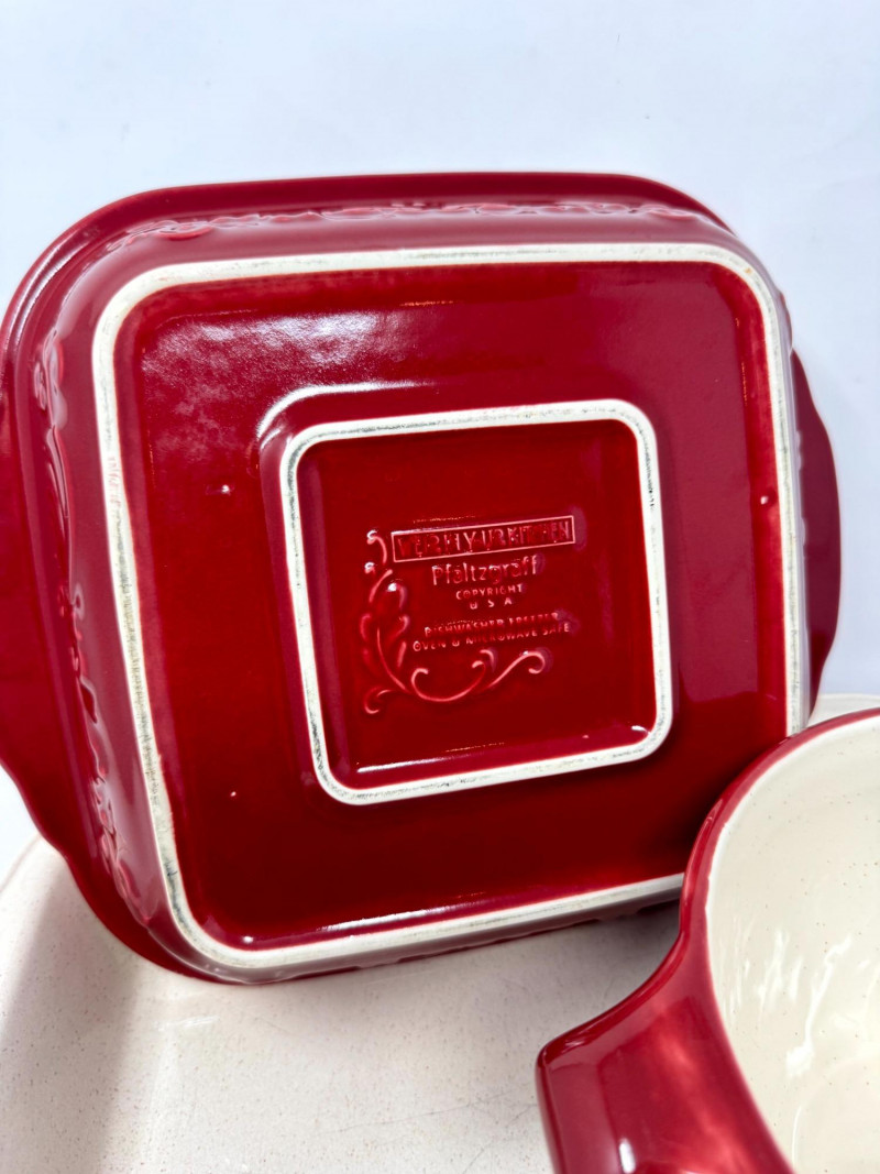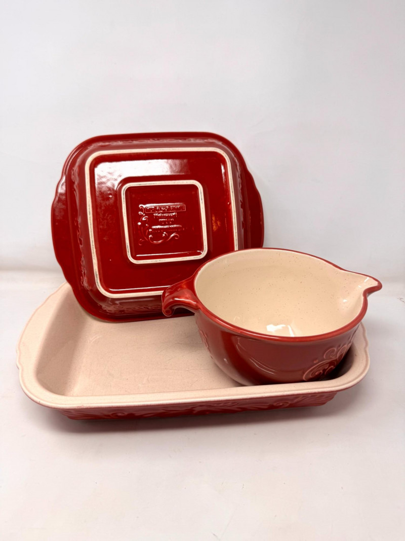 Pfaltzgraff Red 3 Pc Bakeware Set Dish, Tray, & Bowl.