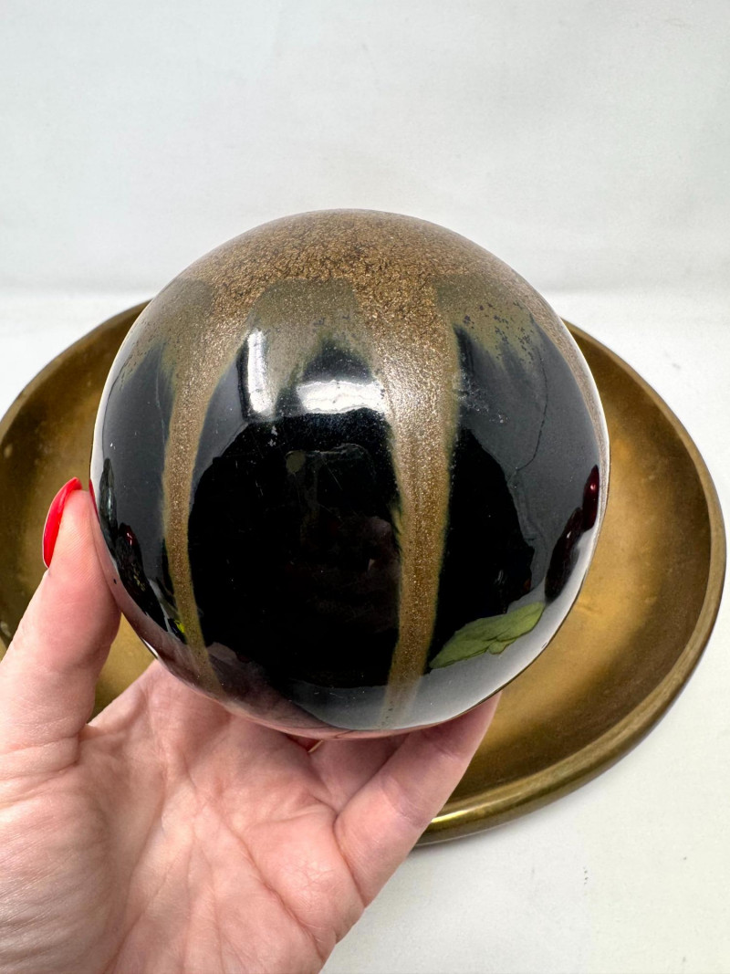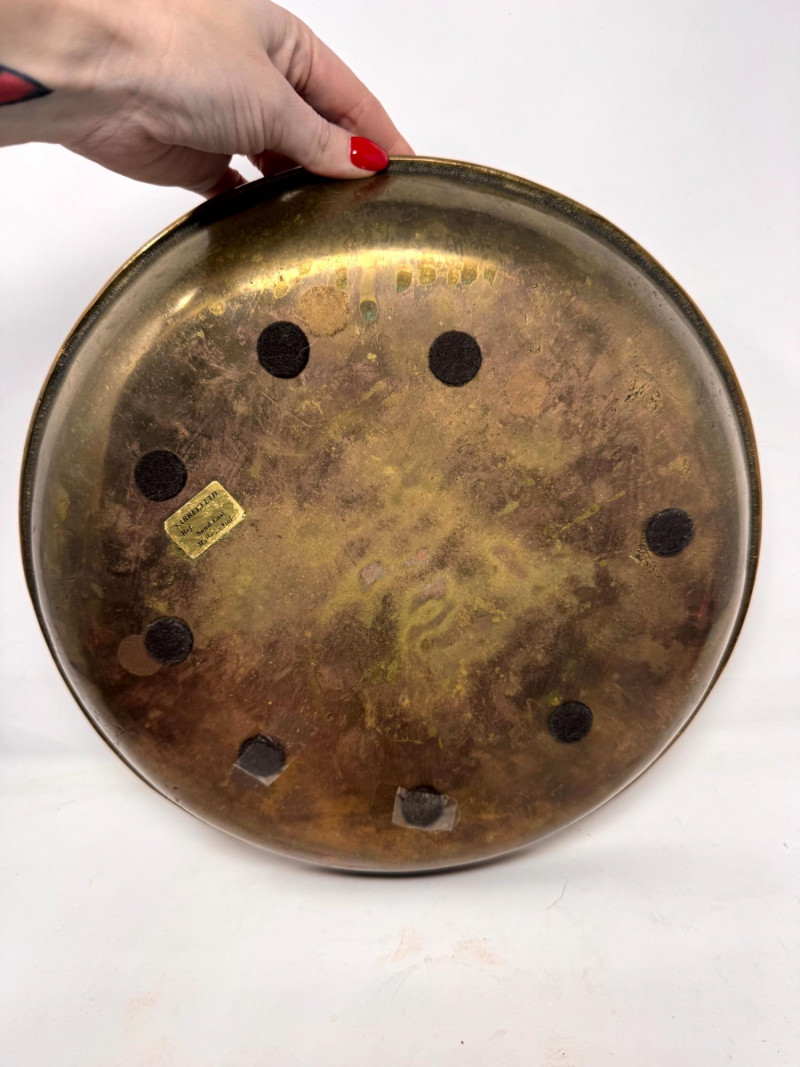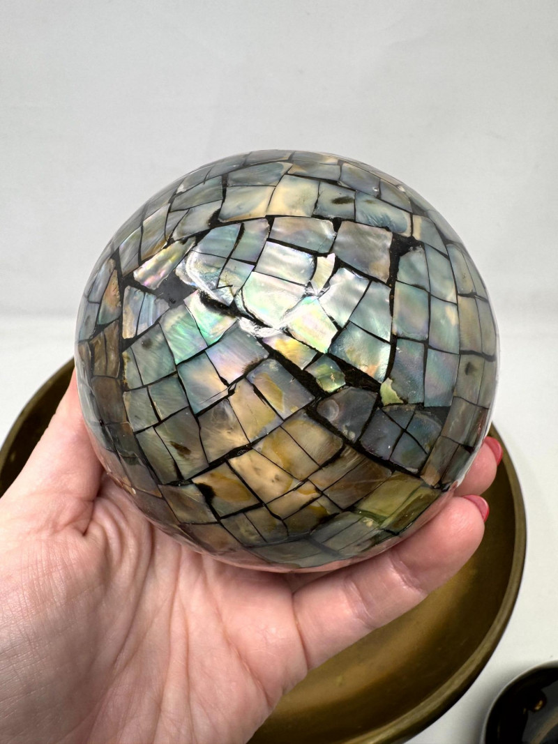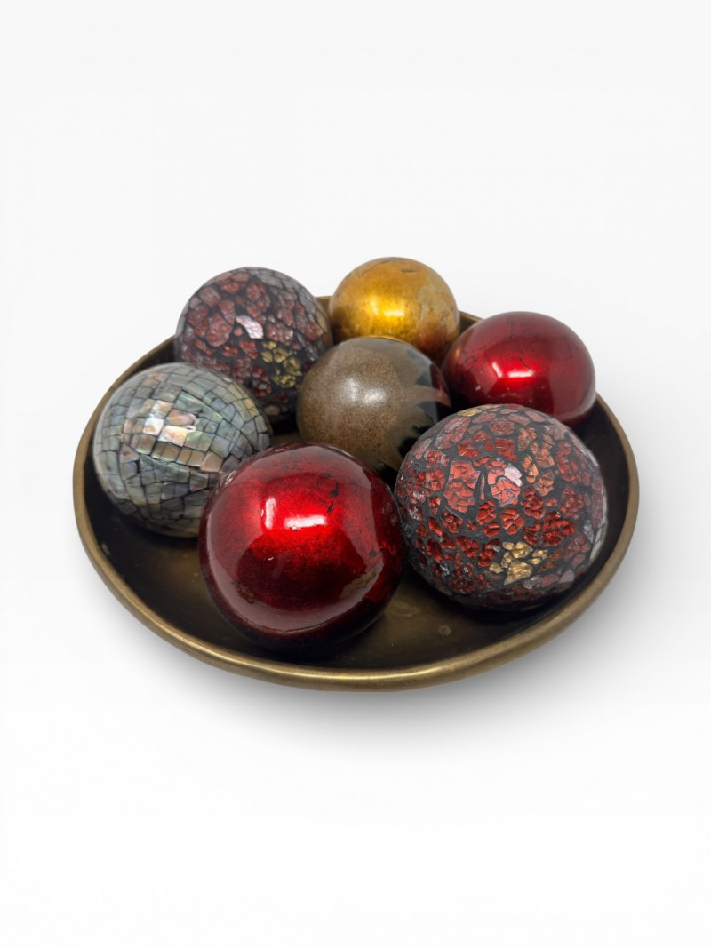 Made In Italy Heavy Brass Bowl w/ Glass, Pottery & Abalone Balls +