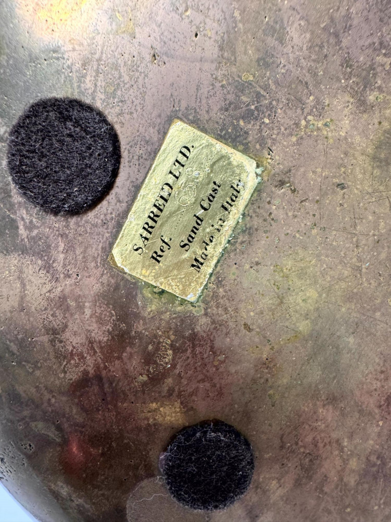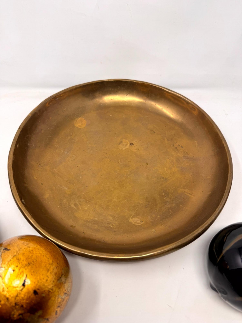 Lot # 88 - Made In Italy Heavy Brass Bowl w/ Glass, Pottery & Abalone Balls +