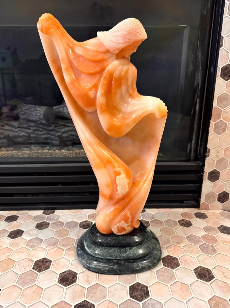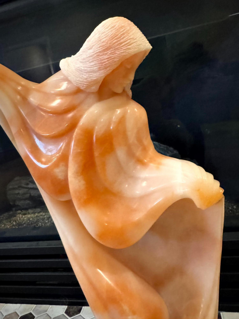 • Material: Carved stone (appears to be onyx marble / jade-like stone)