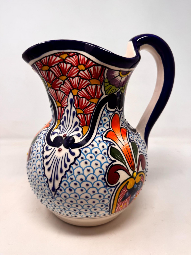 Large Hand Painted AIBA Mexico Talavera Style Pitcher.