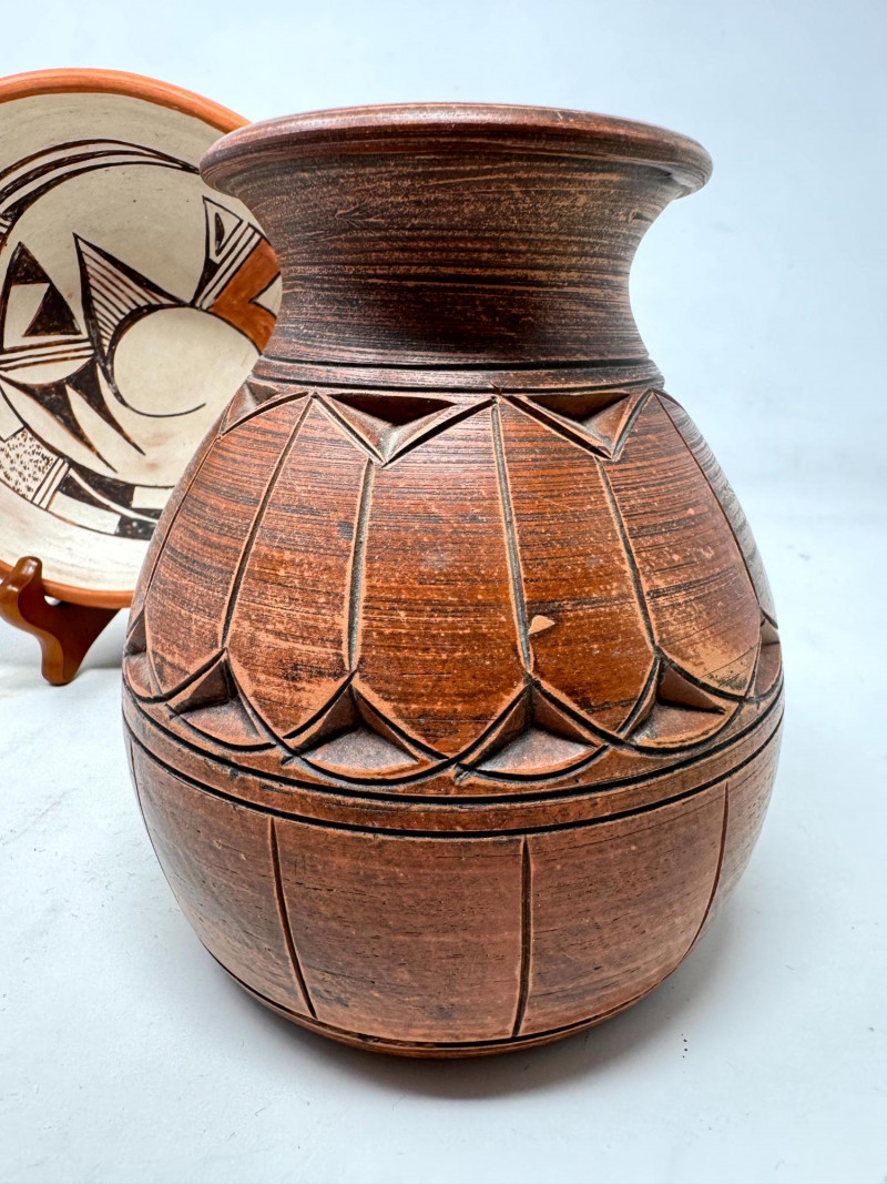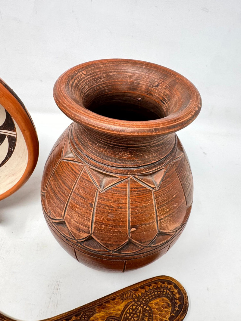 Lot # 96 - Hopi Polychrome Signed Bowl, F. Rentz Boomerang & Carved Pottery Vase