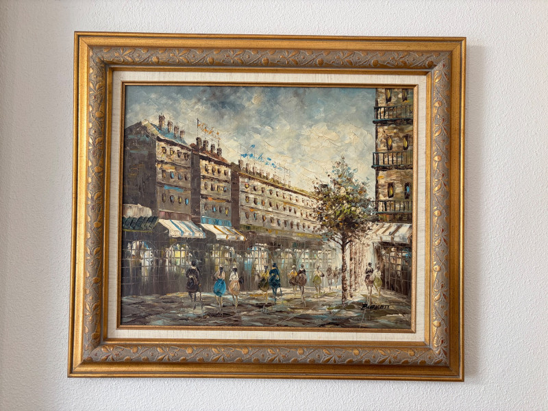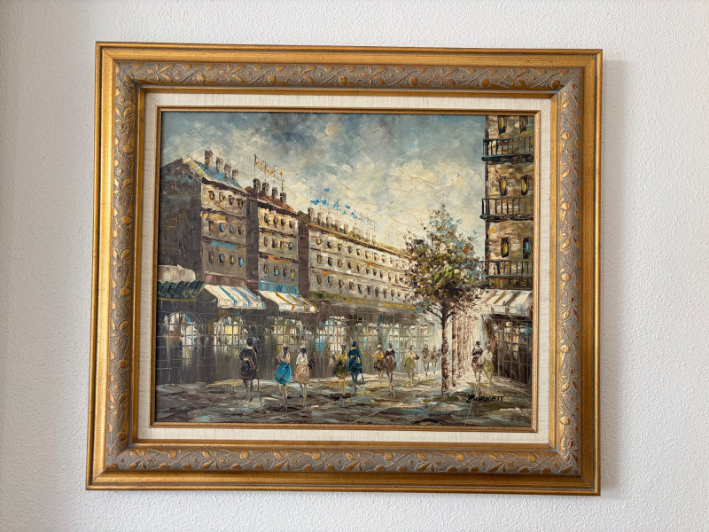 Bennett Original Oil Painting Paris Street, Signed.