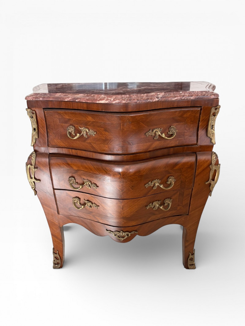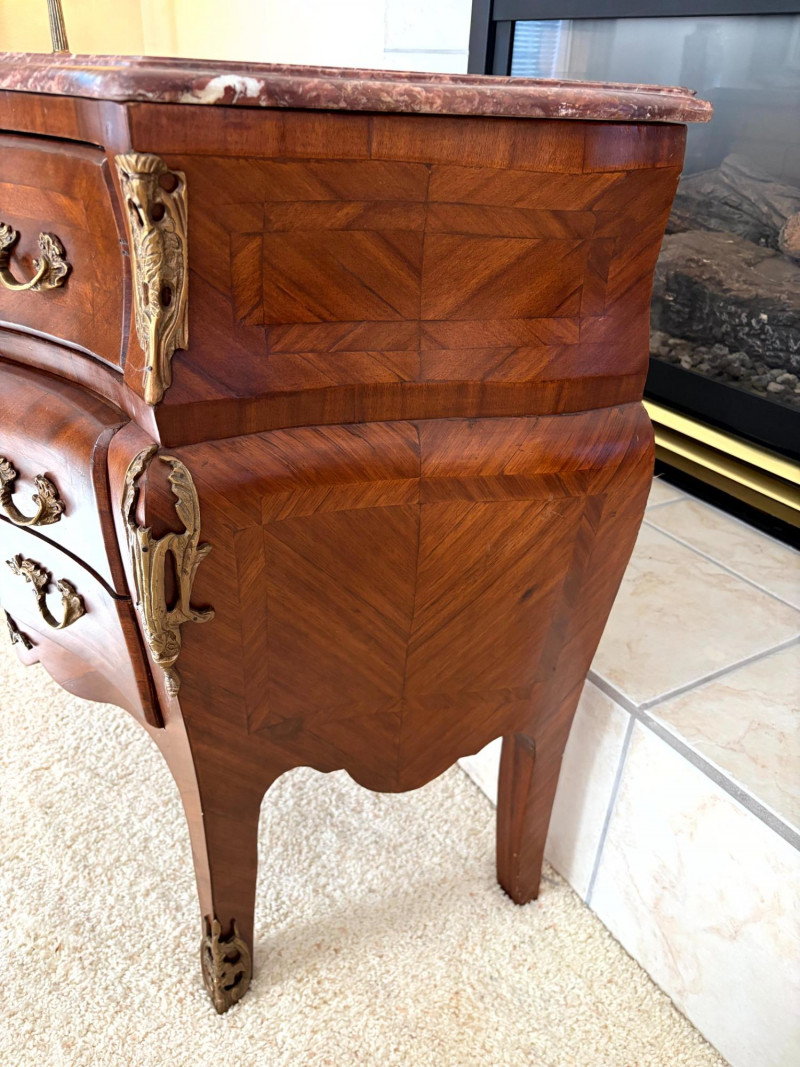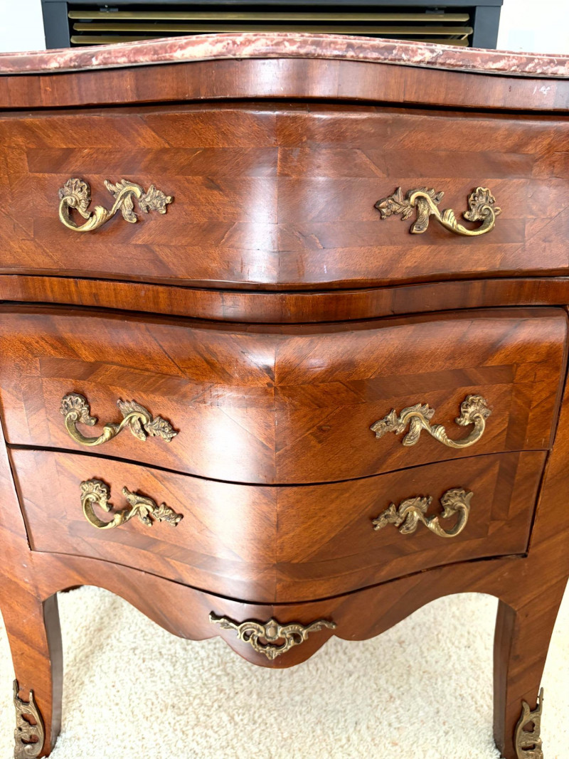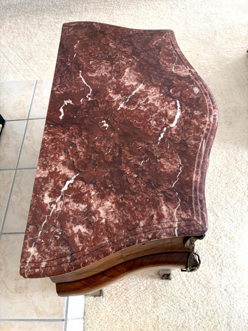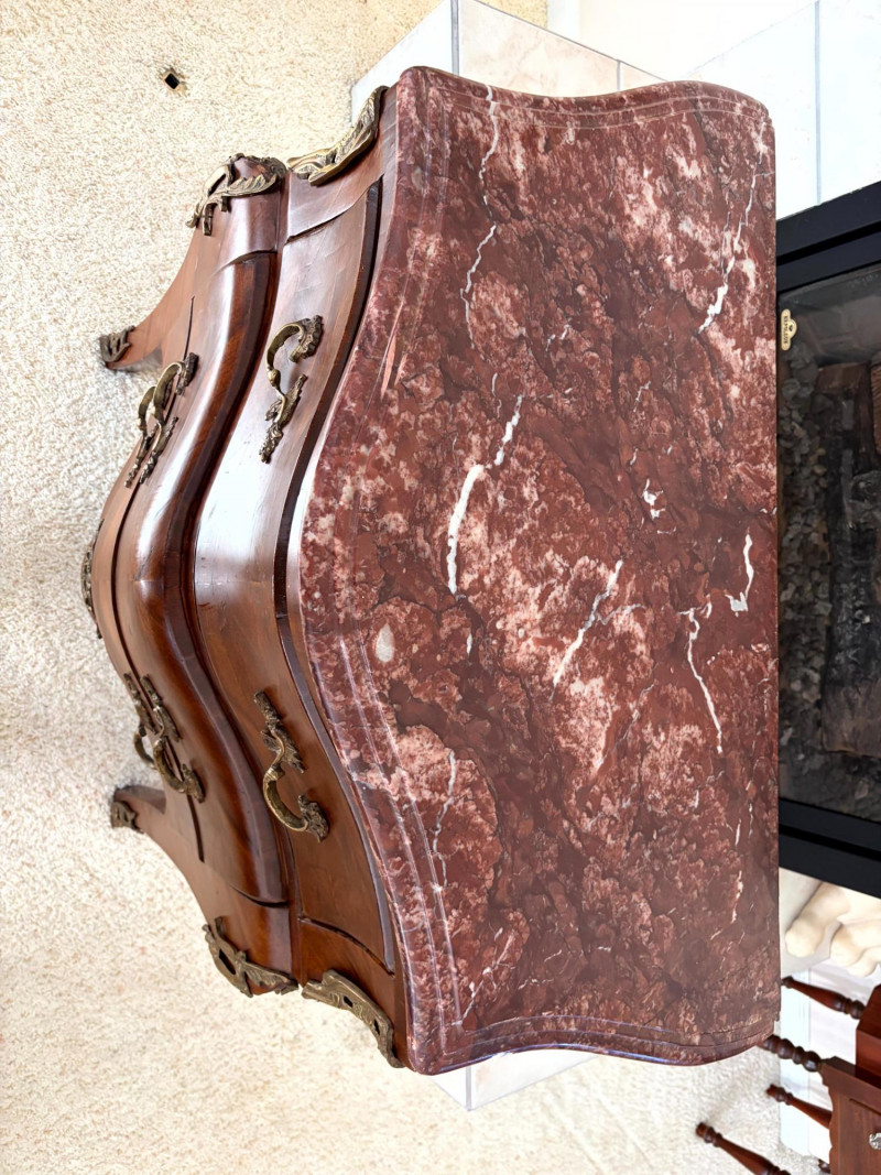 Louis XV Style Mounted Marble Top Bow Front Commode.