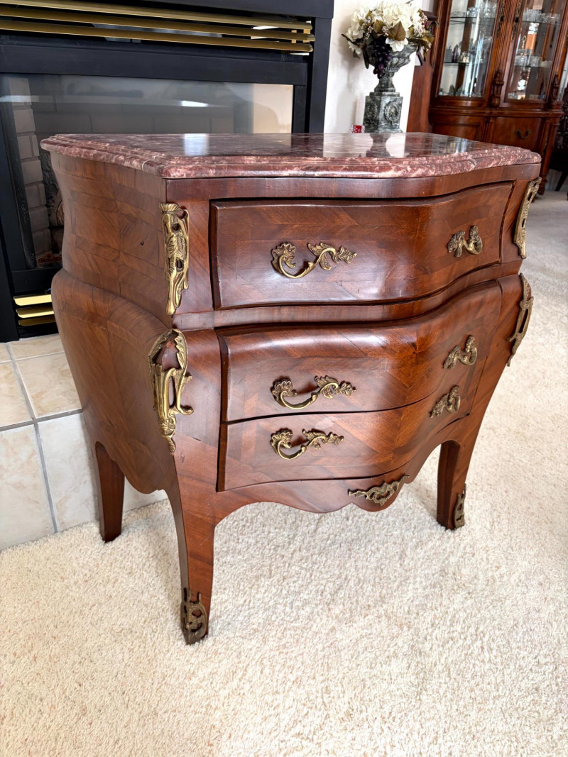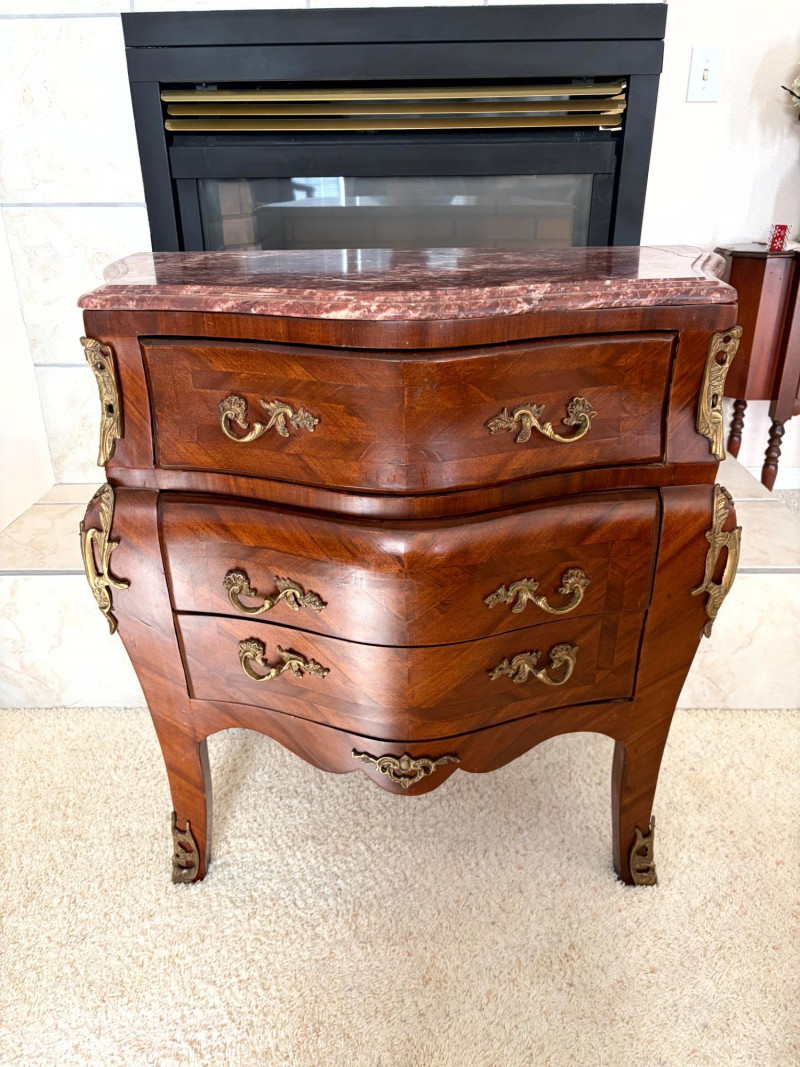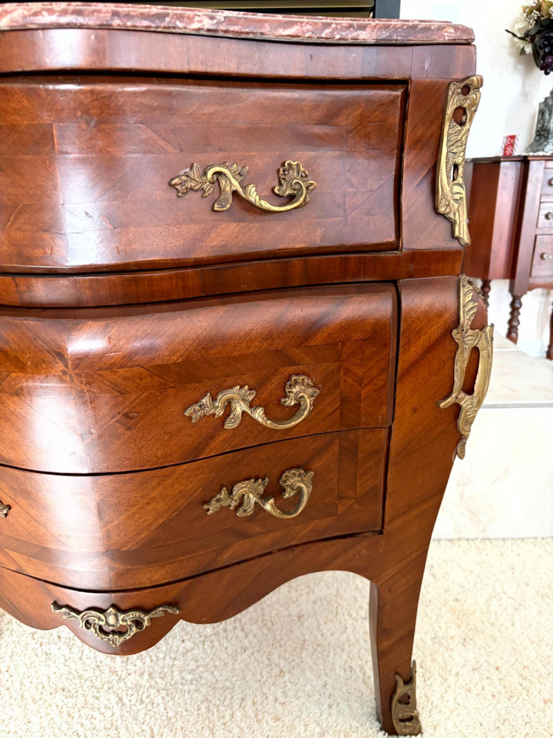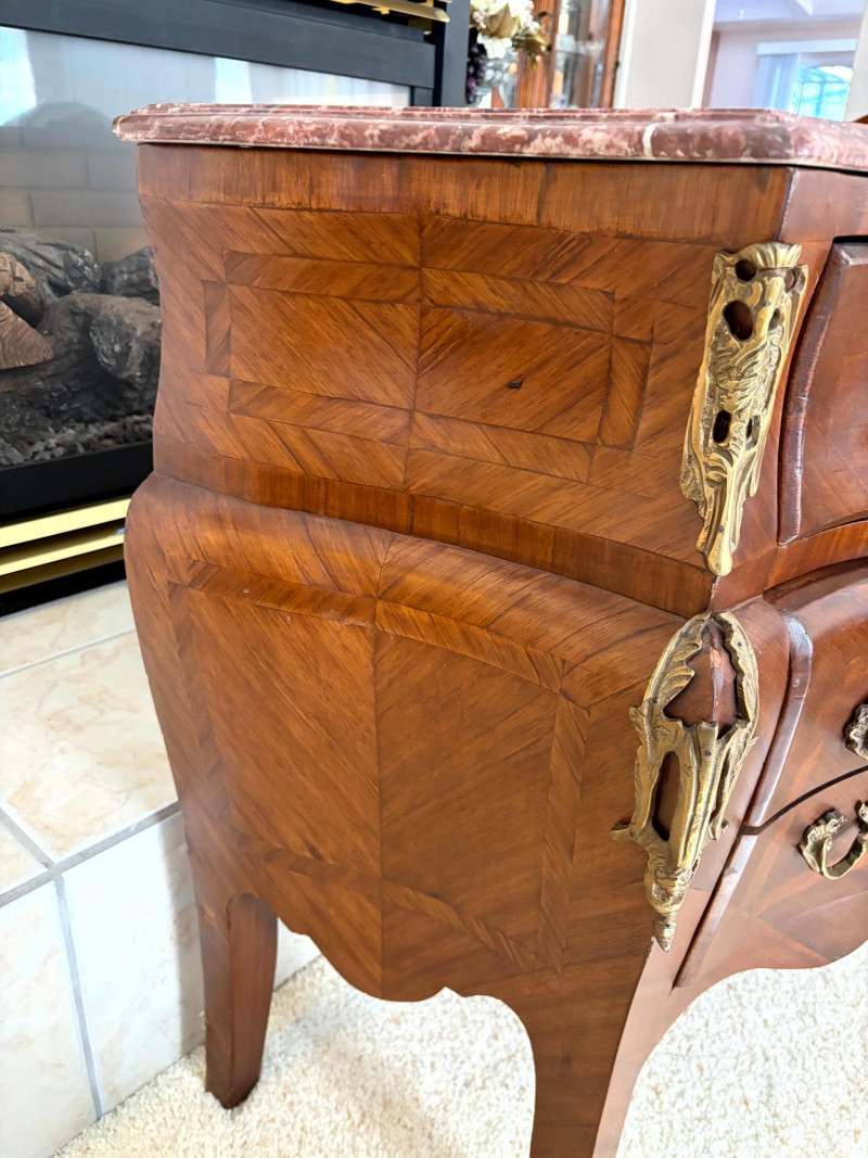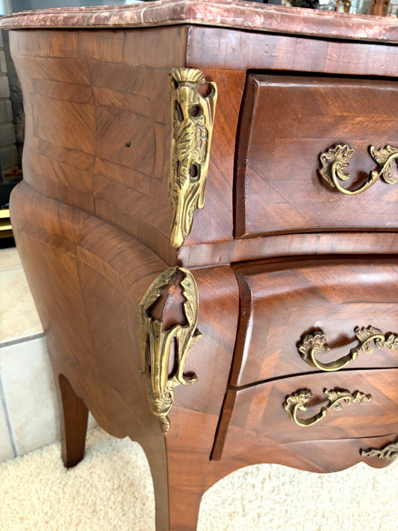 Louis XV Style Mounted Marble Top Bow Front Commode.