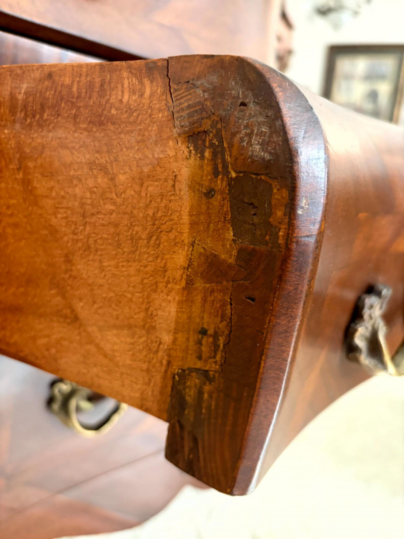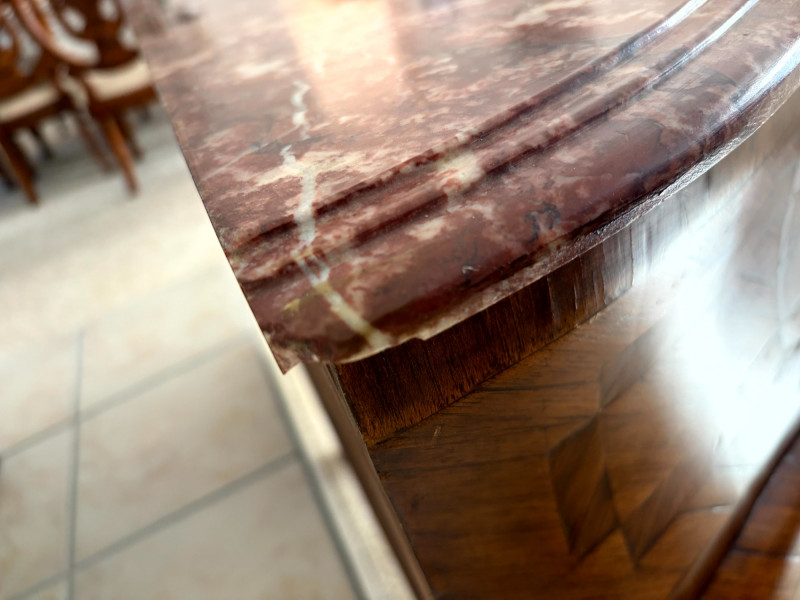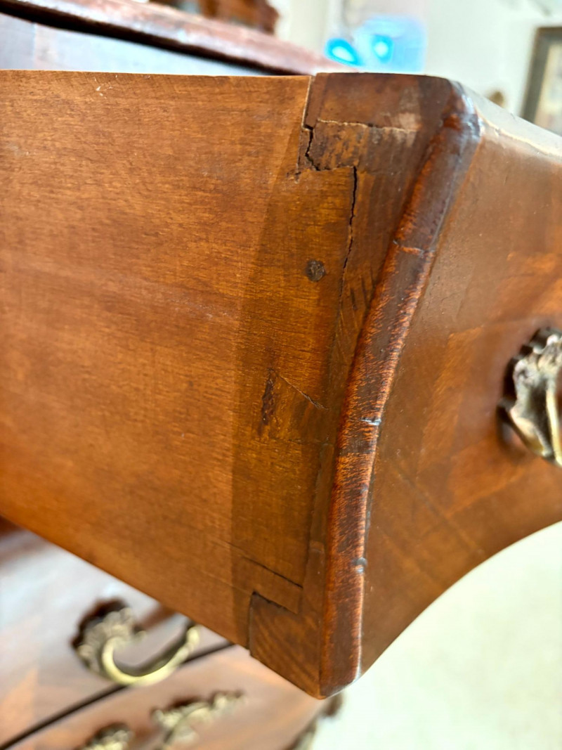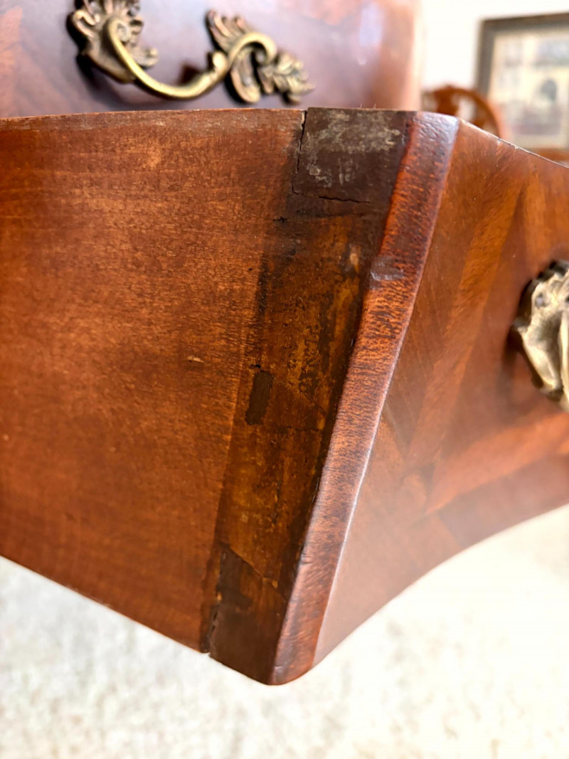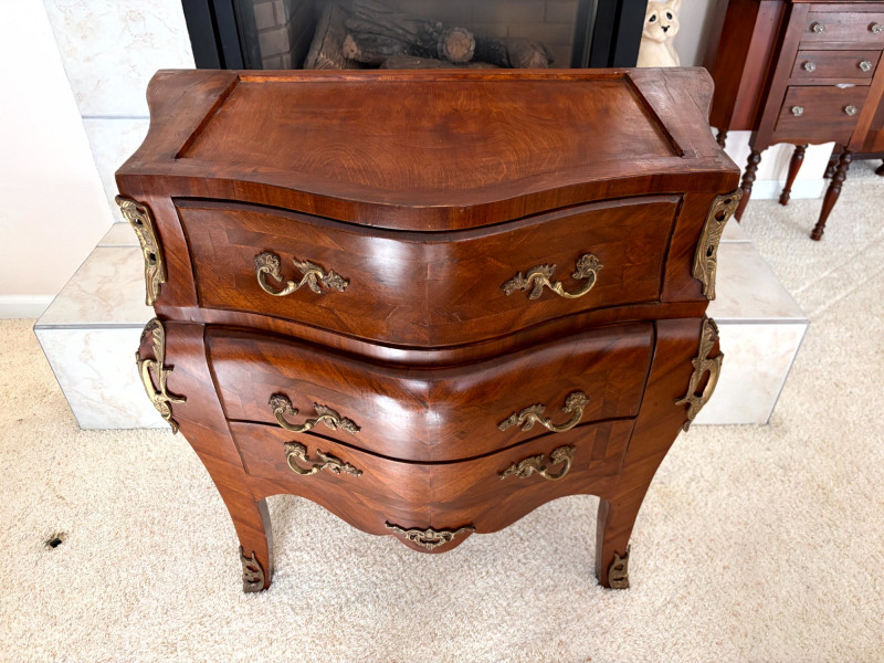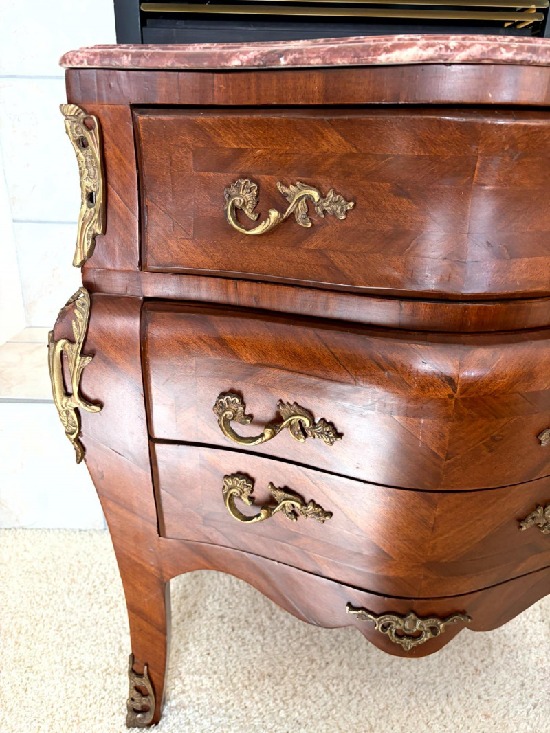 Louis XV Style Mounted Marble Top Bow Front Commode.