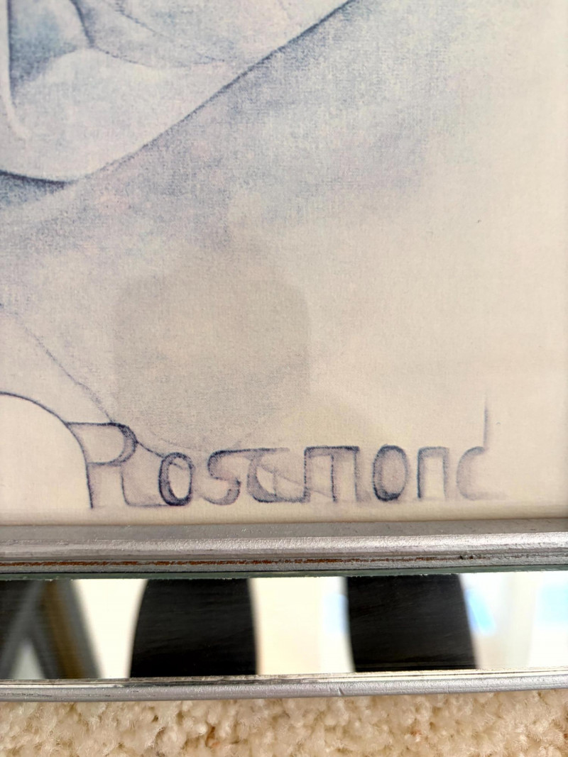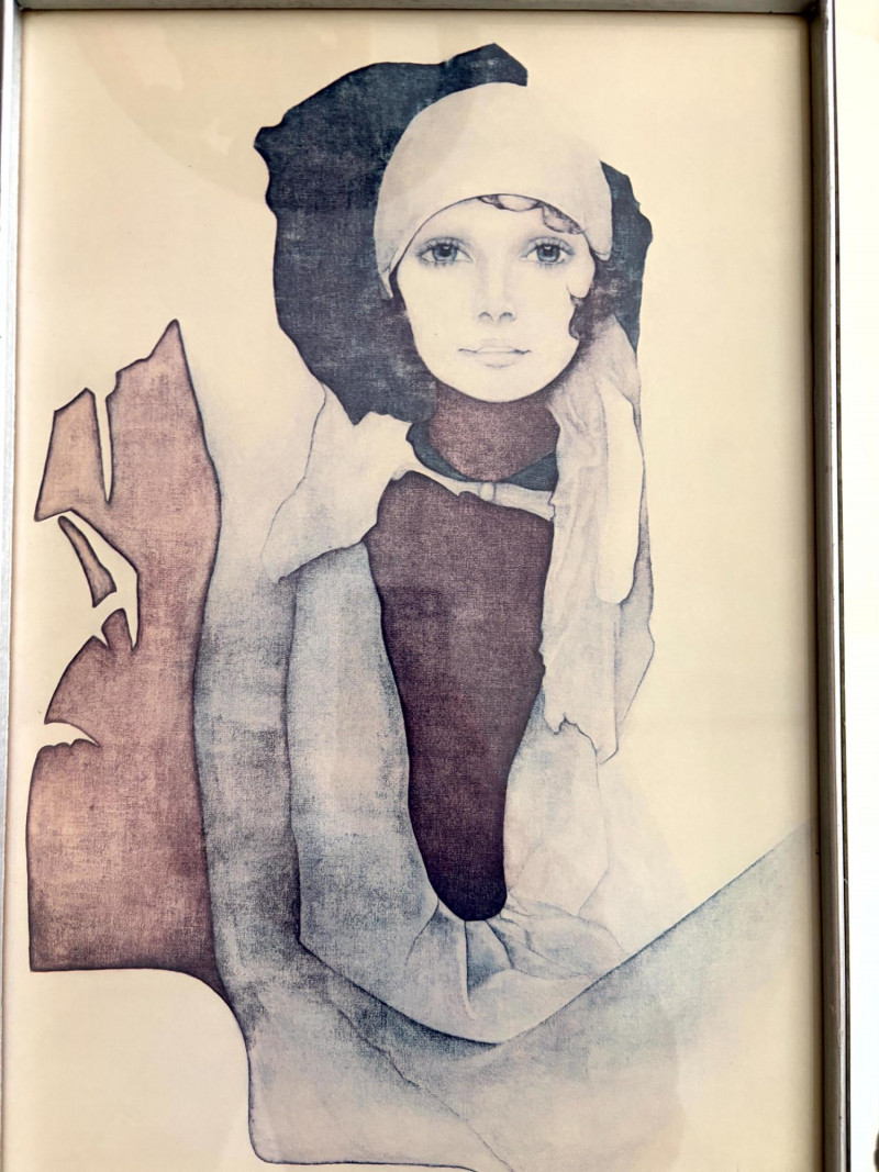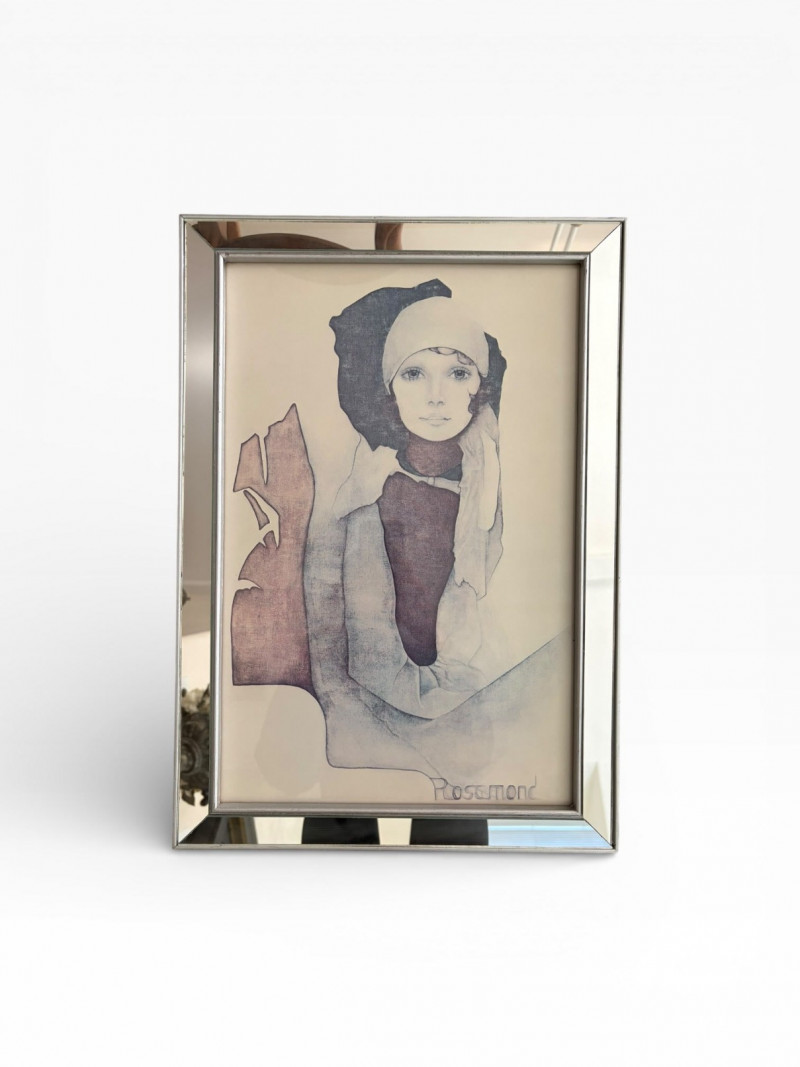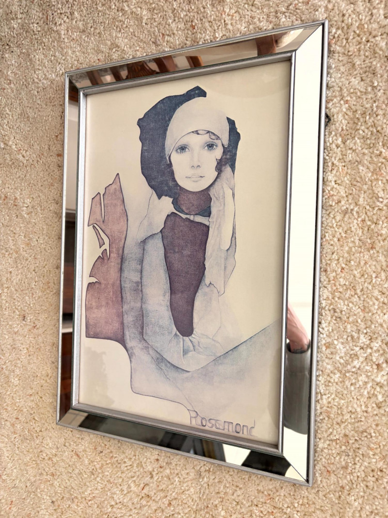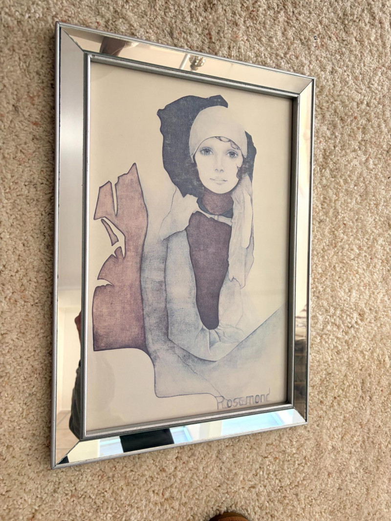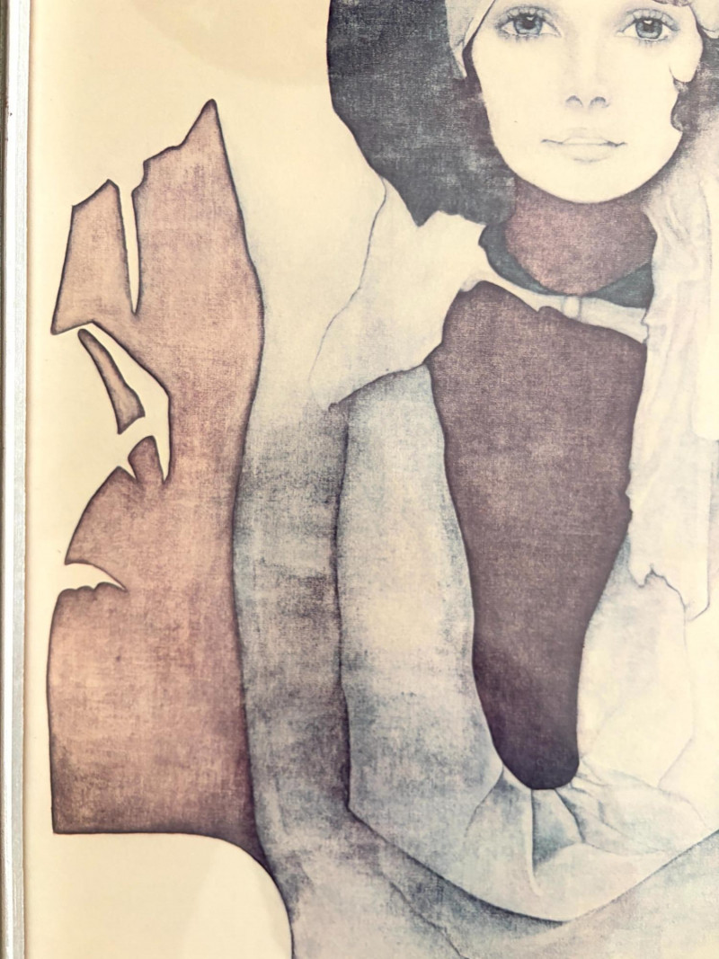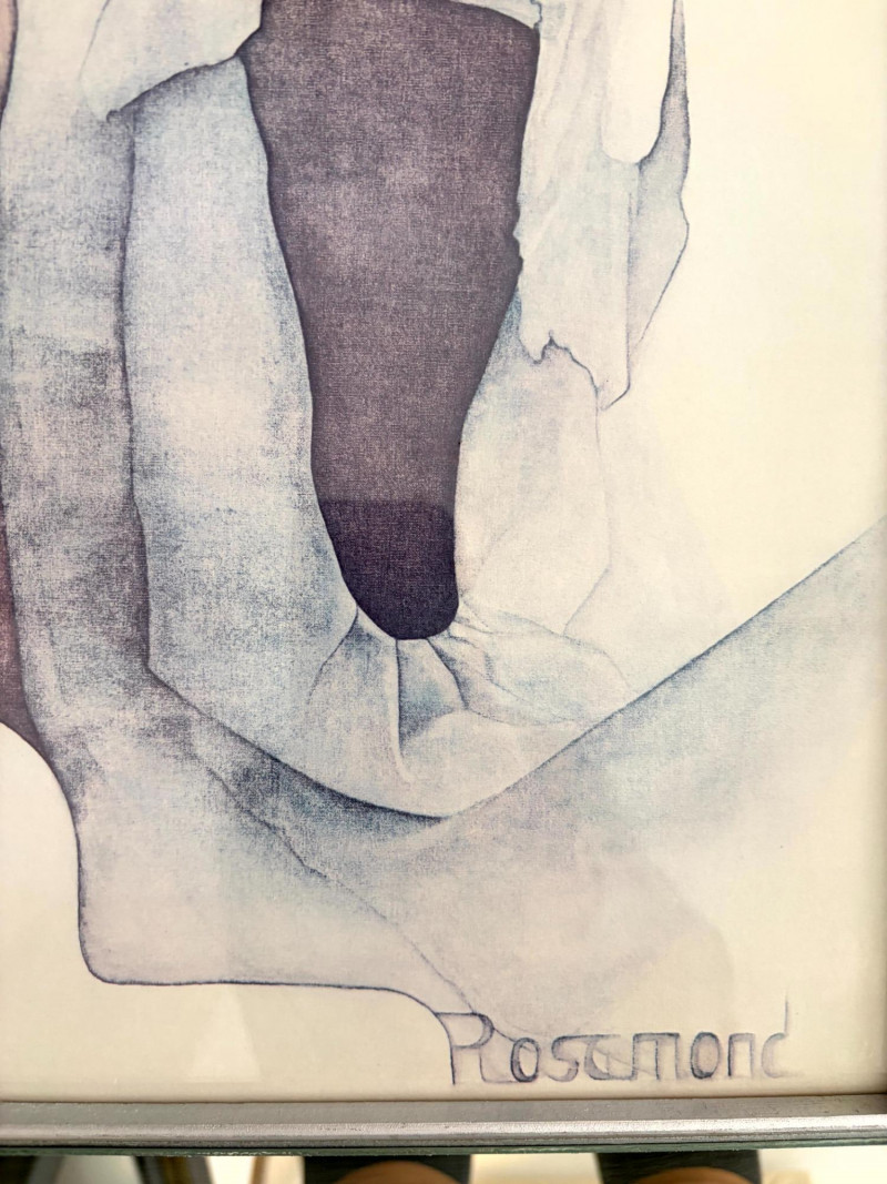 Vintage Christine Rosamond “Simone” Framed Print. Titled: “Simone” Christine Rosamond (1947–1994) was an American artist known for her paintings, watercolors, etchings, lithographs, and acrylic works. She became widely recognized for her minimalist compositions and focus on elegant female figures.