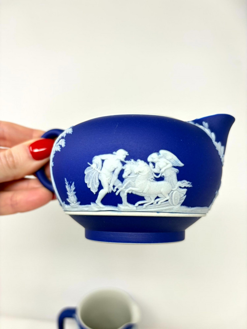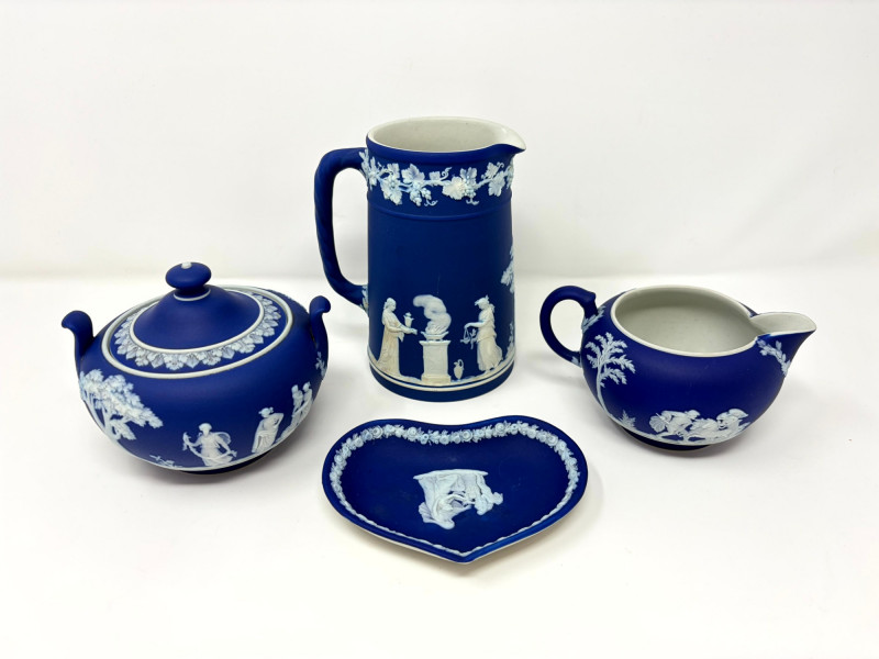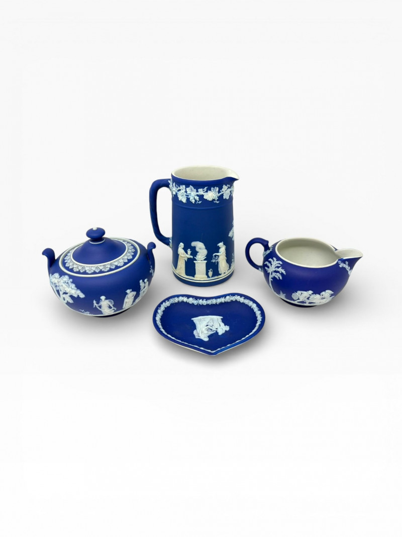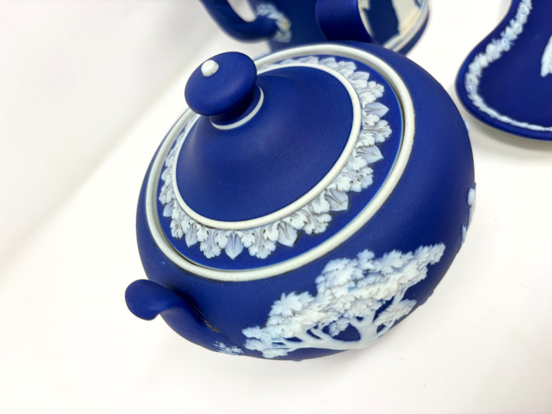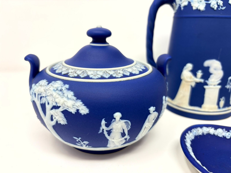 Lot # 13 - Antique Wedgwood Dark Blue Jasperware Tea Set – Circa 1865