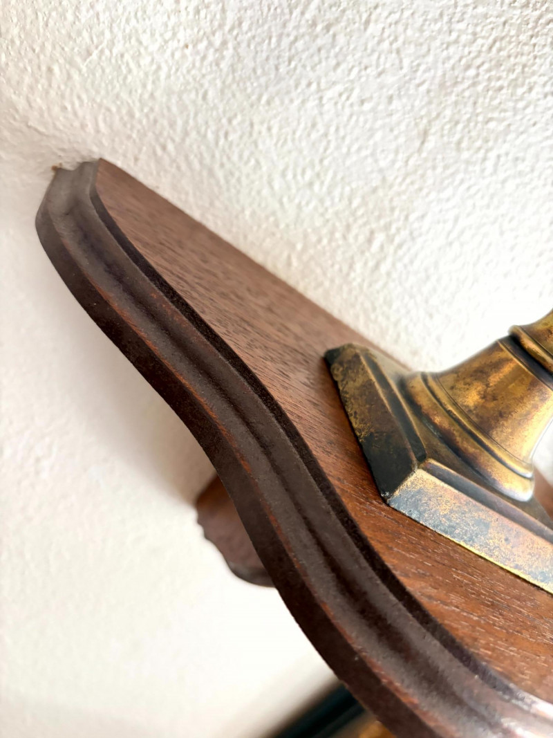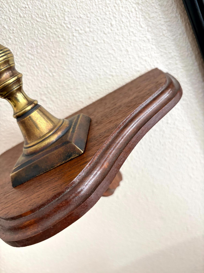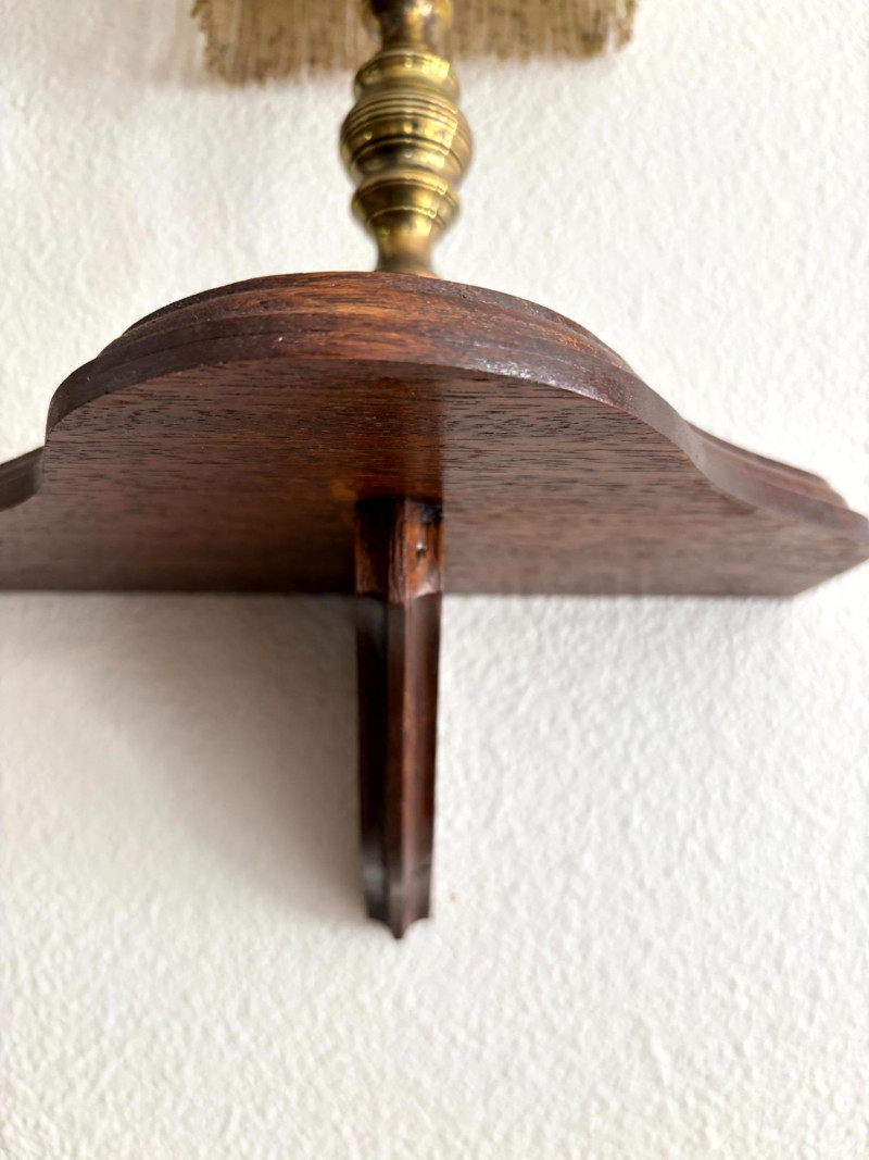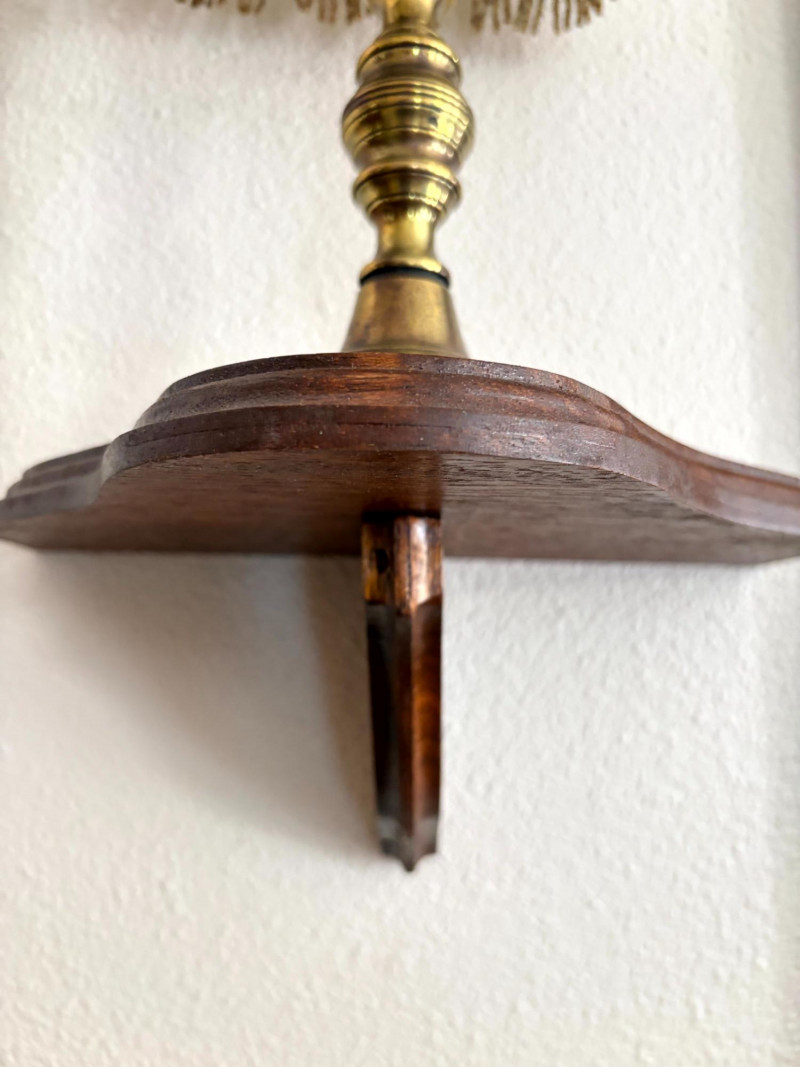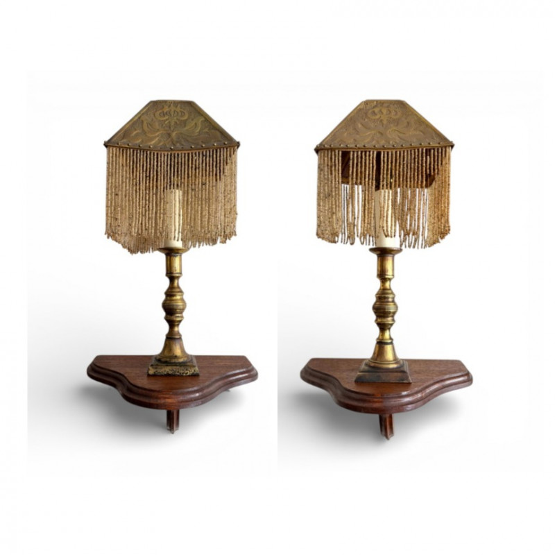 Antique Beaded Table Lamps w/ Embossed Metal Shades & Wall Shelves.
