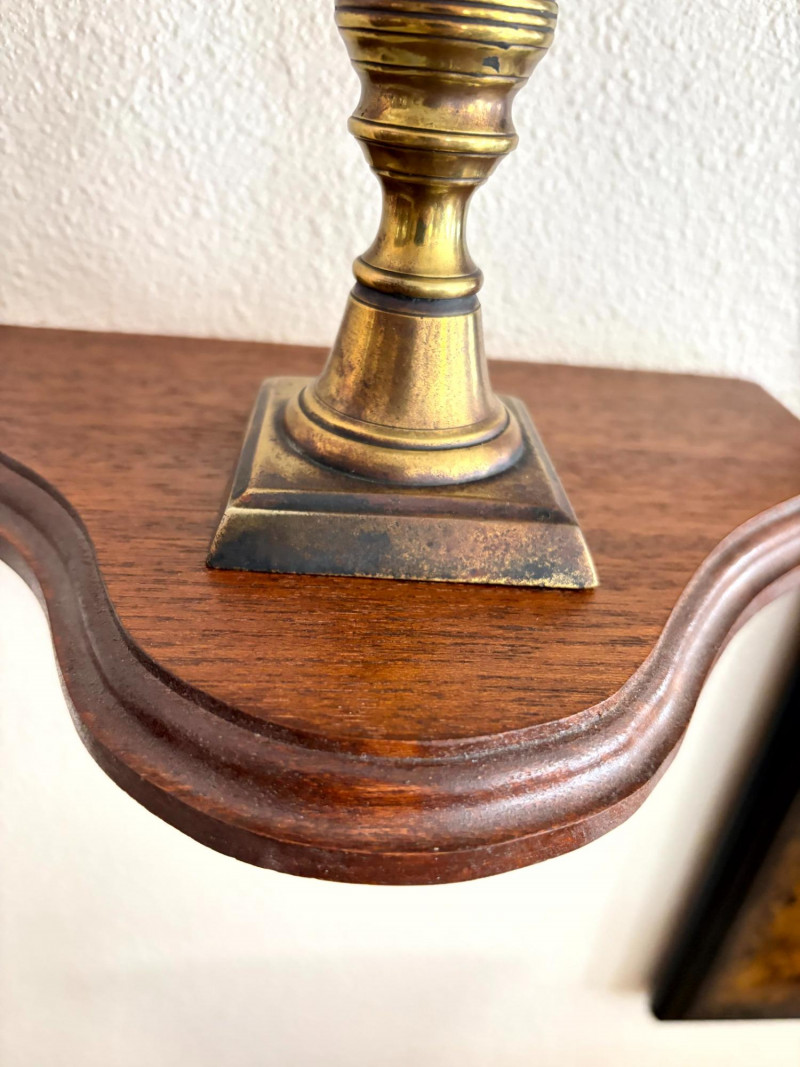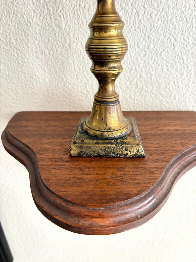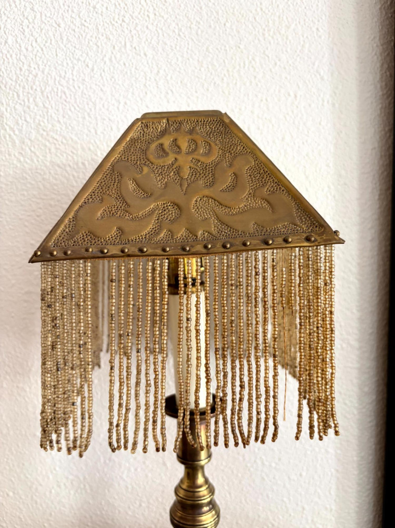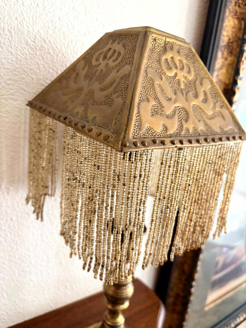 Lot # 19 - Antique Beaded Table Lamps w/ Embossed Metal Shades & Wall Shelves