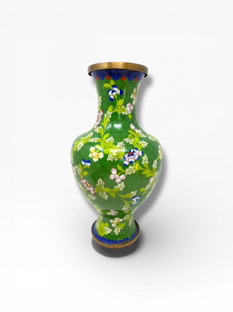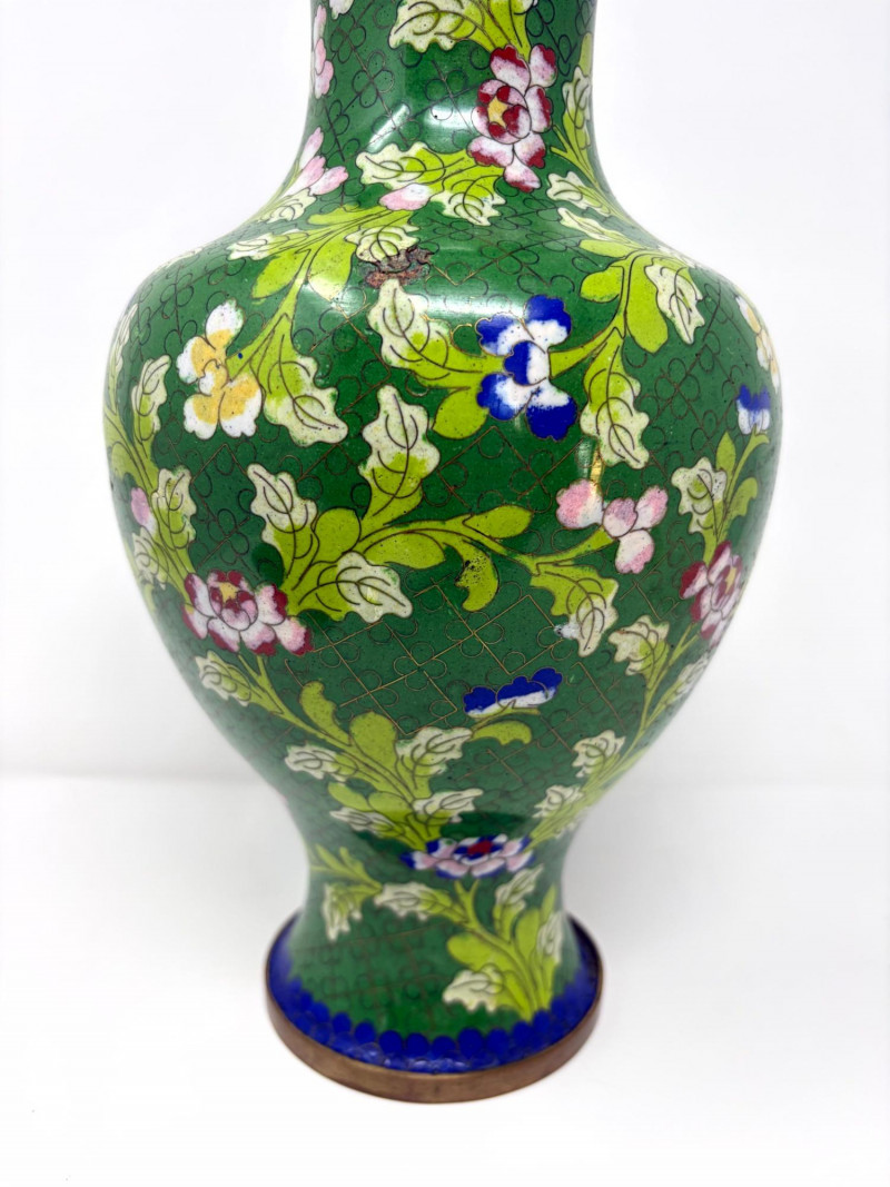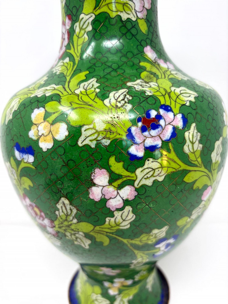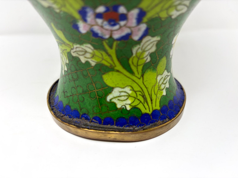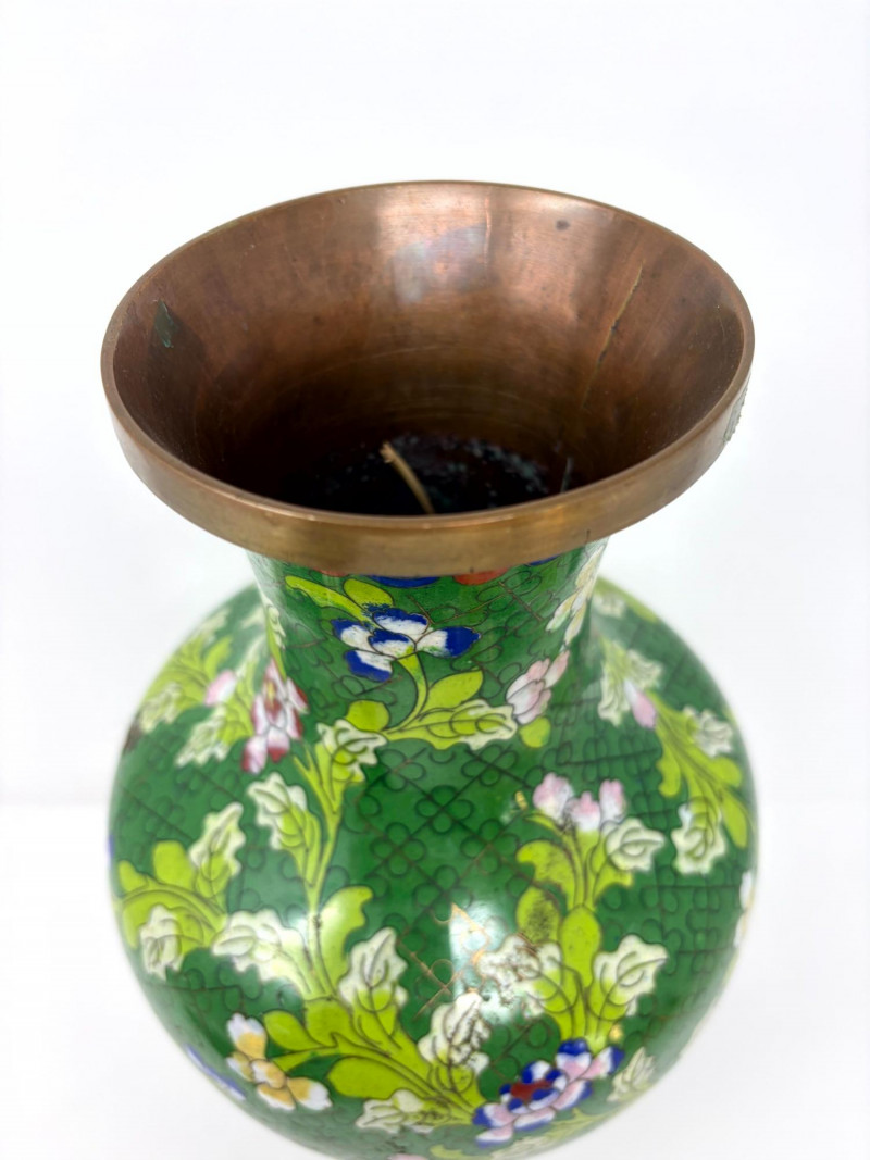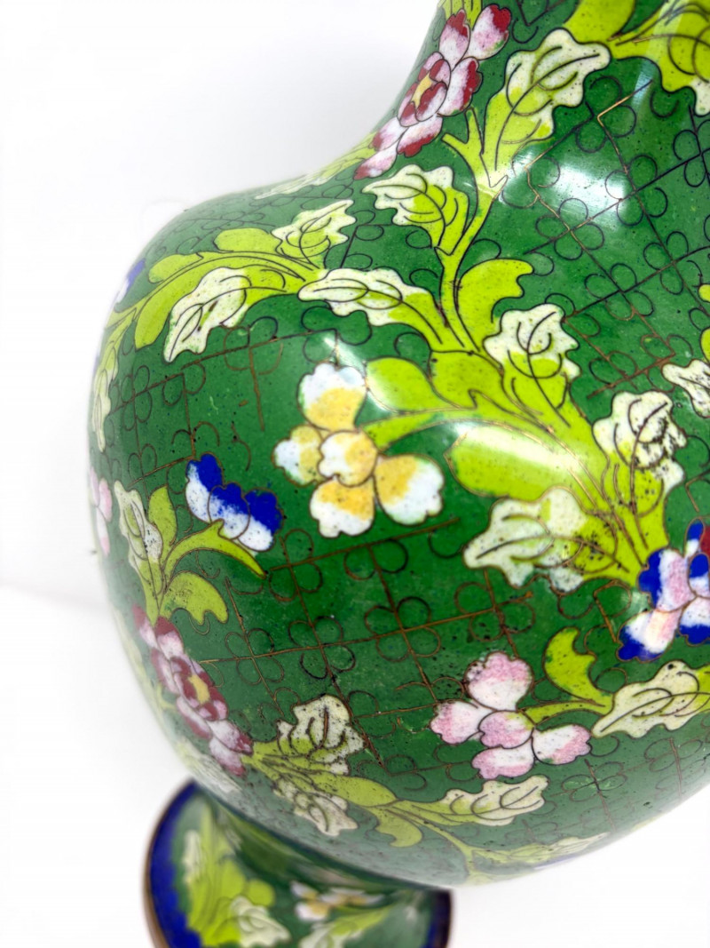 Lot # 20 - Vintage Green Cloisonné Enamel Vase w/ Floral Motif