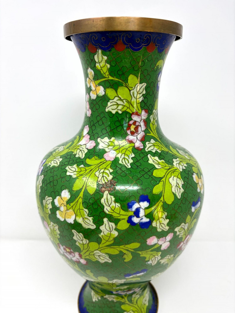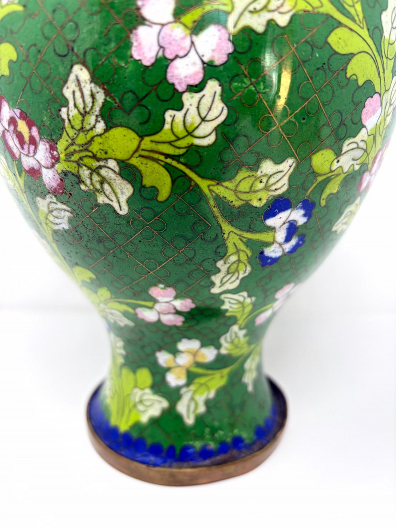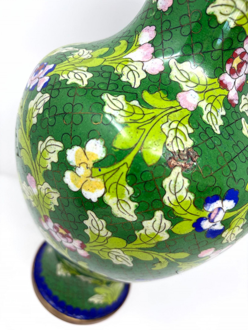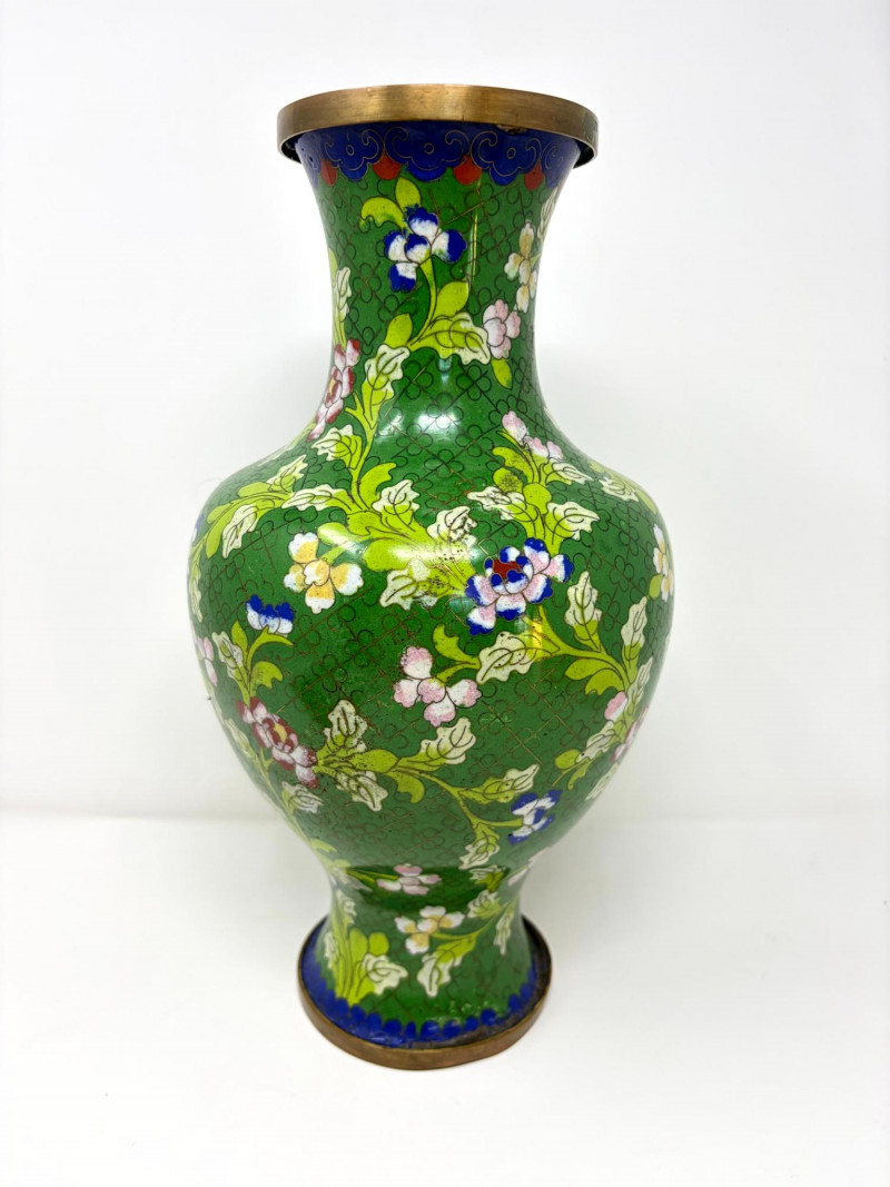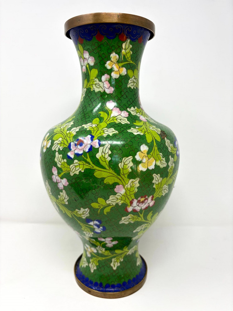 Lot # 20 - Vintage Green Cloisonné Enamel Vase w/ Floral Motif