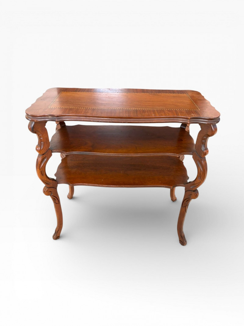 Lot # 21 - Petite Antique Inlaid Wood End Table w/ Two-Tier Shelf