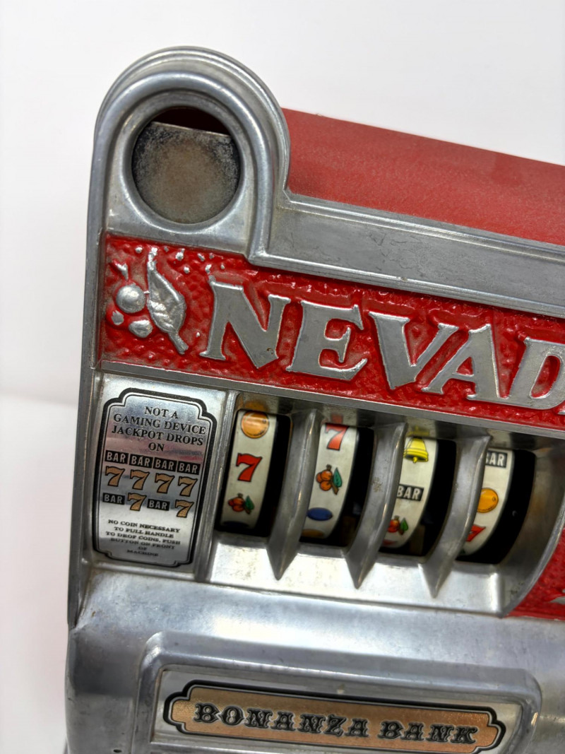 Vintage Bonanza Bank Nevada Slot Machine Coin Bank.