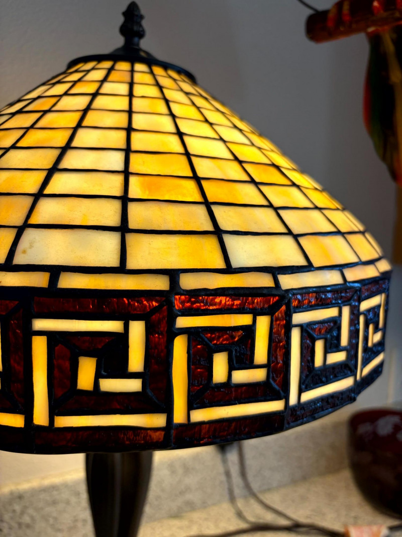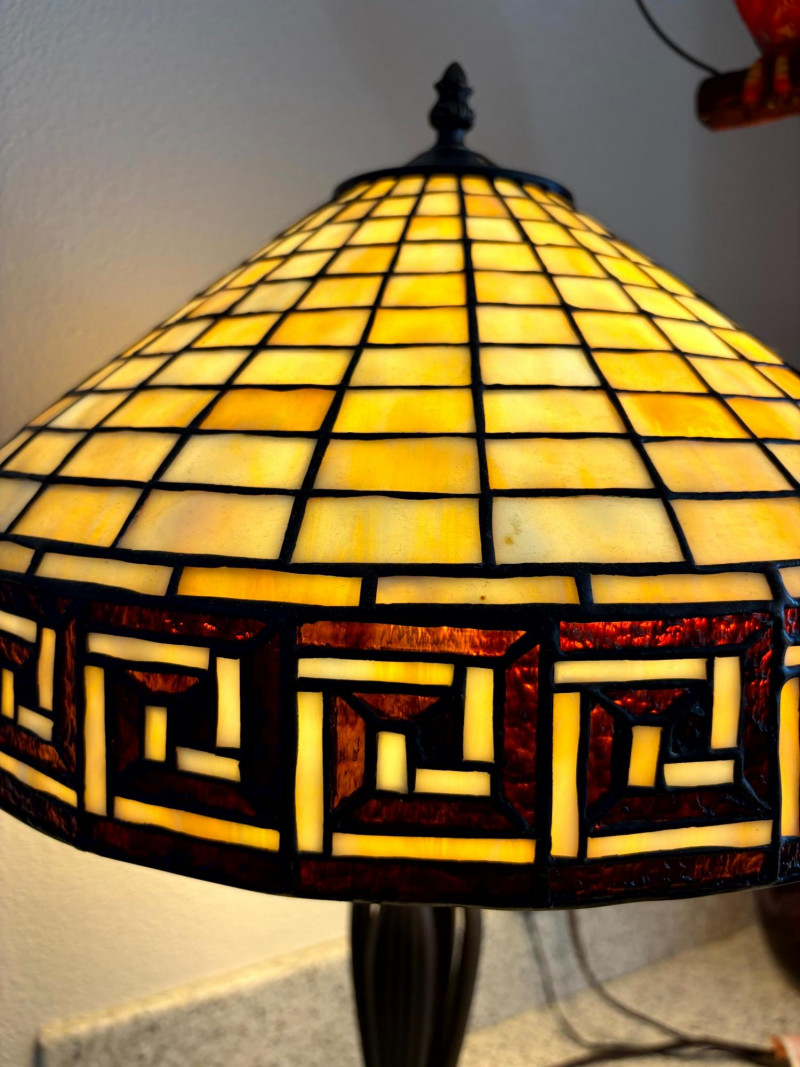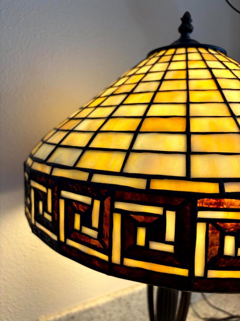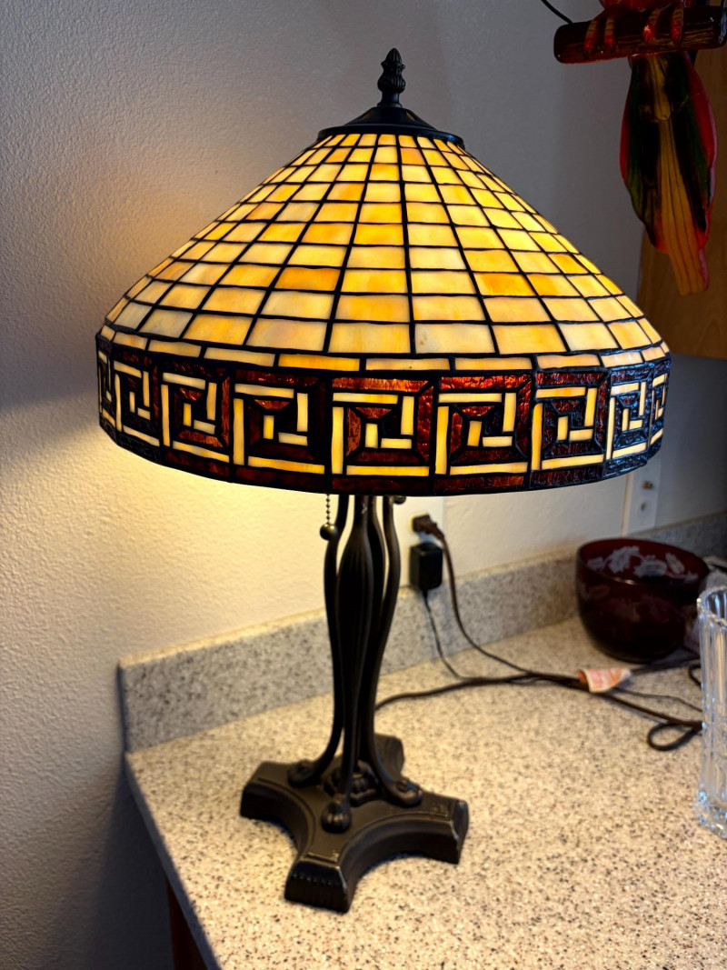 Tiffany Style Slag Glass Table Lamp w/ Sculpted Metal Claw Foot Base.