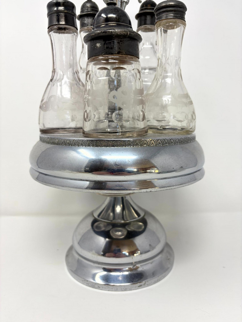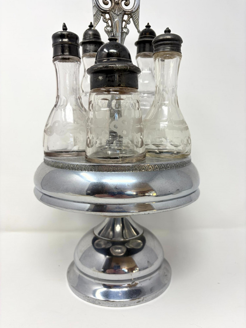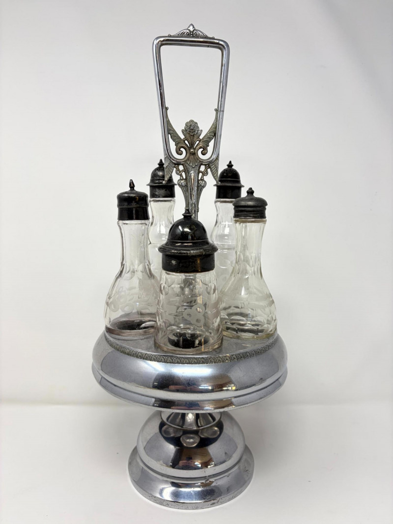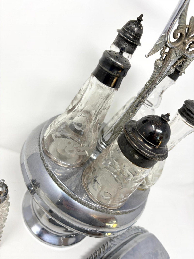 Lot # 28 - Victorian Style Castor Set, Condiment Bottles & Irvinware Butter Dish
