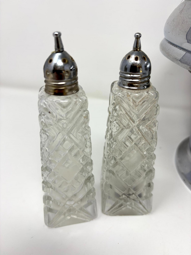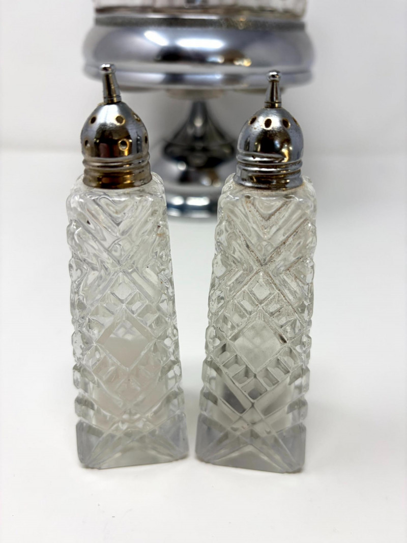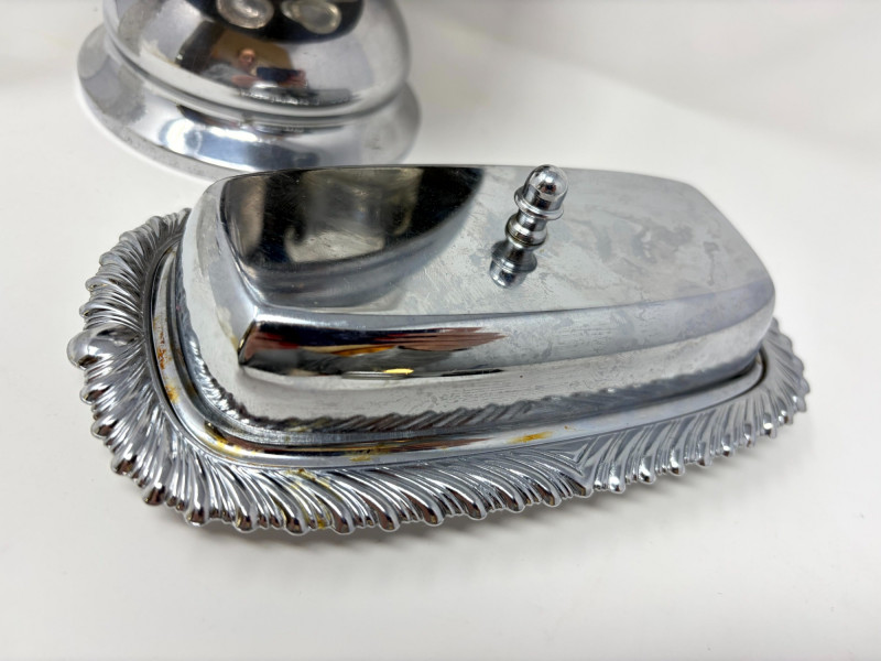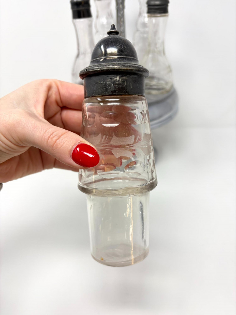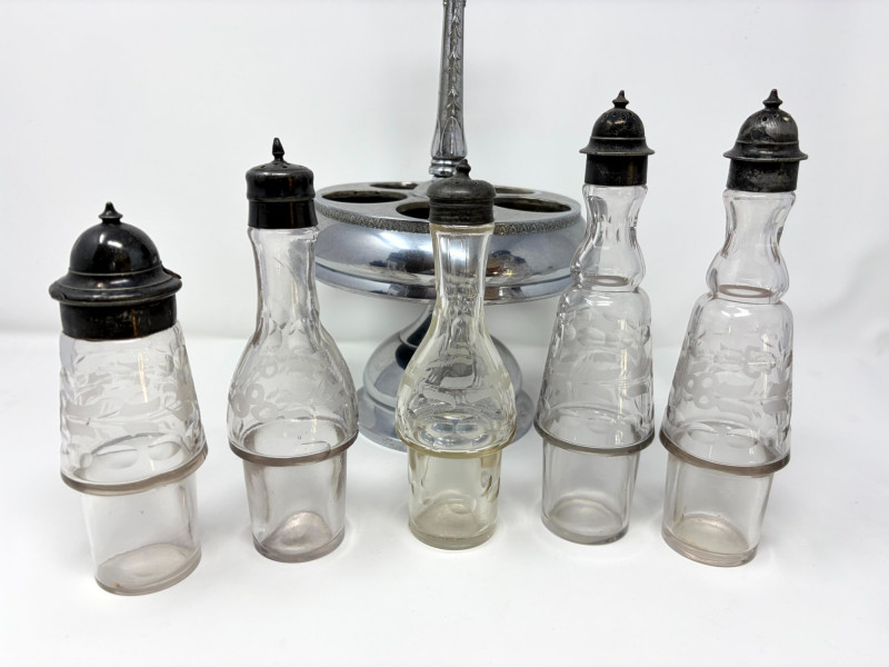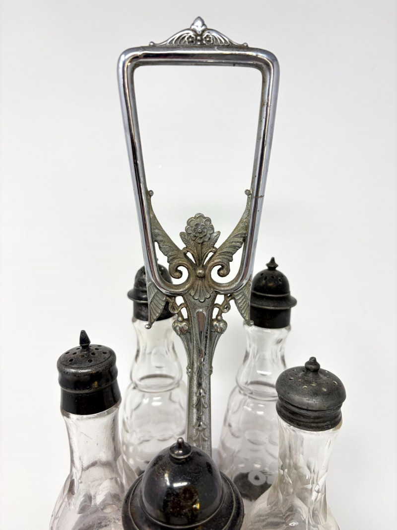 Victorian Style Castor Set, Condiment Bottles & Irvinware Butter Dish. Victorian Style 5-Bottle Castor Set Condiment Bottles