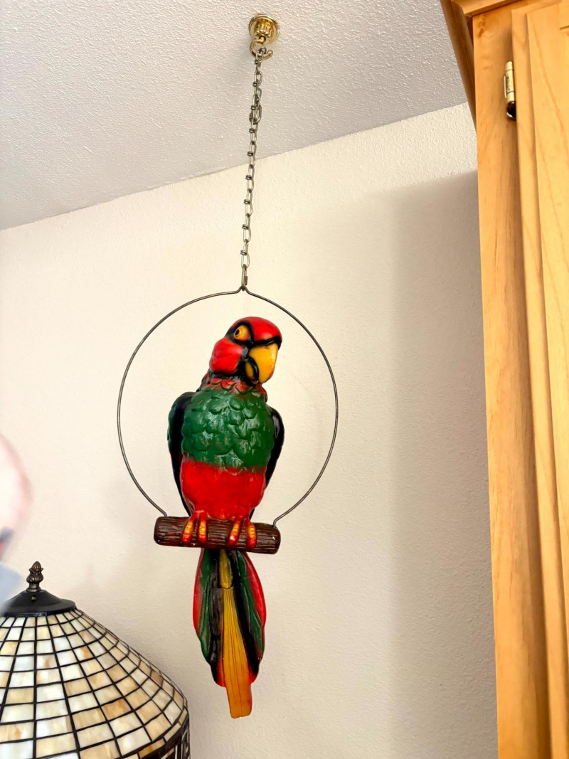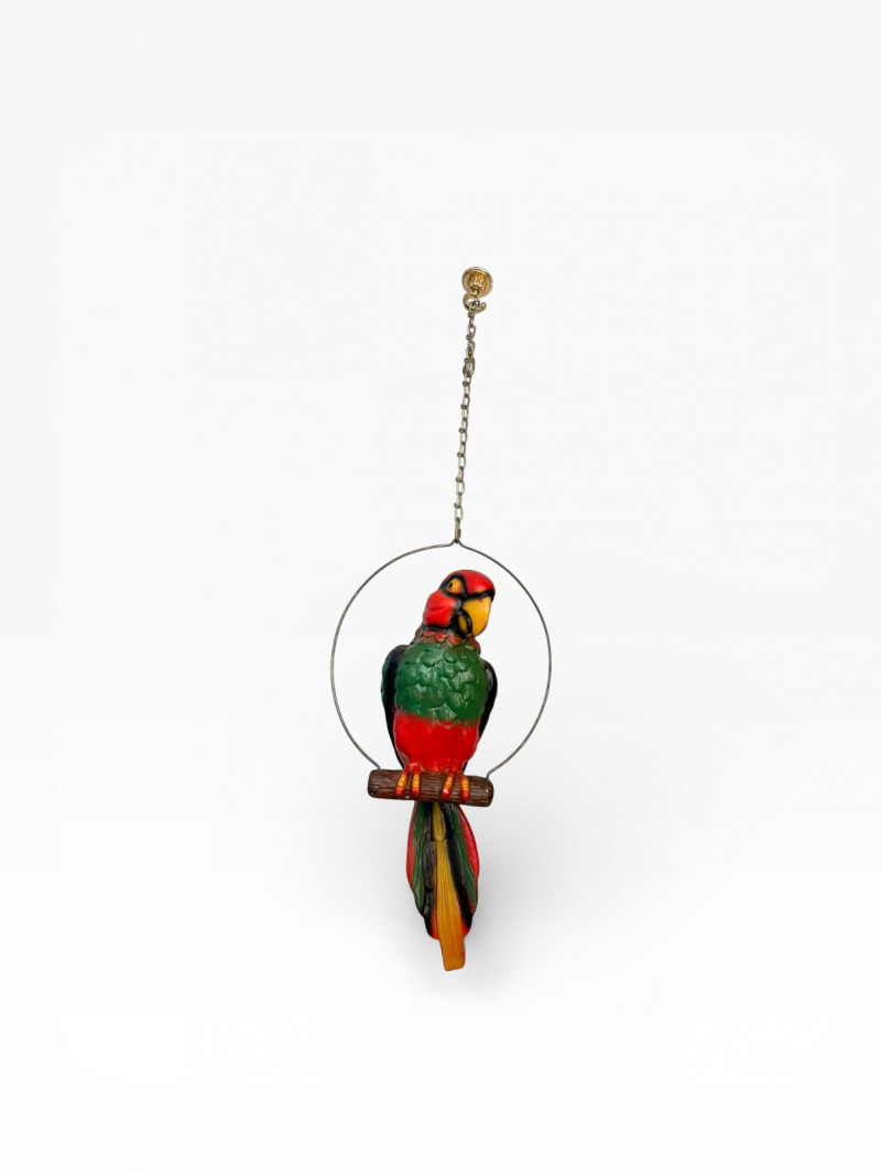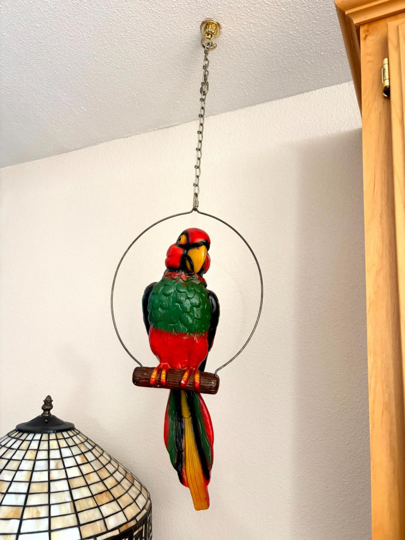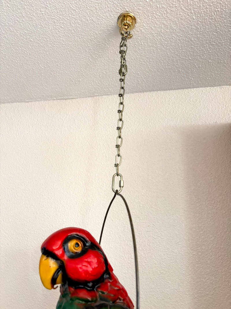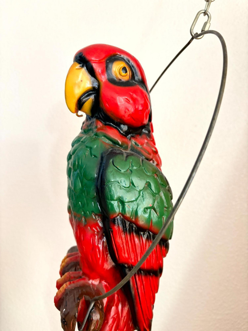 Plaster Macaw Parrot Hanging Wall Sculpture w/ Metal Ring.