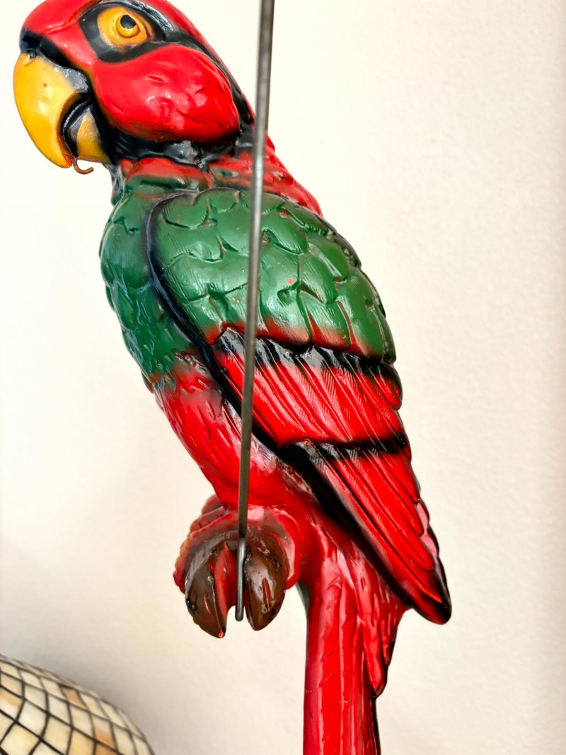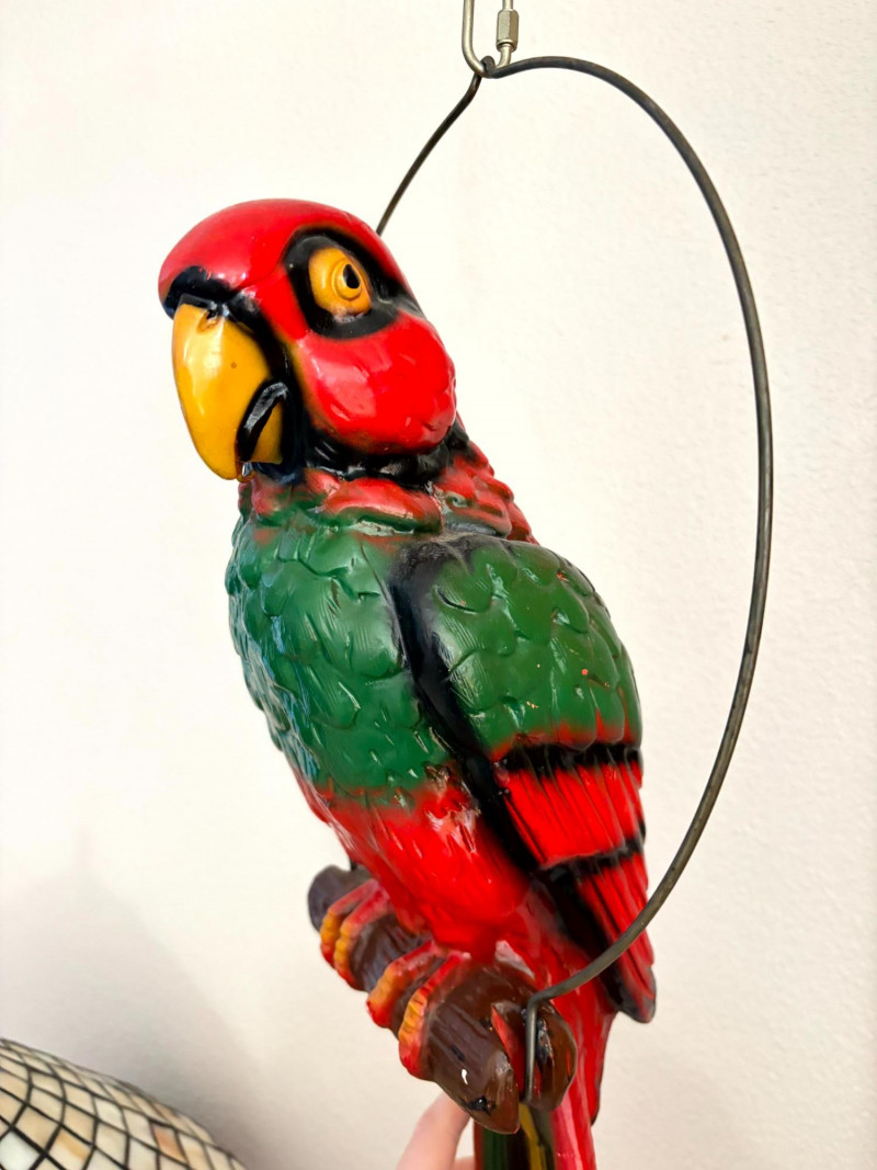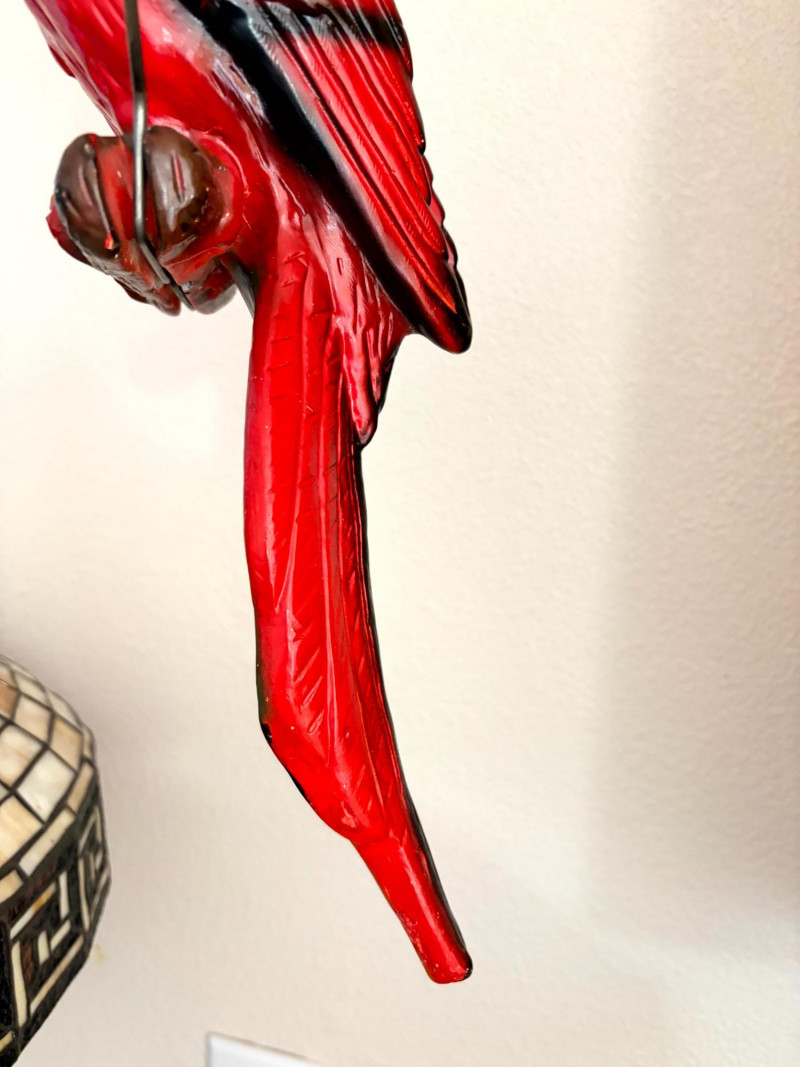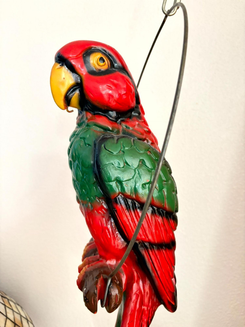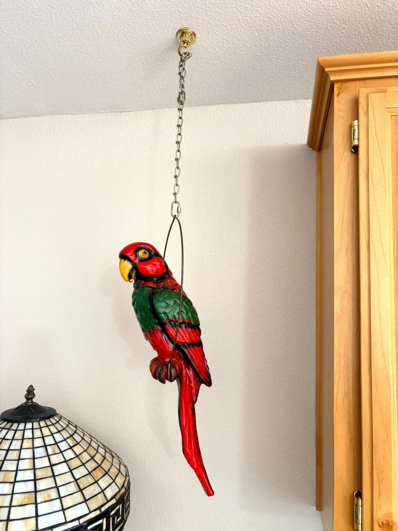 Plaster Macaw Parrot Hanging Wall Sculpture w/ Metal Ring.