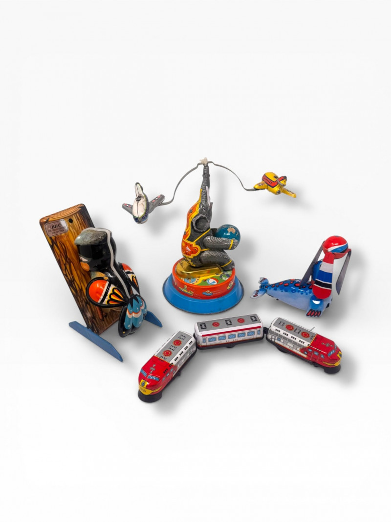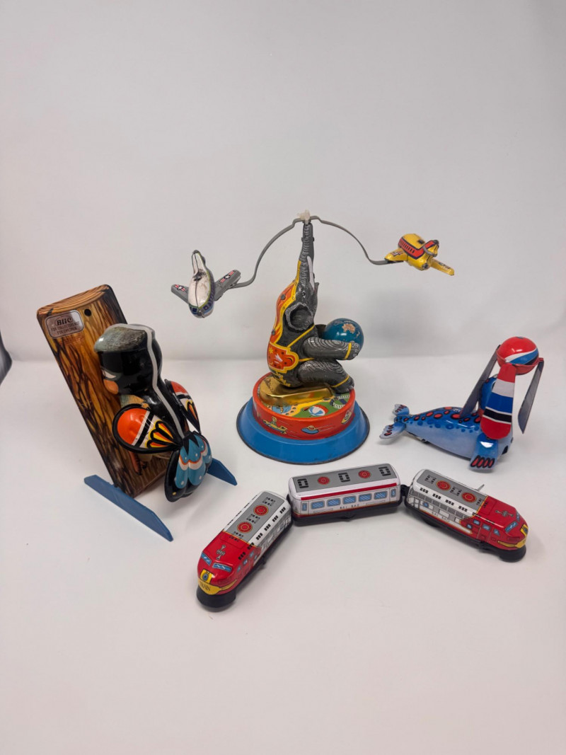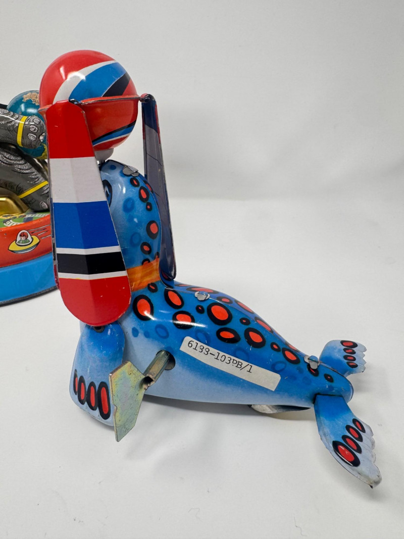 Vintage Tin Wind-Up Toys – Elephant, Express Train, Sea Lion +