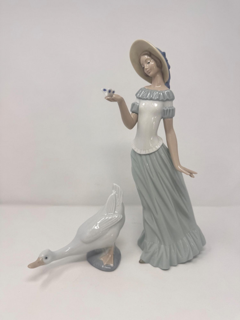 Lot # 37 - Nao by Lladro Butterfly Lady & Goose Porcelain Figurines – Spain