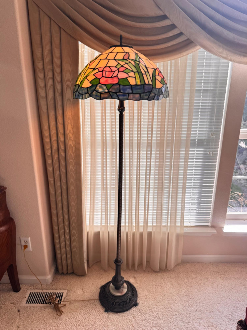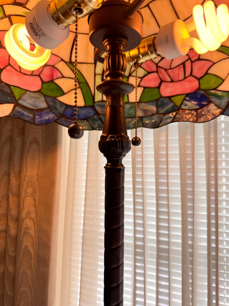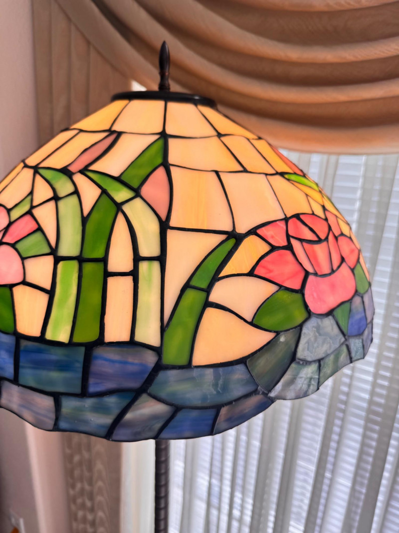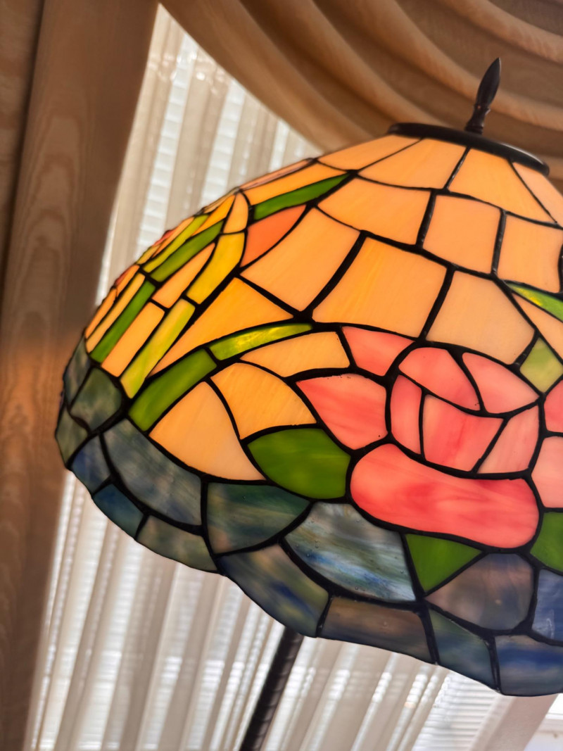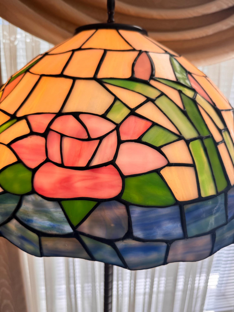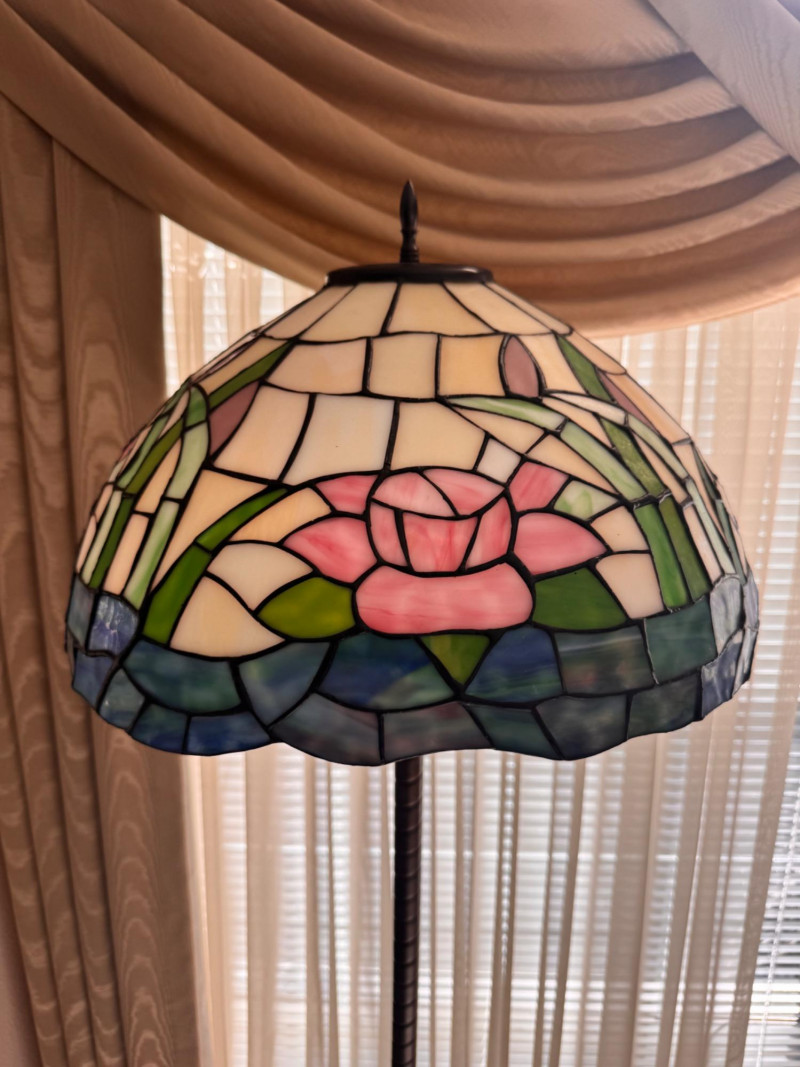 Tiffany Style Pink Rose Stained Glass Floor Lamp.