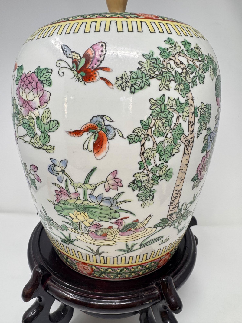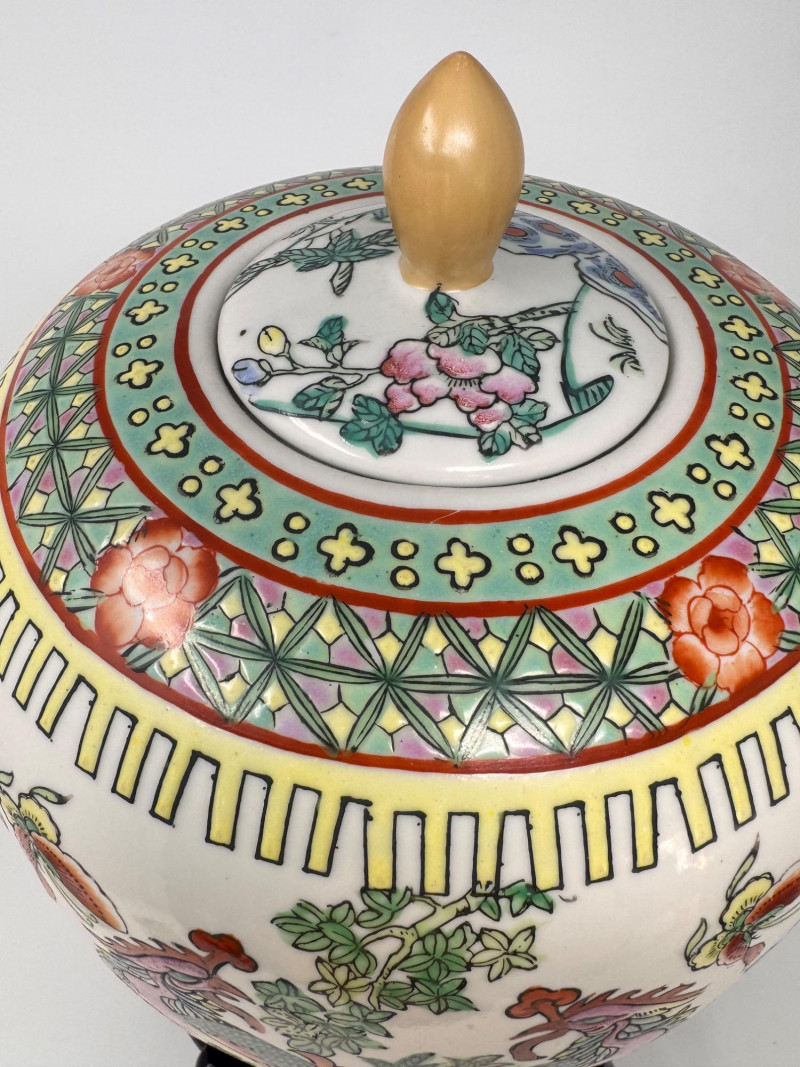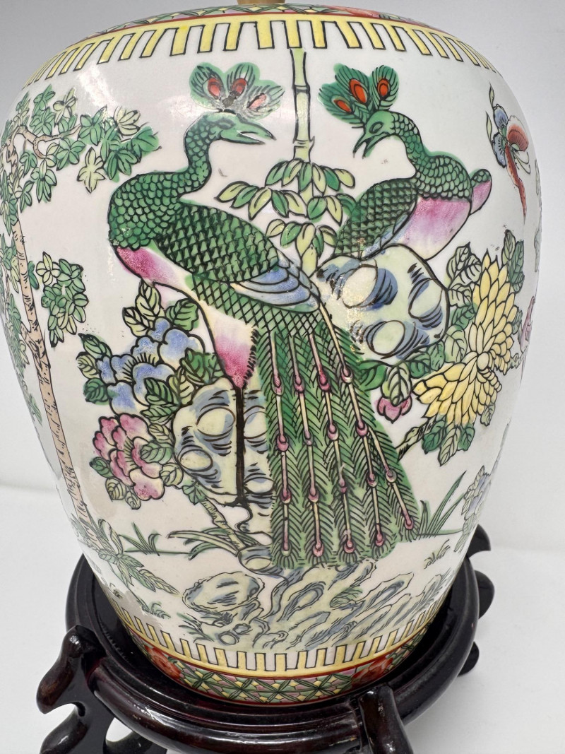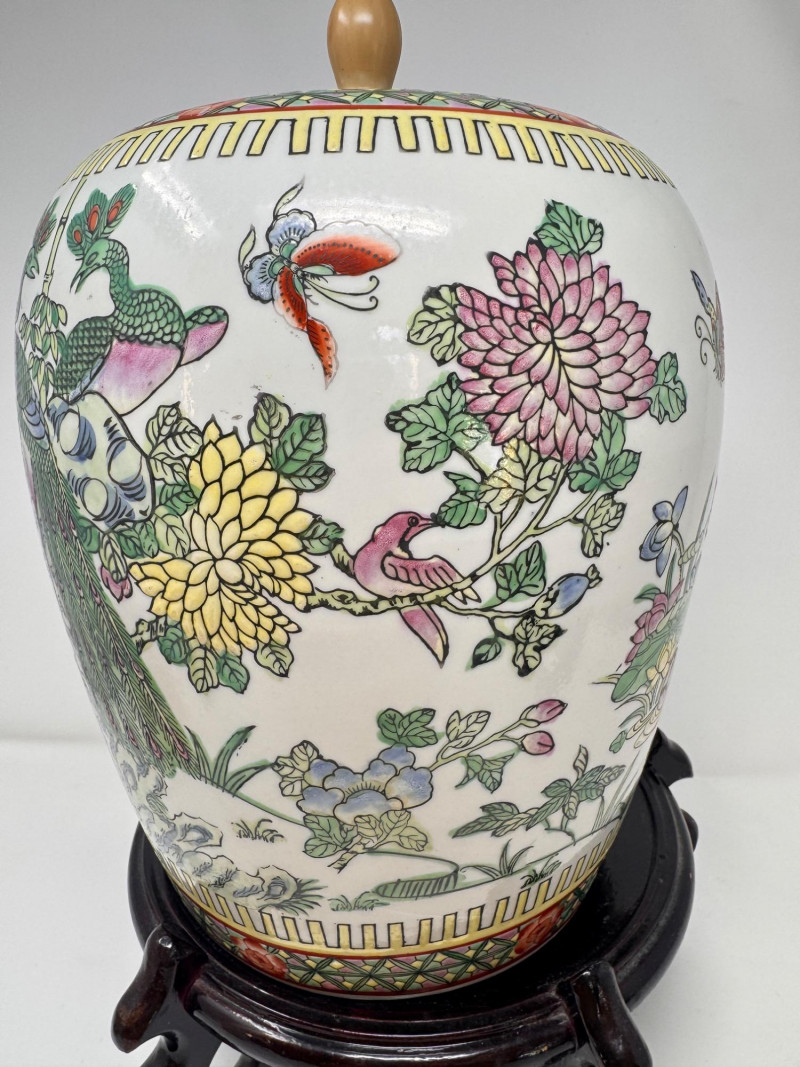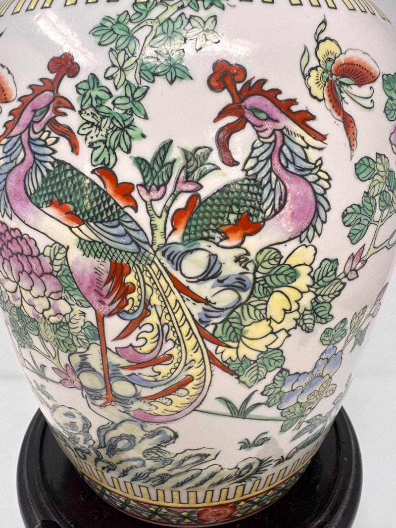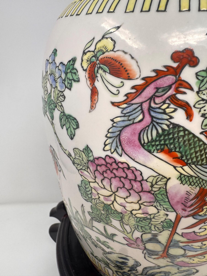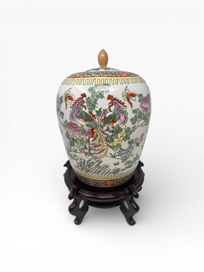 Lot # 43 - Hand-Painted Asian Porcelain Ginger Jar w/ Phoenix & Floral Motif