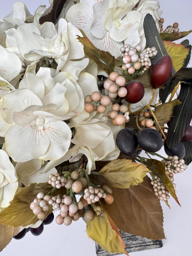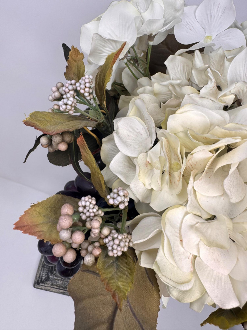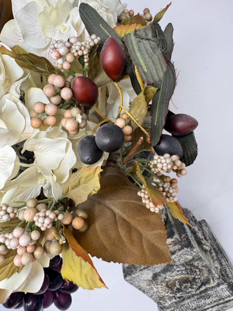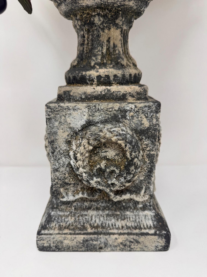 Lot # 44 - Faux Floral Arrangement w/ Grapes in Pedestal Stone Finish Urn
