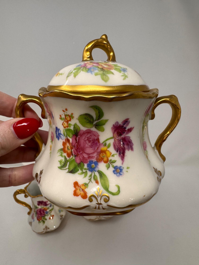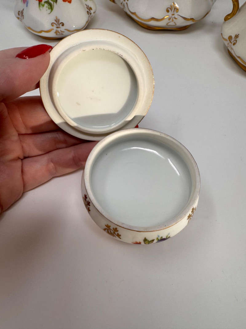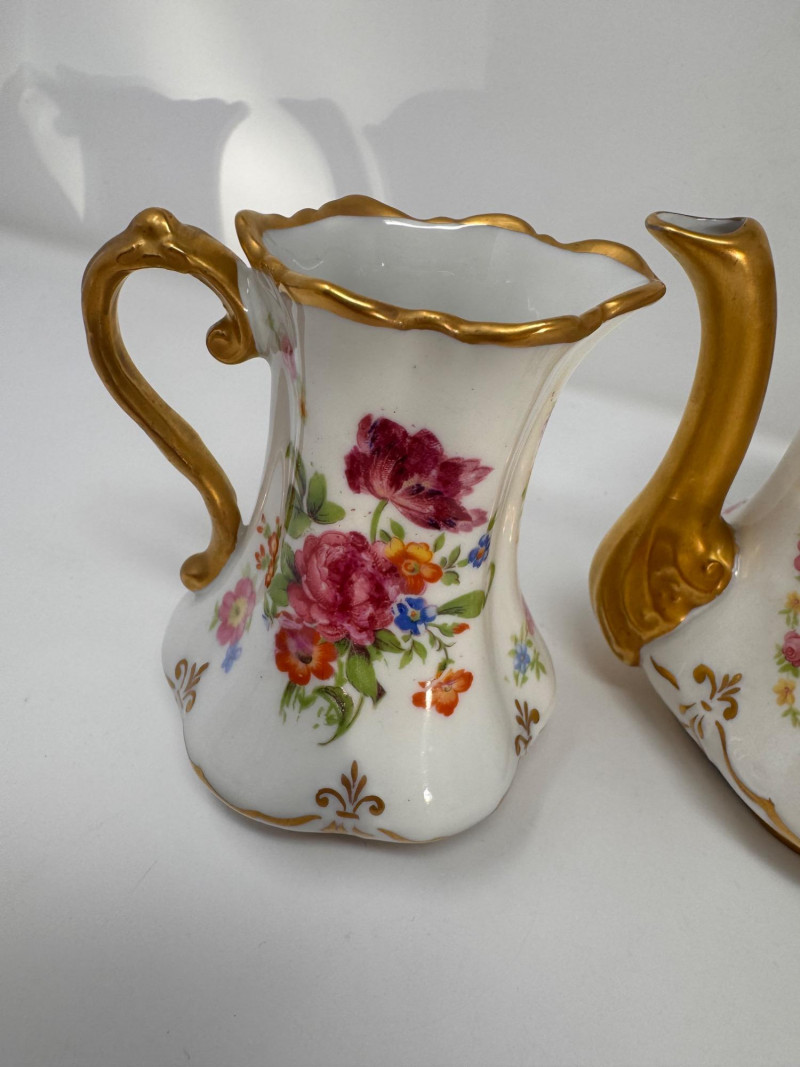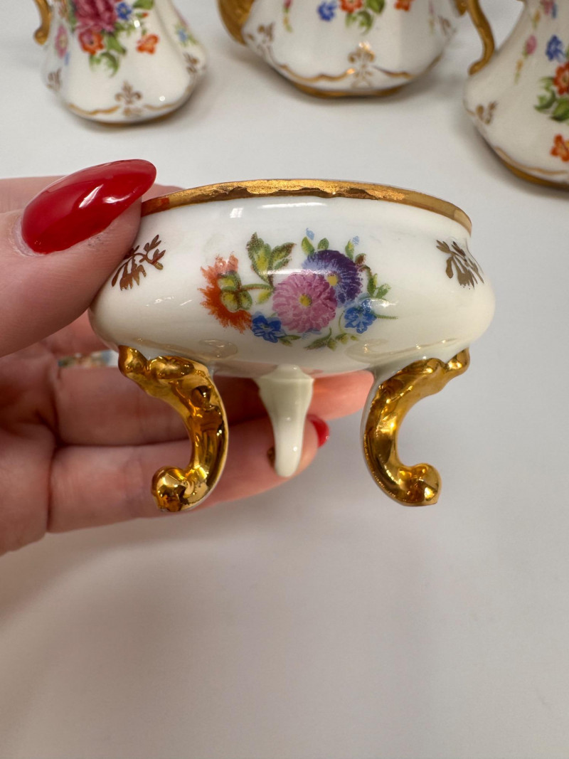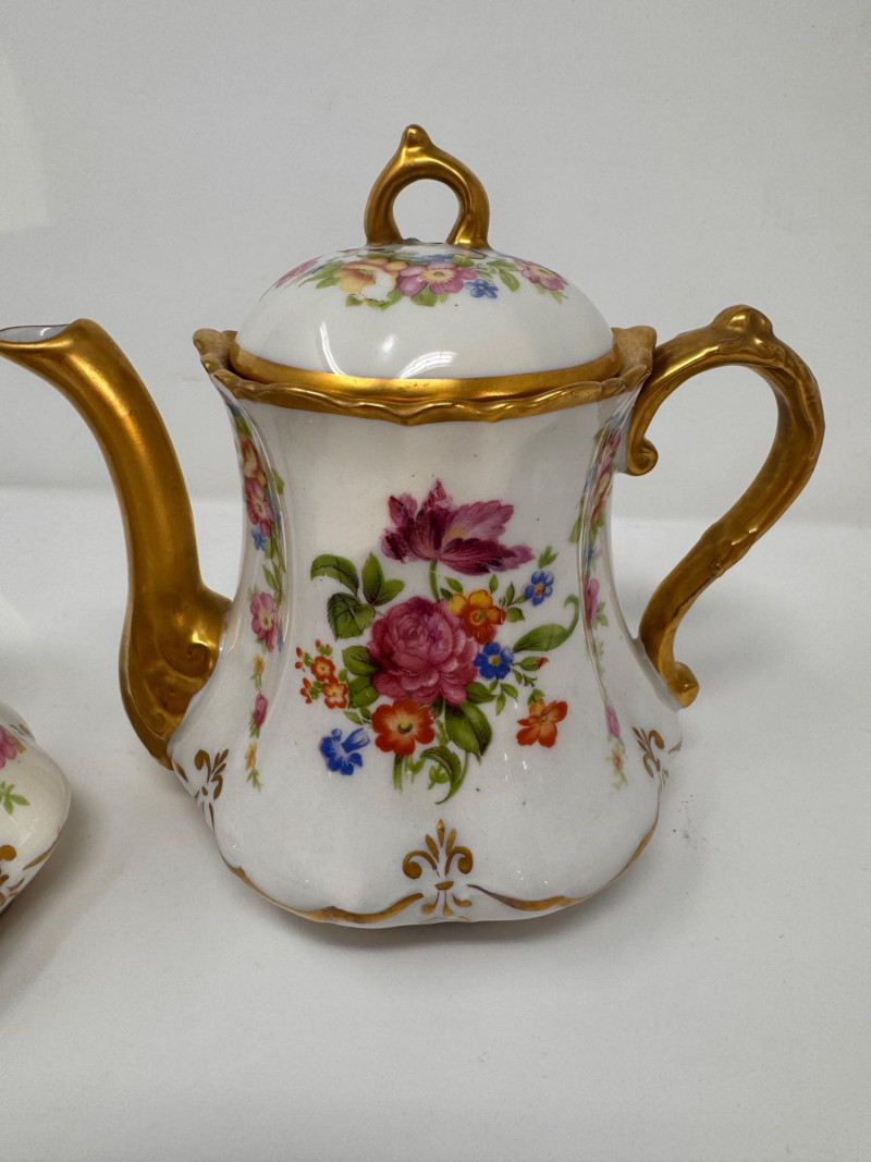 Limoges Porcelain, Cat Music Box & Floral Gilt Tea Set Collection.