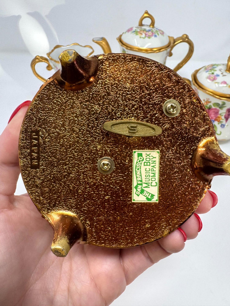 Lot # 48 - Limoges Porcelain, Cat Music Box & Floral Gilt Tea Set Collection