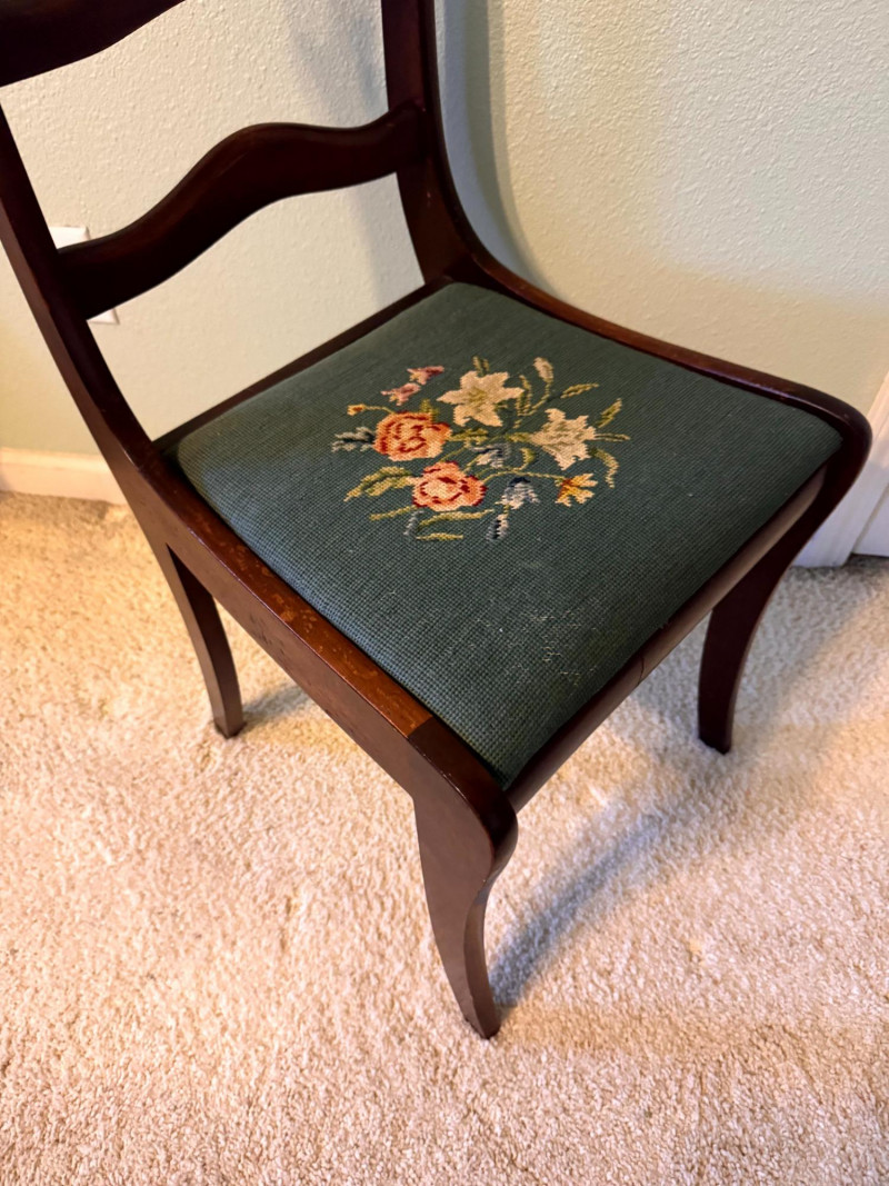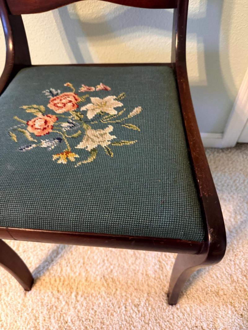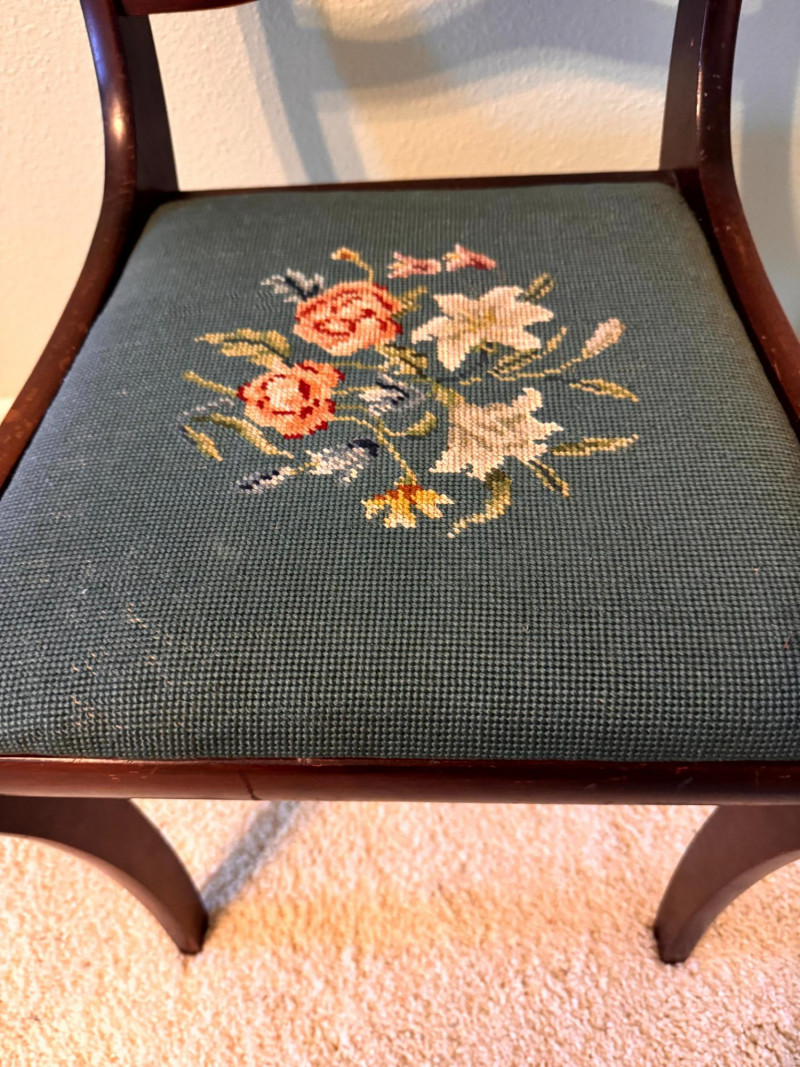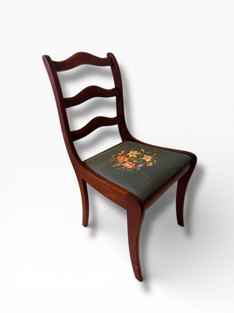 Vintage Wooden Side Chair w/ Needlepoint Upholstery - Illinois.