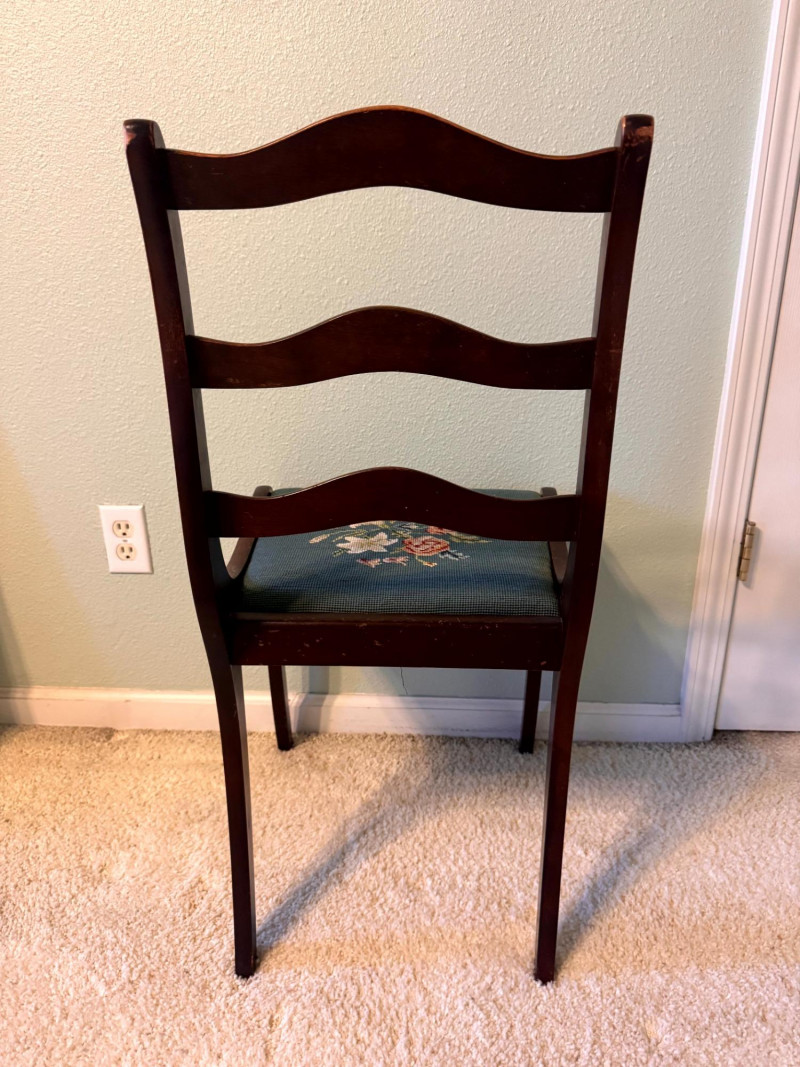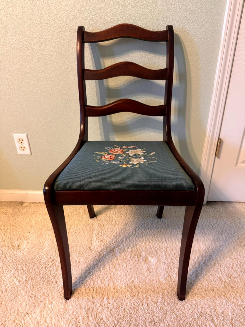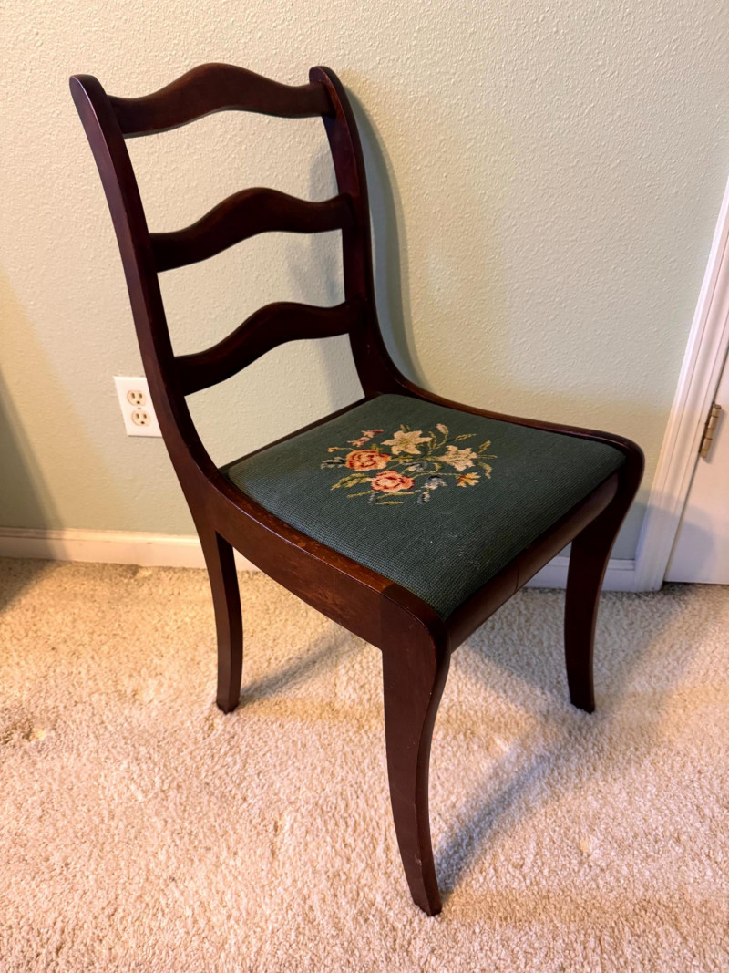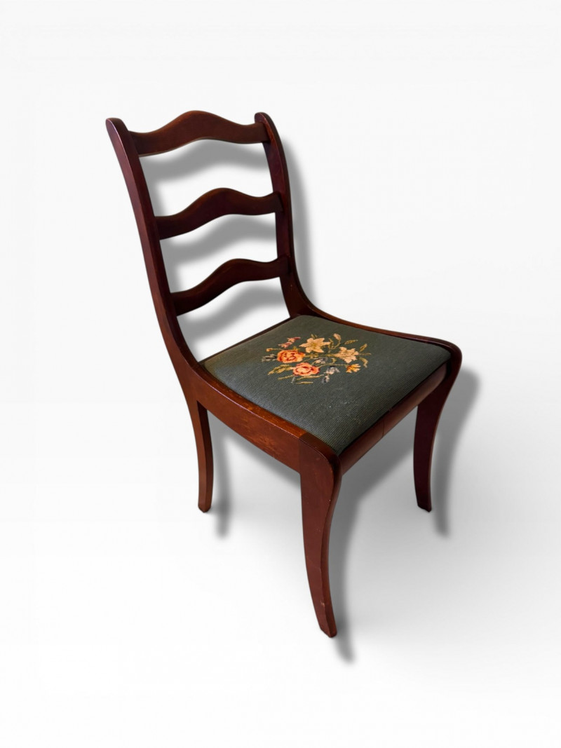 Vintage Wooden Side Chair w/ Needlepoint Upholstery - Illinois.