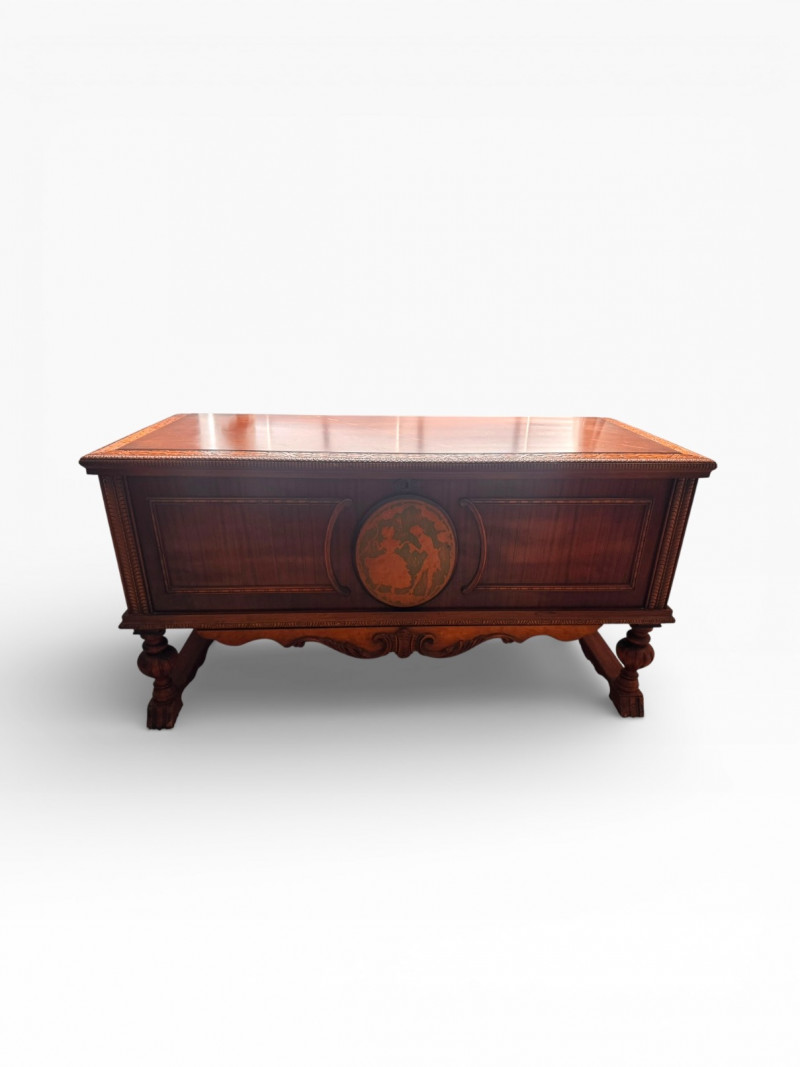 Lot # 54 - Vintage Roos Cedar Chest Dancing Inlay Carved Legs