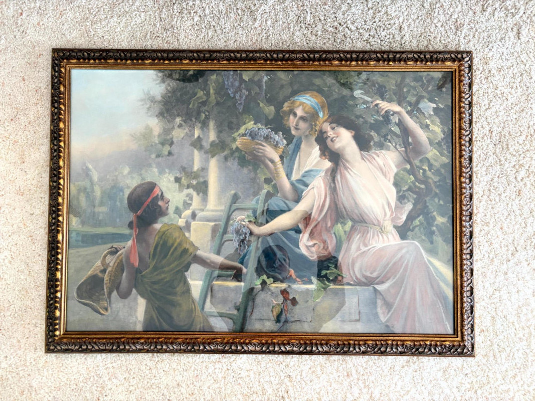 Large Framed Classical Women Garden Scene Print.