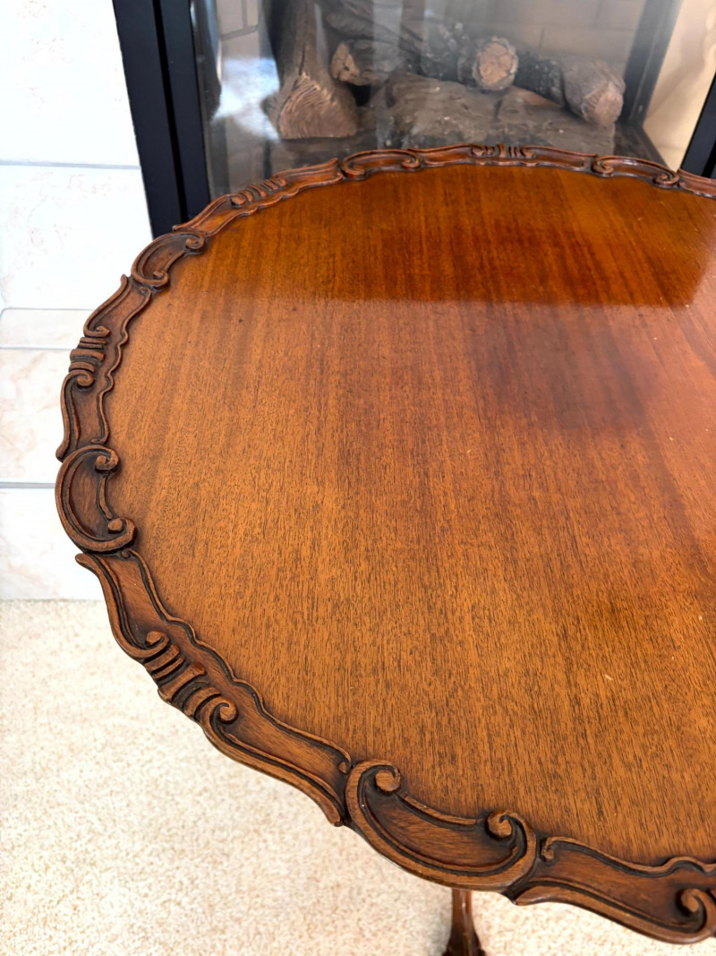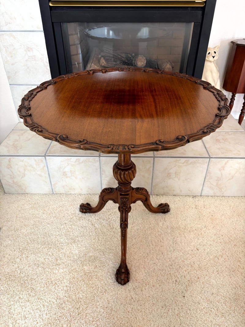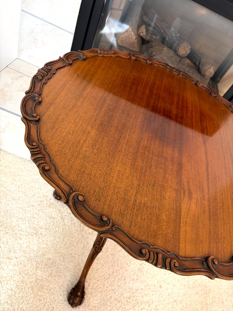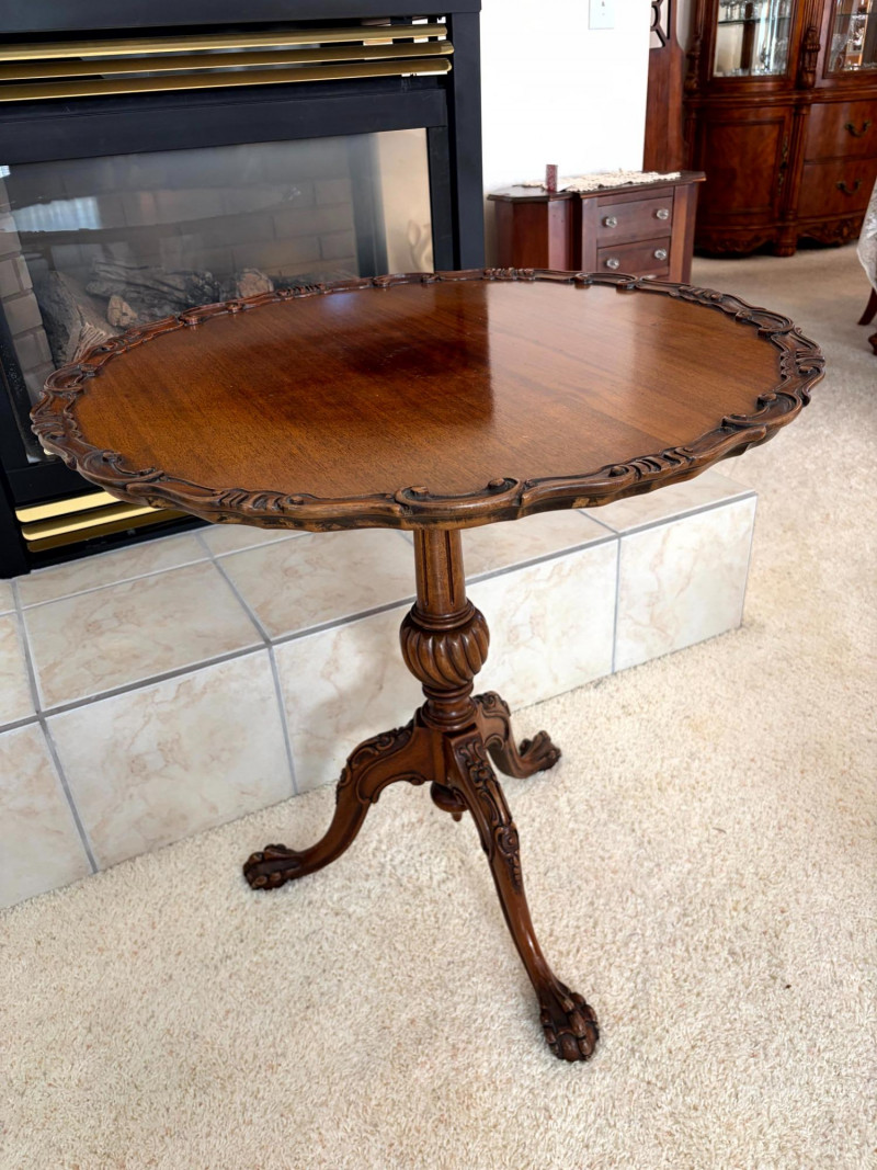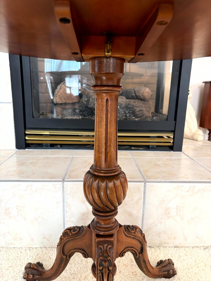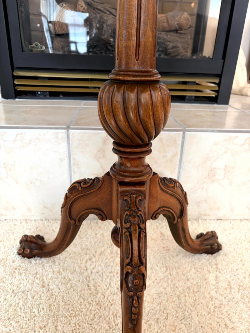 Large Antique Round Carved Pedestal Foyer Table w/ Claw Feet.