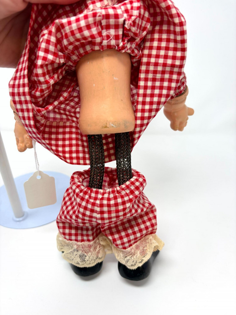 1938 Baby Snooks Composition Doll – Fanny Brice Character. The Baby Snooks doll, created by the Ideal Toy Company in 1938, is a 12-inch "Flexy" doll based on the character famously portrayed by American comedienne Fanny Brice in her popular radio show. These vintage dolls, which are highly collectible, feature a composition head, hands, and feet with a flexible wire mesh body.