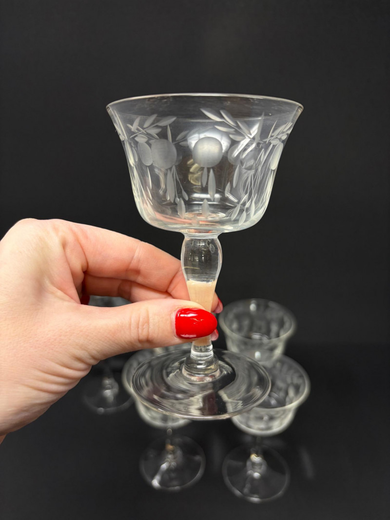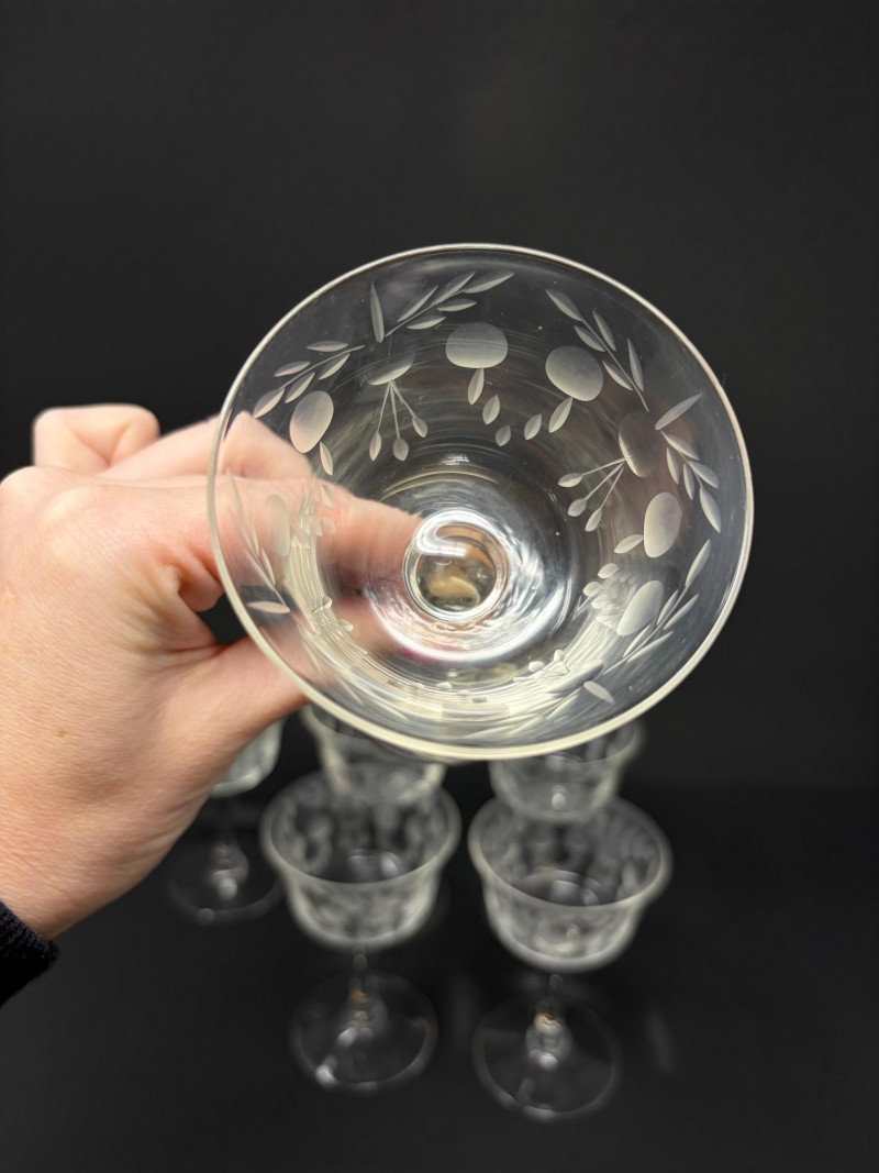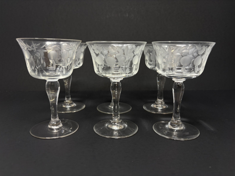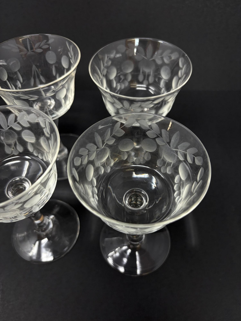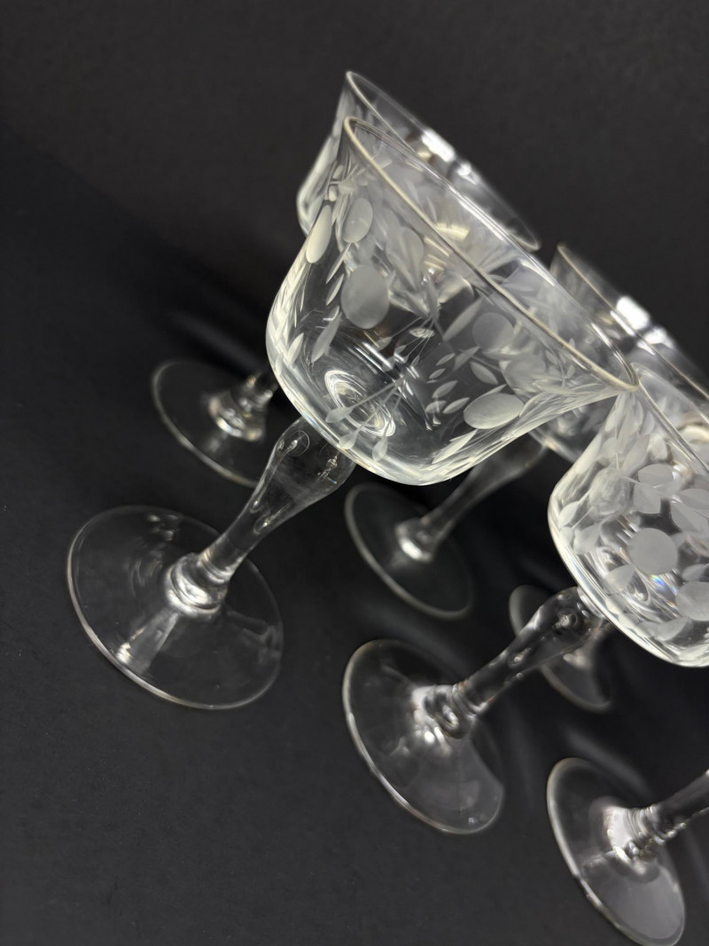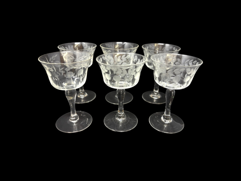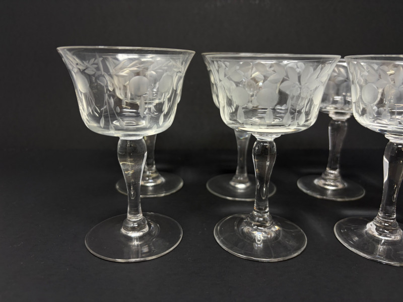 6 Etched Crystal Stemmed Aperitif / Cordial Glasses – 4.5”.