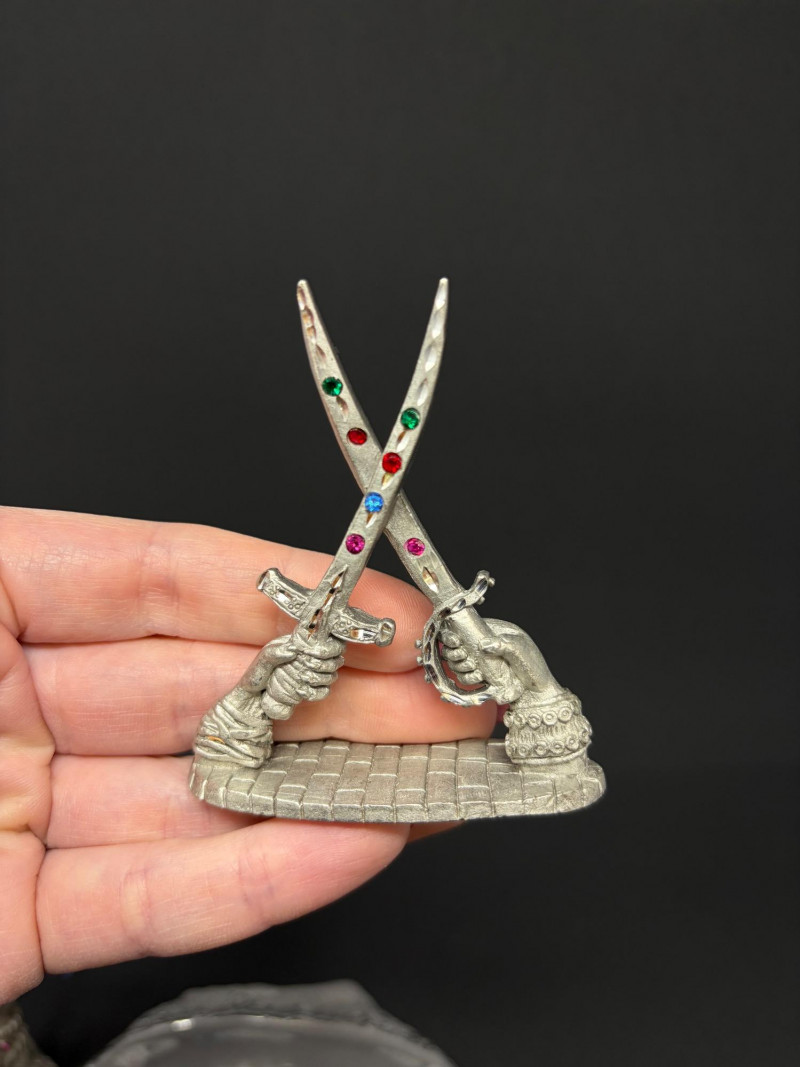 Edinburgh Crystal Castle & Spoontiques Pewter Sword Figures.