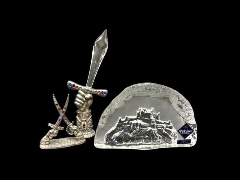Lot # 88 - Edinburgh Crystal Castle & Spoontiques Pewter Sword Figures