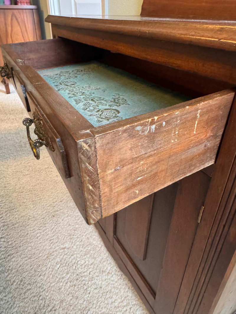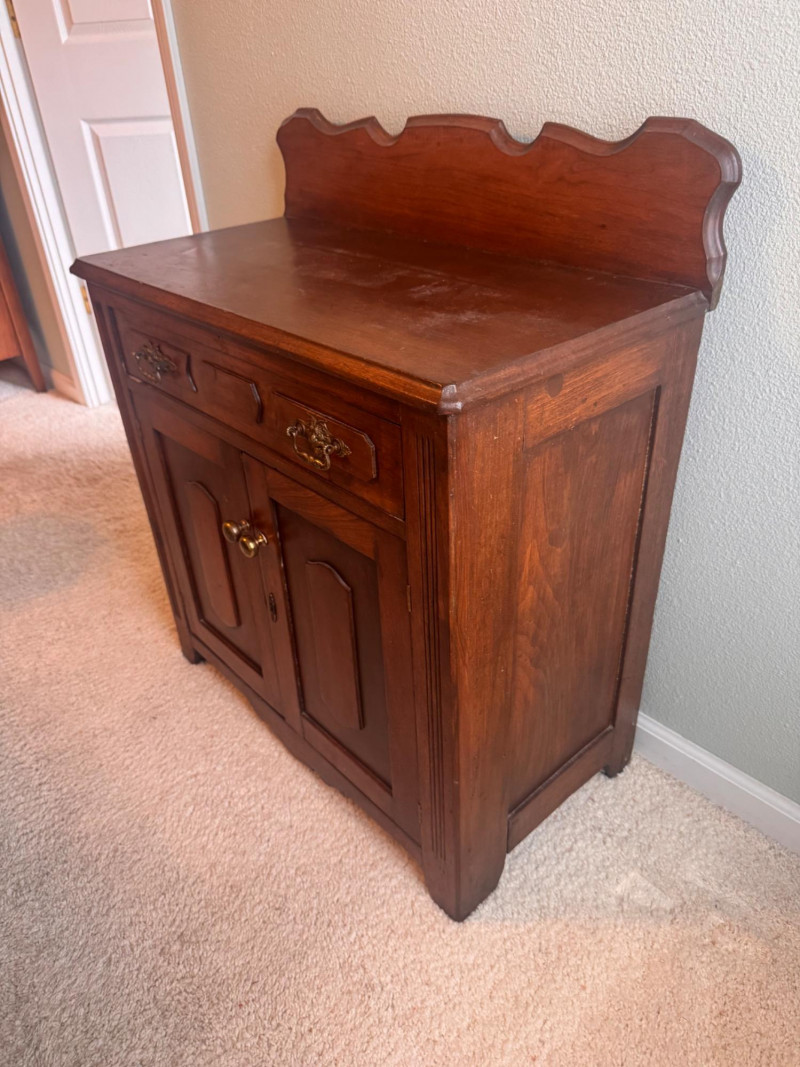 Wood Sideboard Cabinet w/ Drawer & Back Splash.