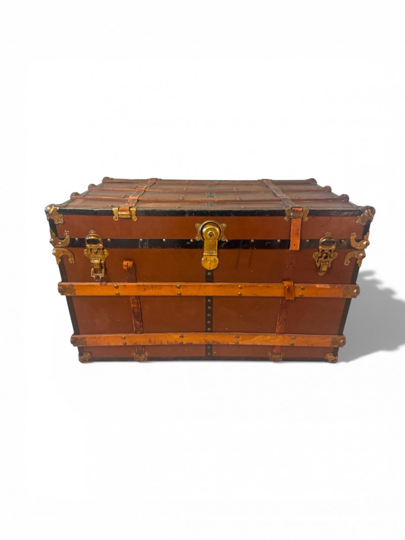 Lot # 100 - Large Vintage Steamer Trunk – Wood, Metal & Leather