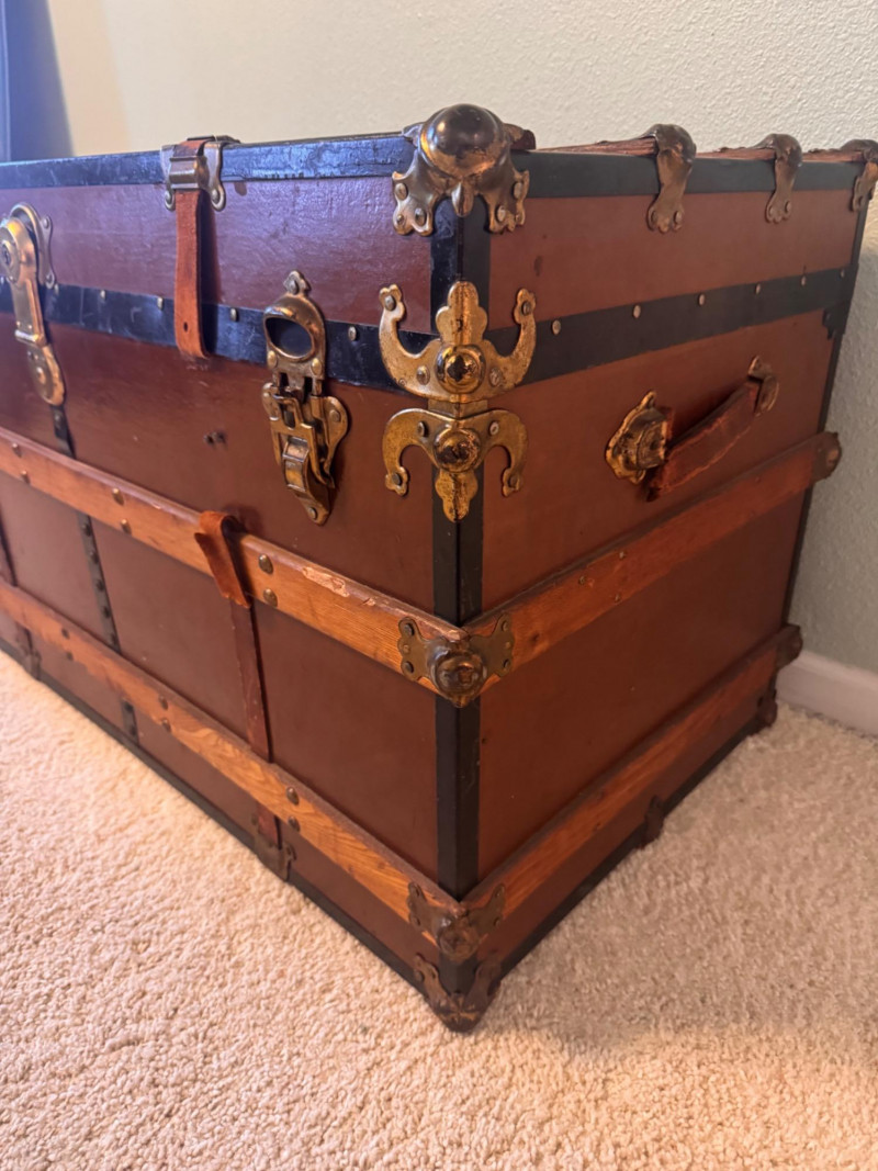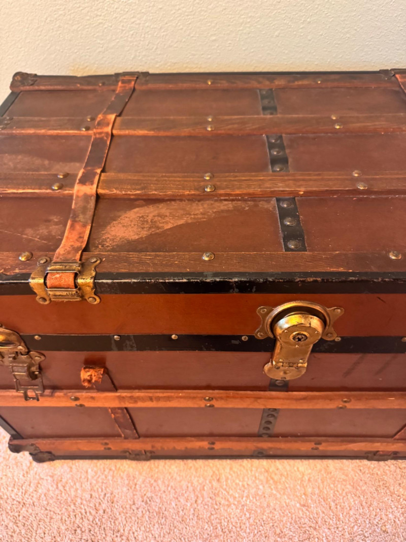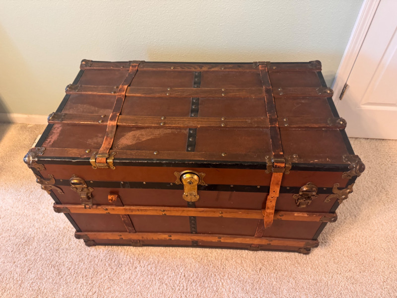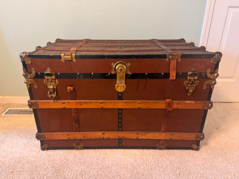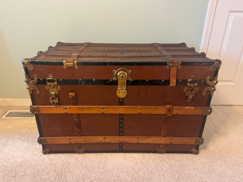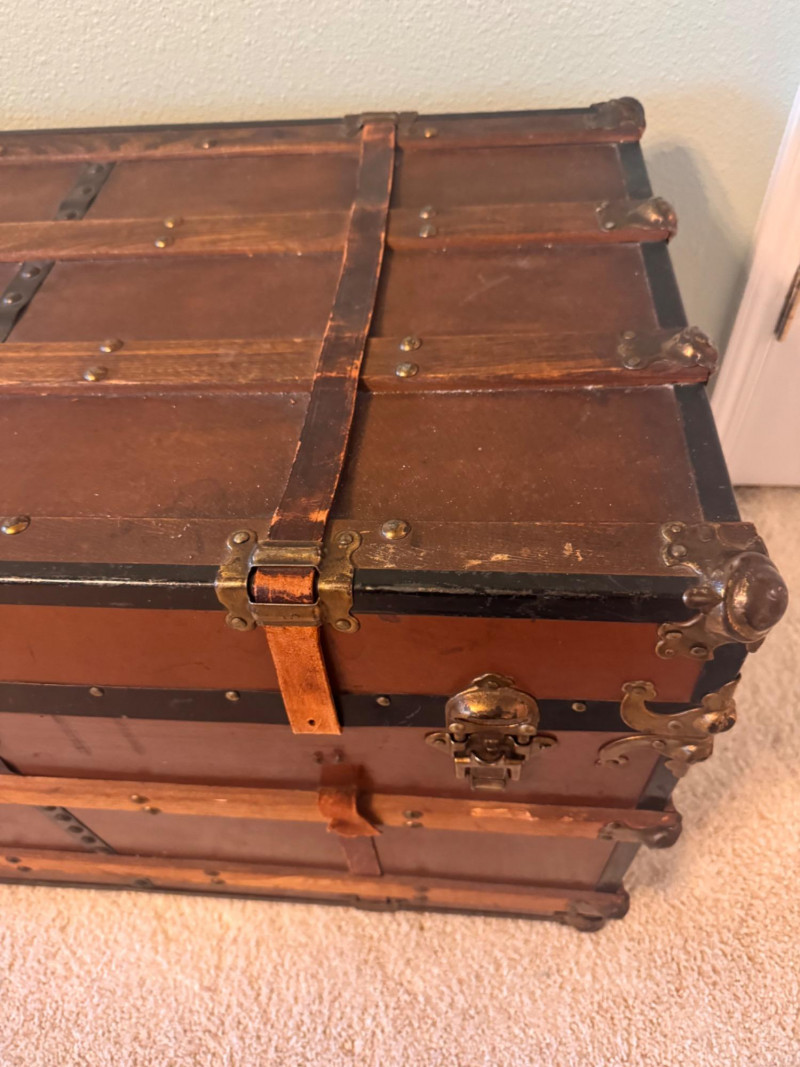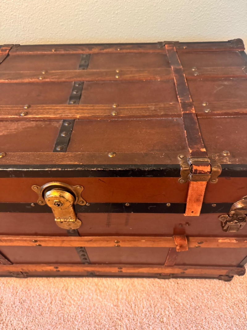 Large Vintage Steamer Trunk – Wood, Metal & Leather.