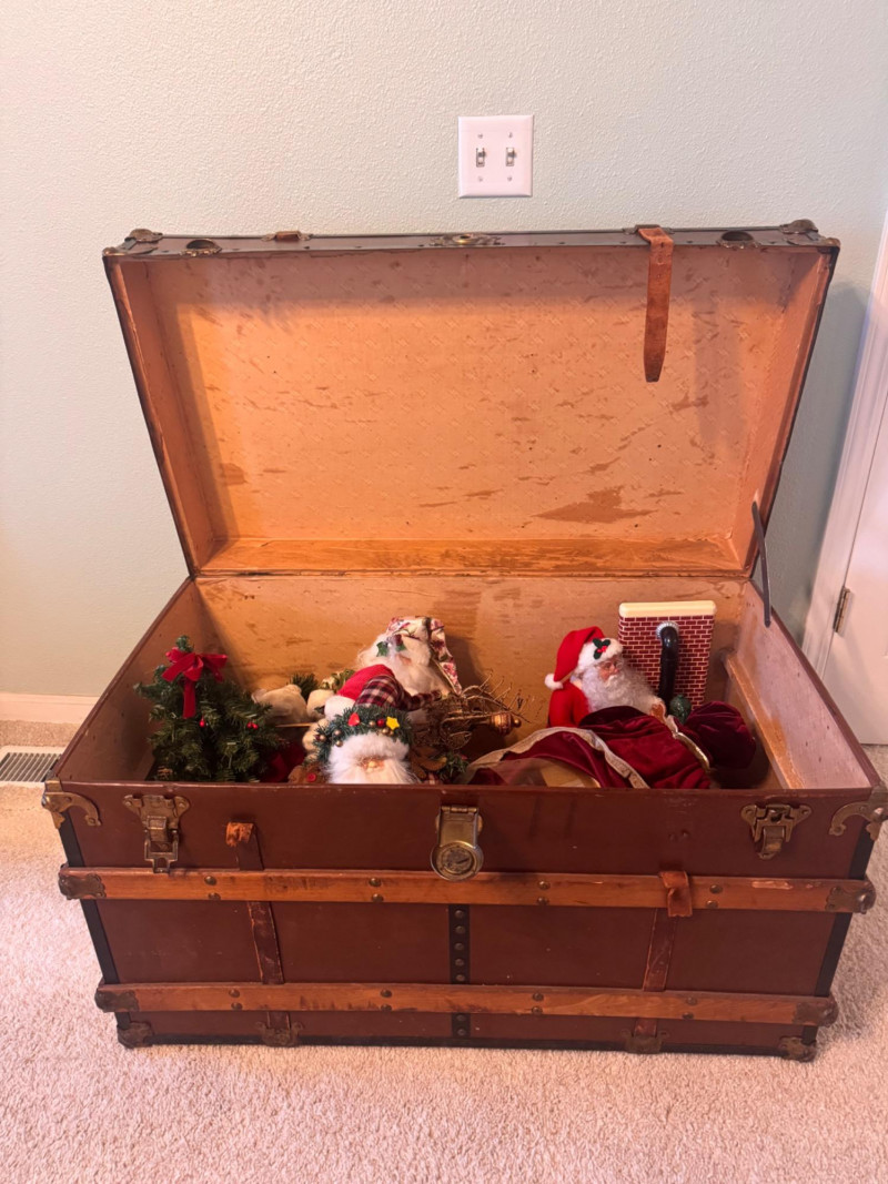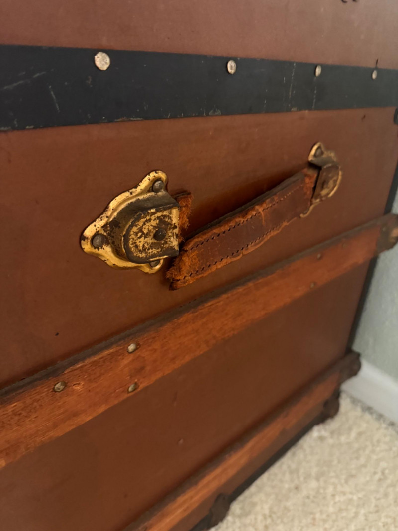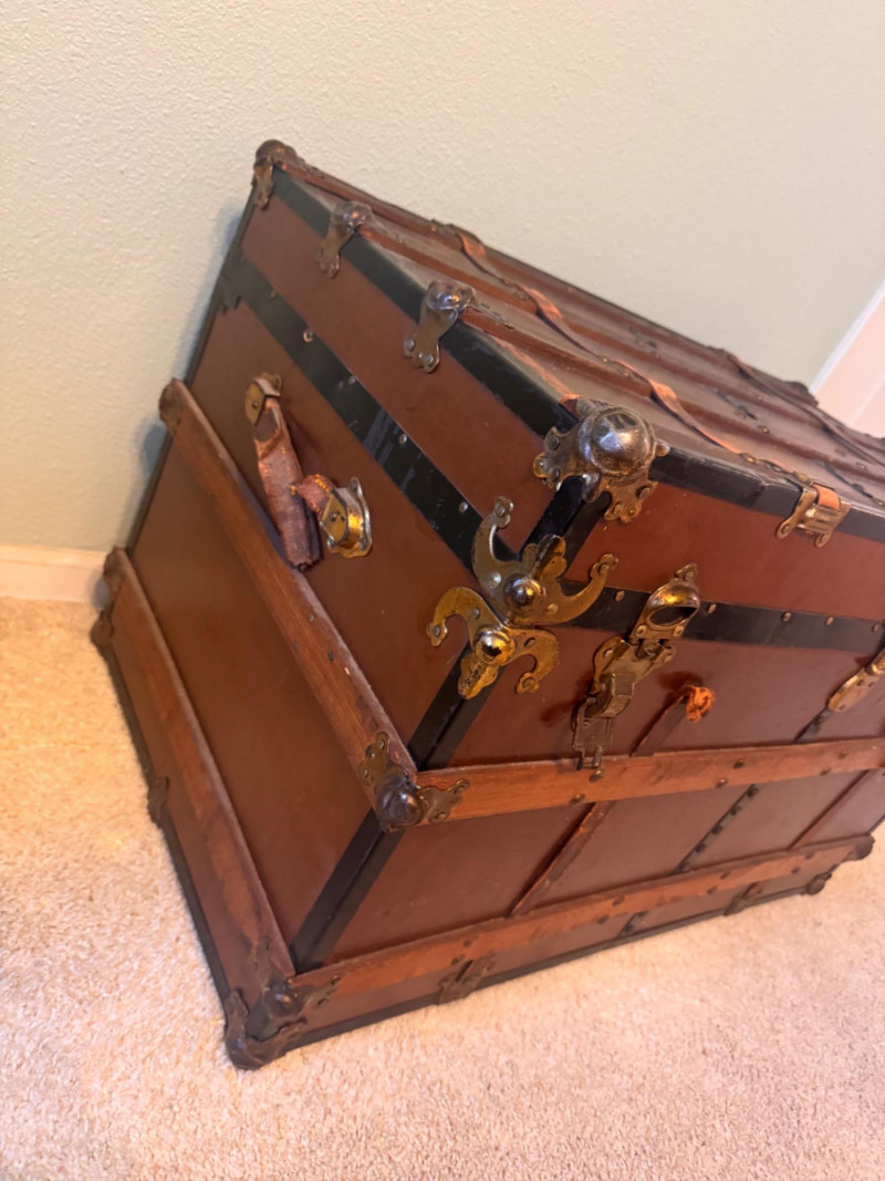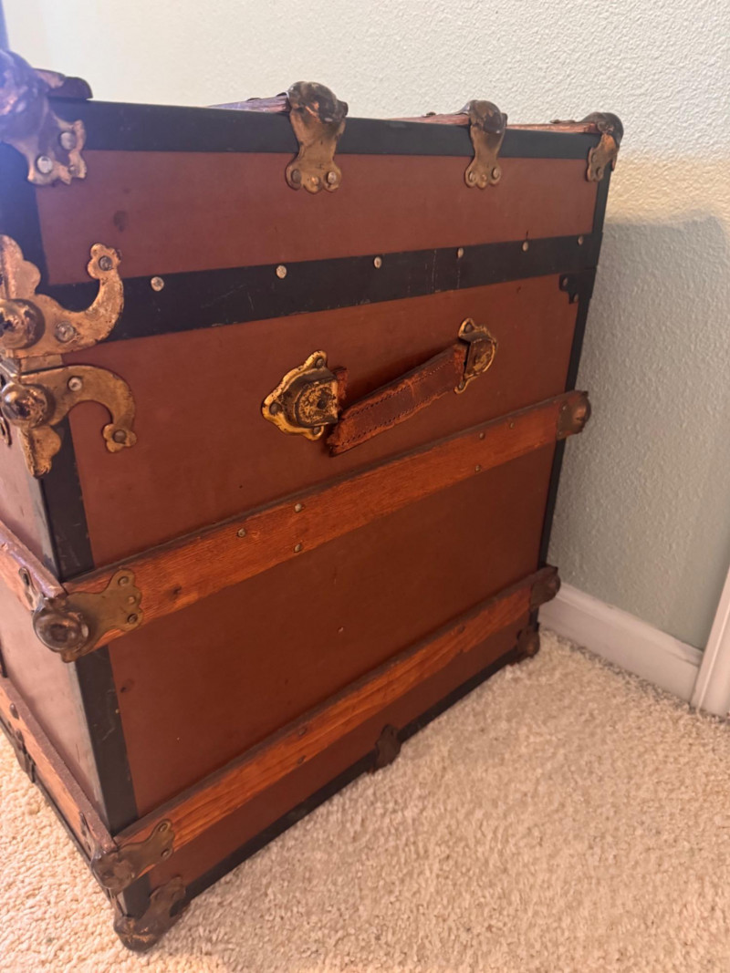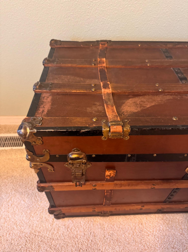 Large Vintage Steamer Trunk – Wood, Metal & Leather.