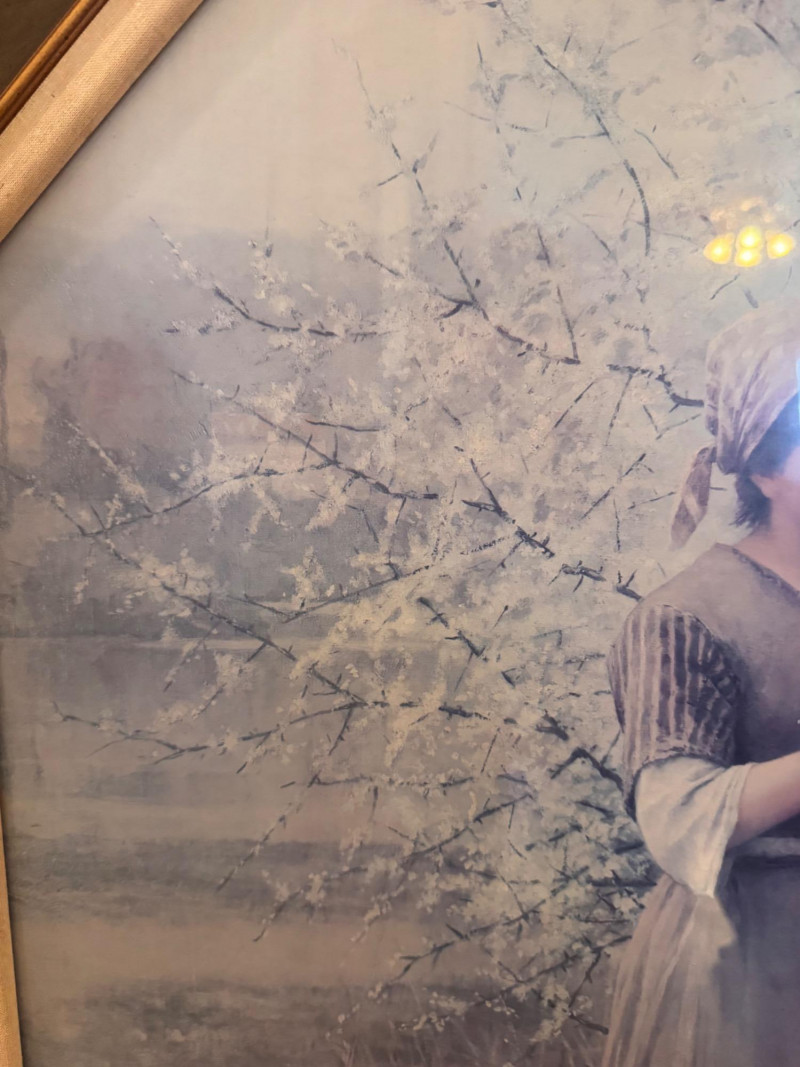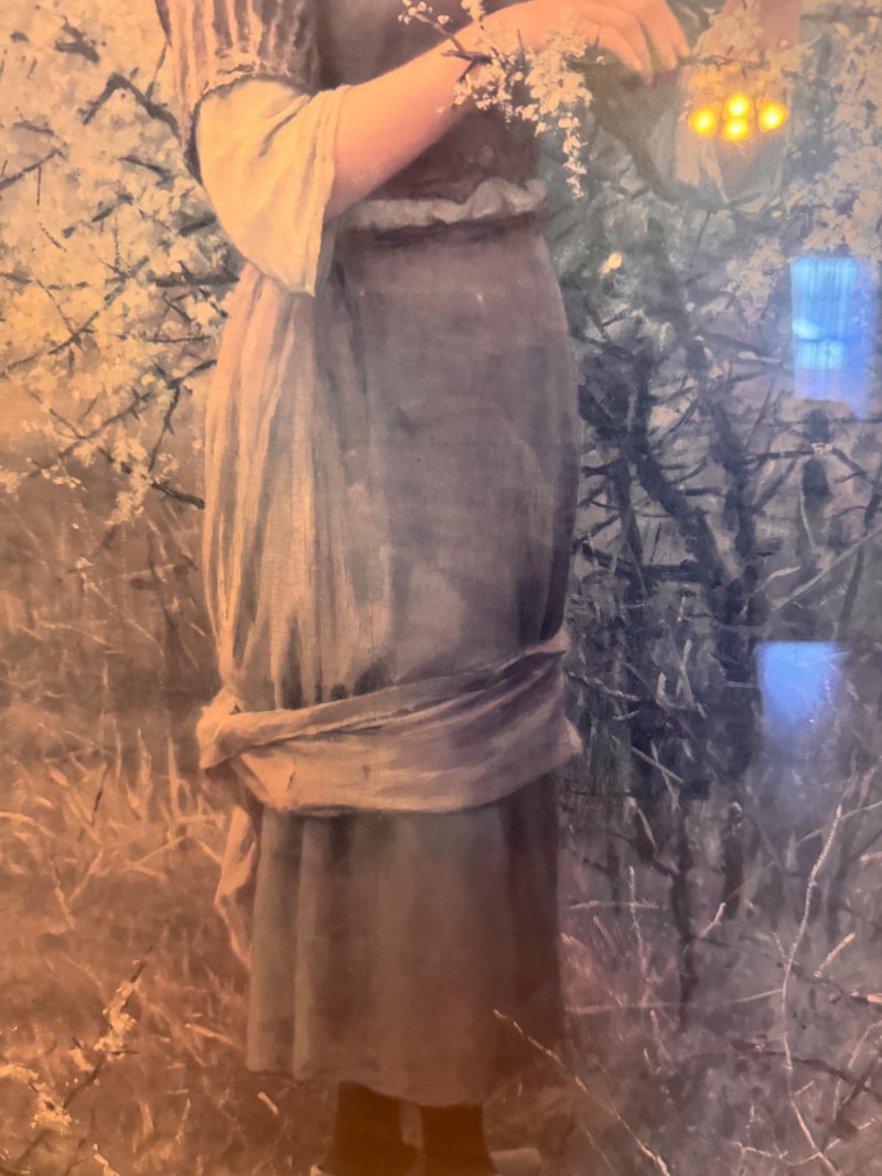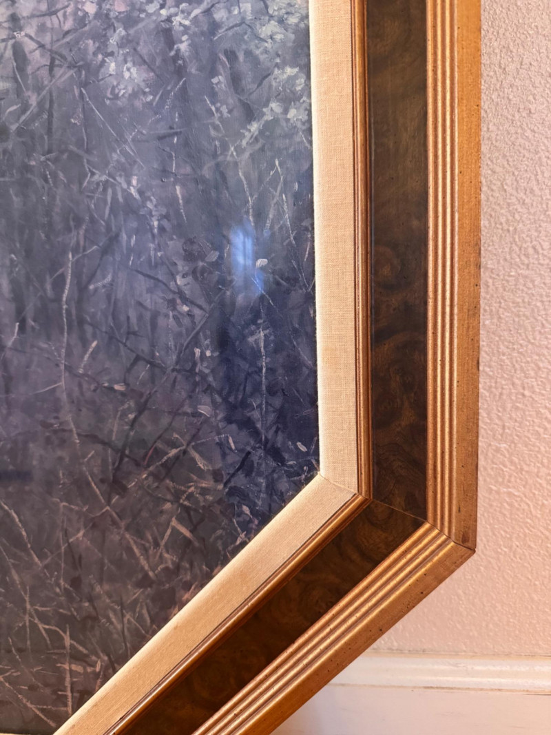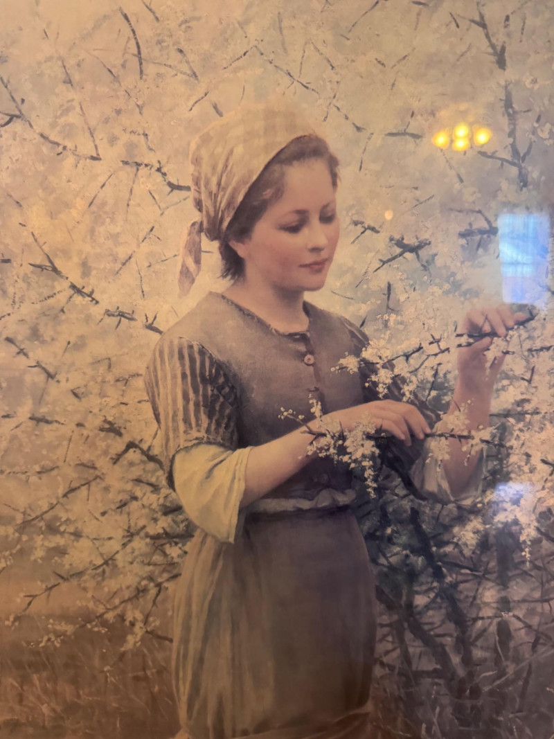 Large Vintage Lady In Blossom Print in Octagonal Wood Frame.