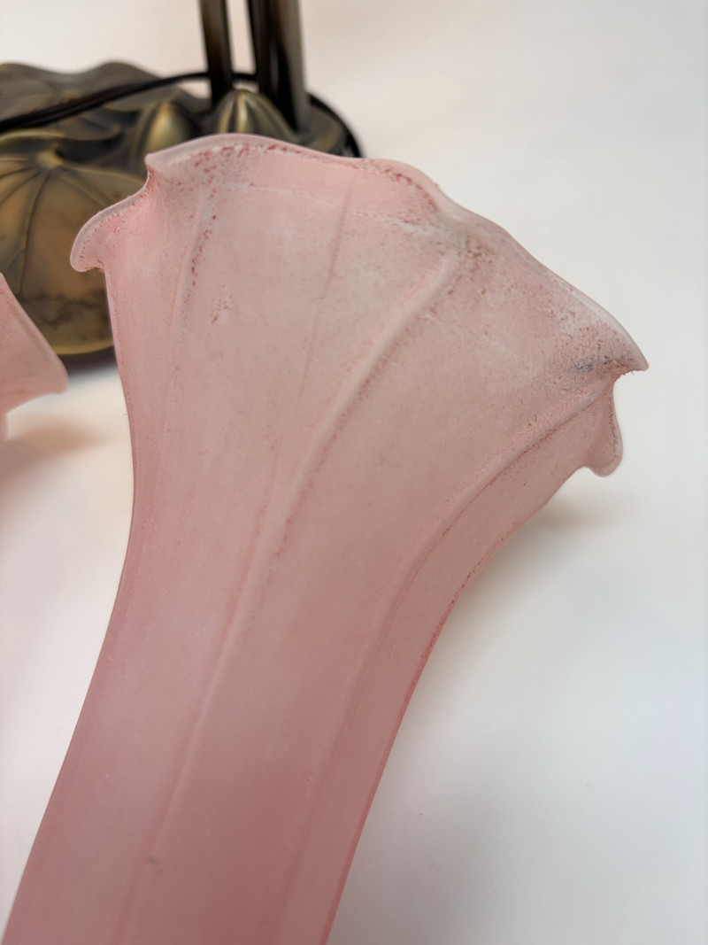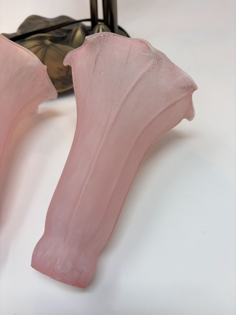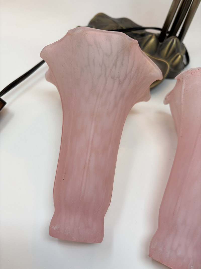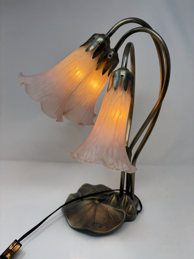 Vintage Tiffany Style Lily Pad Table Lamp Floral Arms & Frosted Shades.