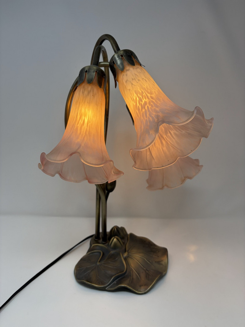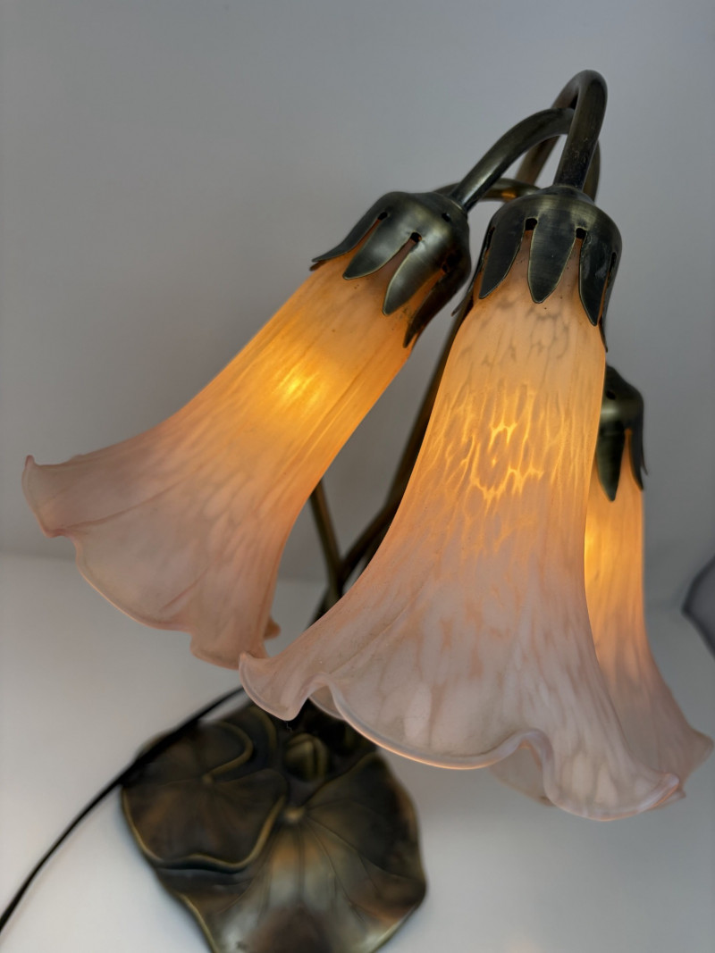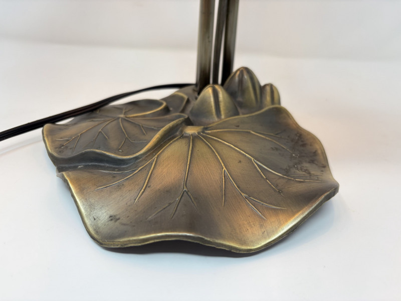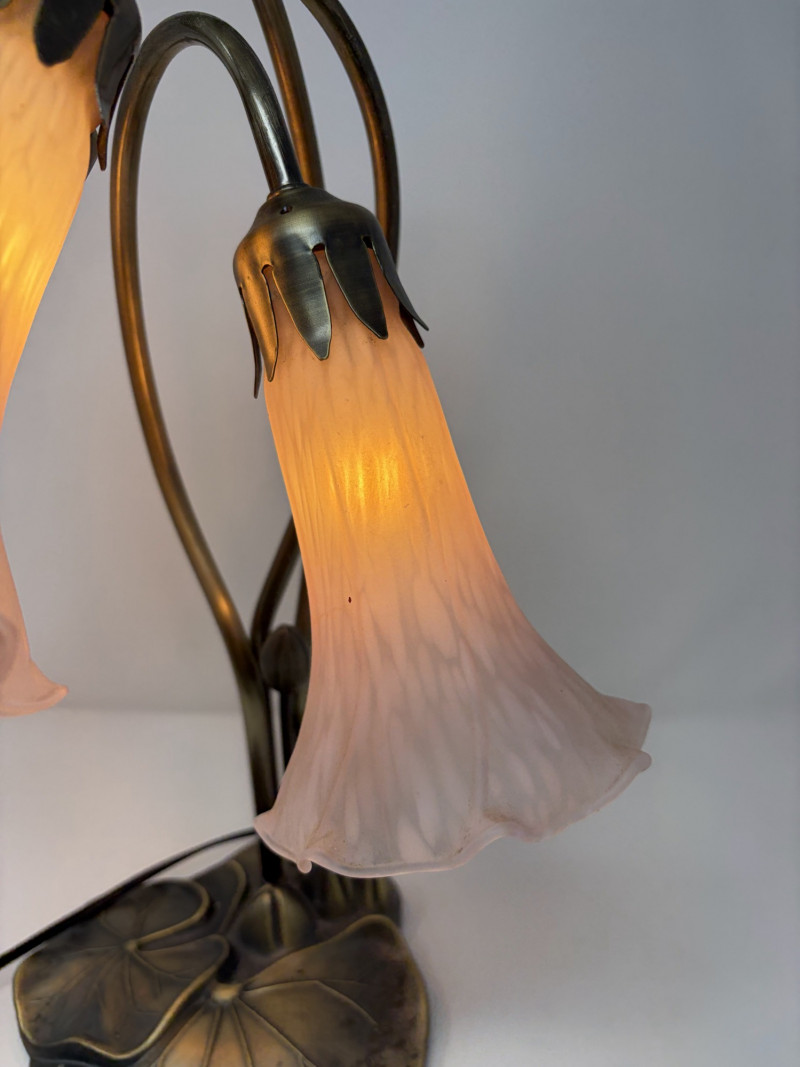 Lot # 127 - Vintage Tiffany Style Lily Pad Table Lamp Floral Arms & Frosted Shades