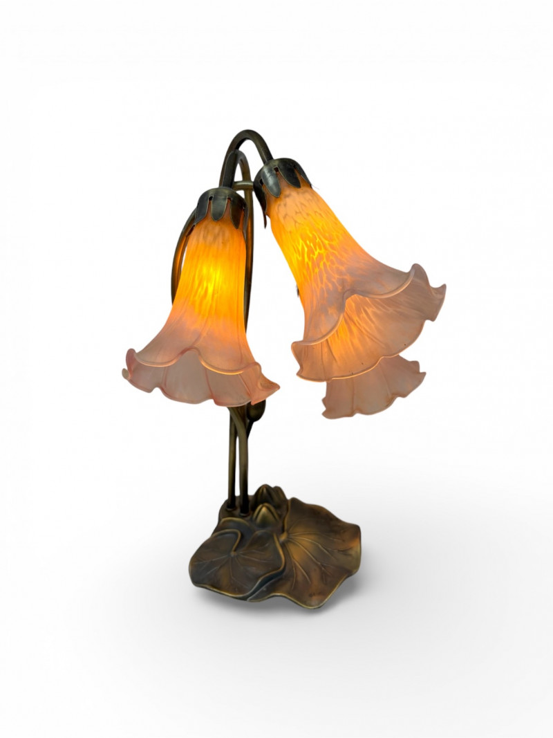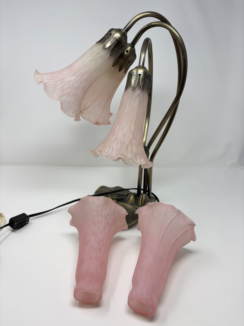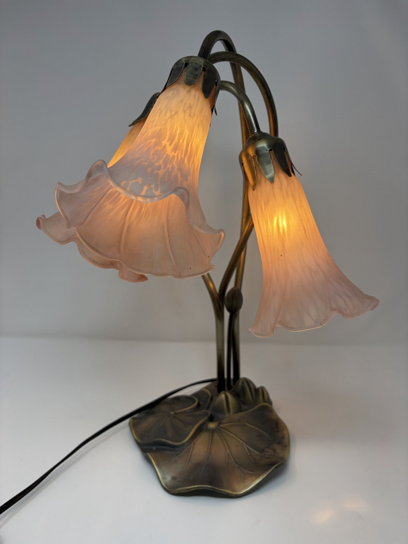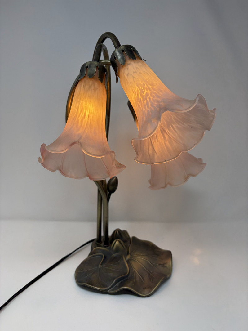Lot # 127 - Vintage Tiffany Style Lily Pad Table Lamp Floral Arms & Frosted Shades