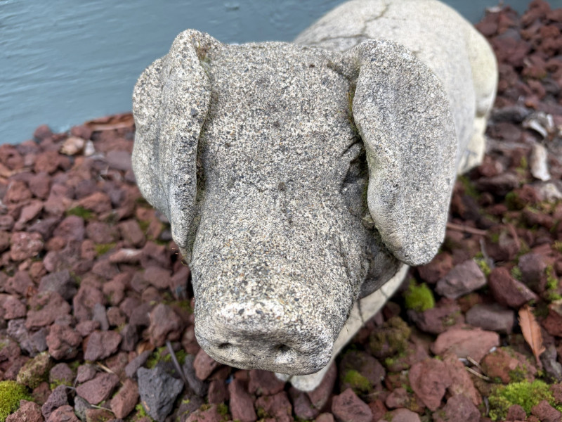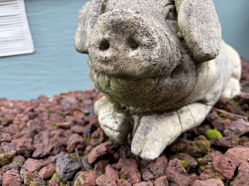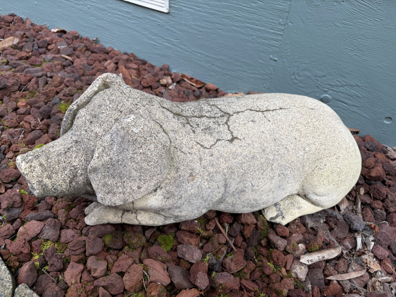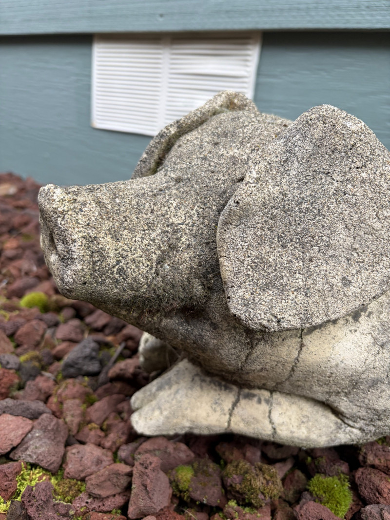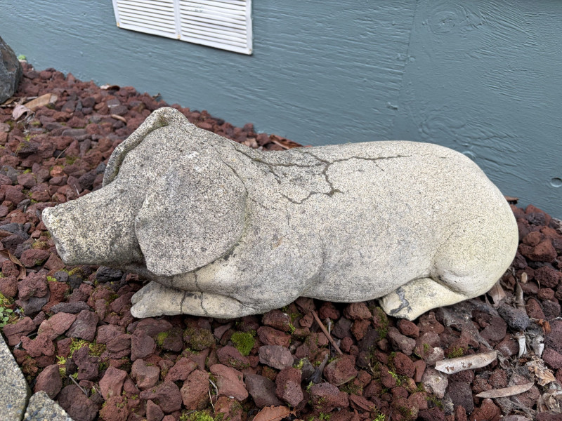 Large Laying Pig Garden Sculpture Long Heavy Cement Figure.