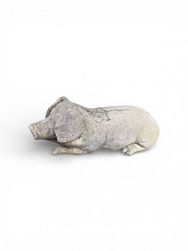 Lot # 137 - Large Laying Pig Garden Sculpture Long Heavy CementFigure